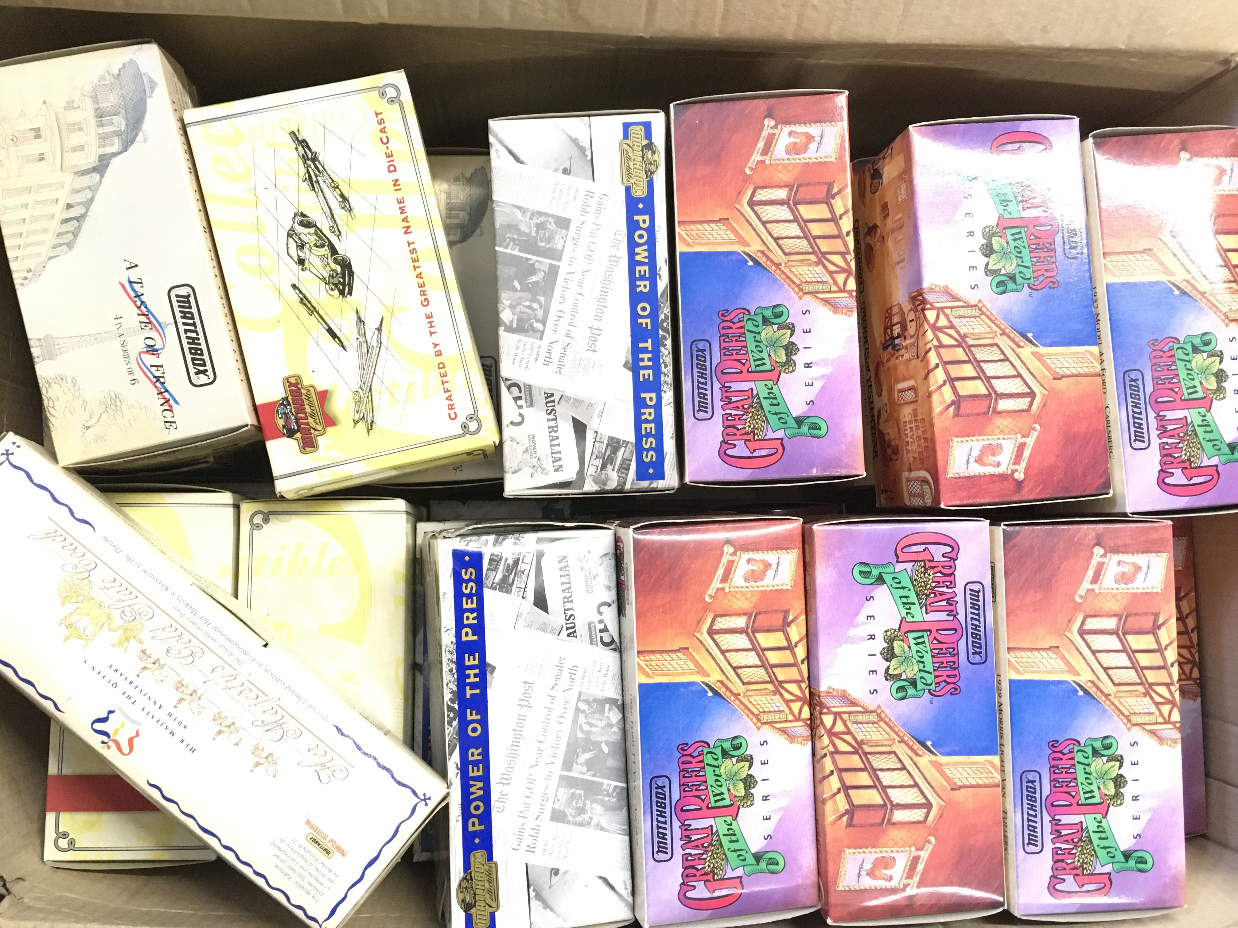 A Box Containing Matchbox Collectables including great Beers of the world. Power of the Press etc. and 2 models of Yesteryear framed sets. No reserve.(3).