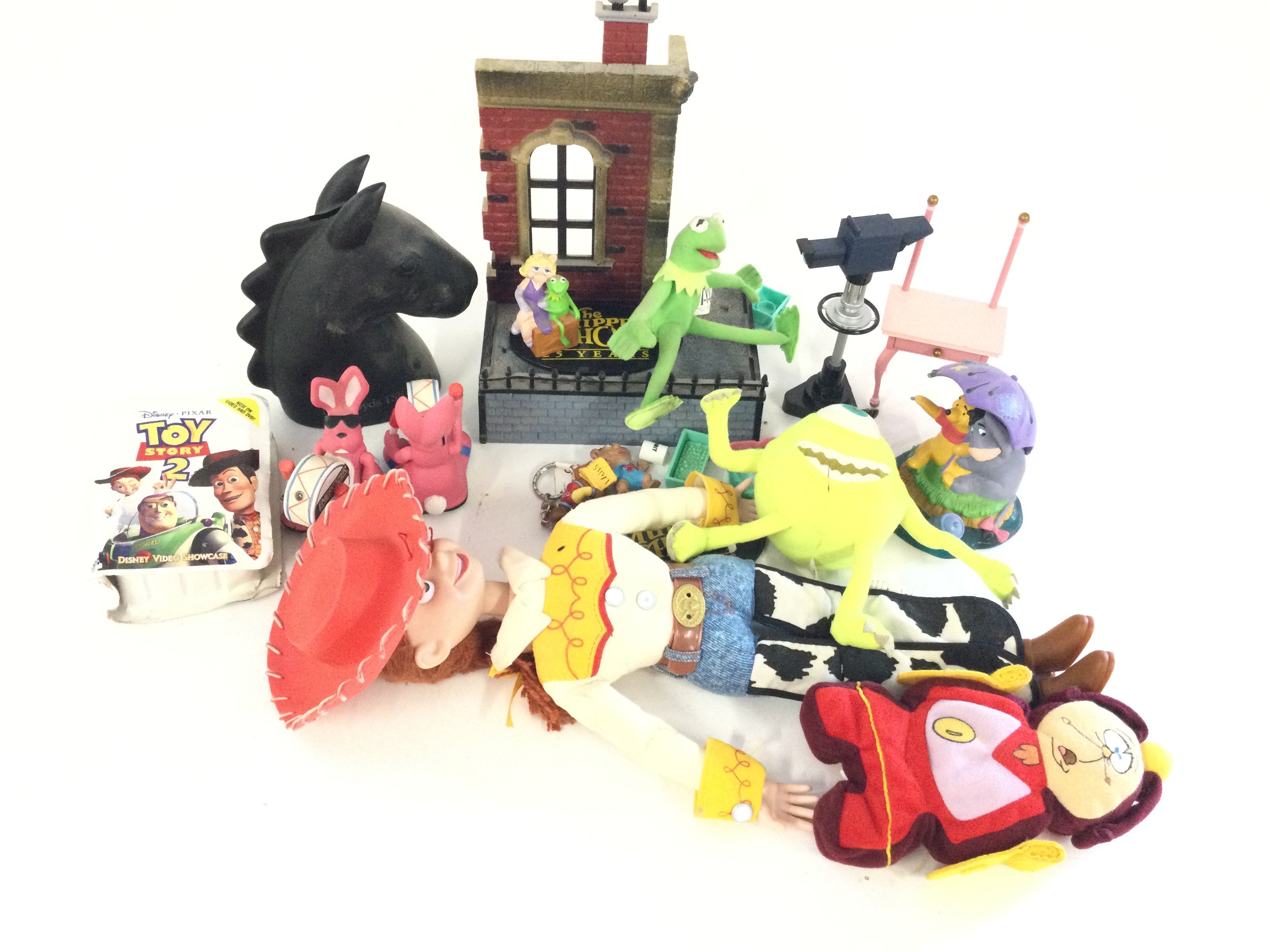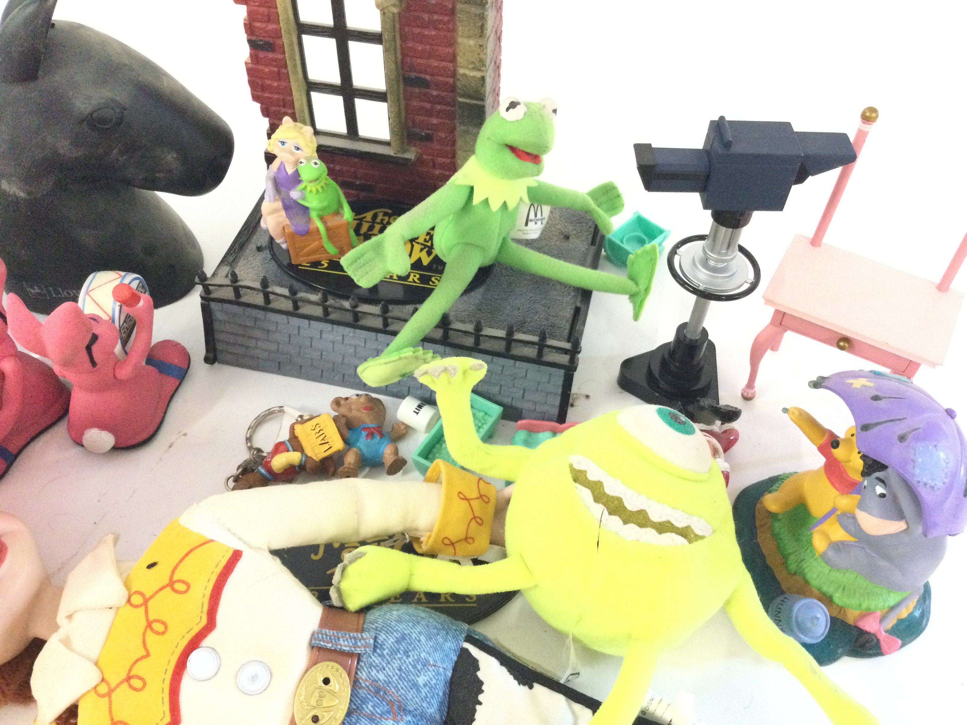 A box containing a quantity of mixed figures and small teddies mostly Disney.