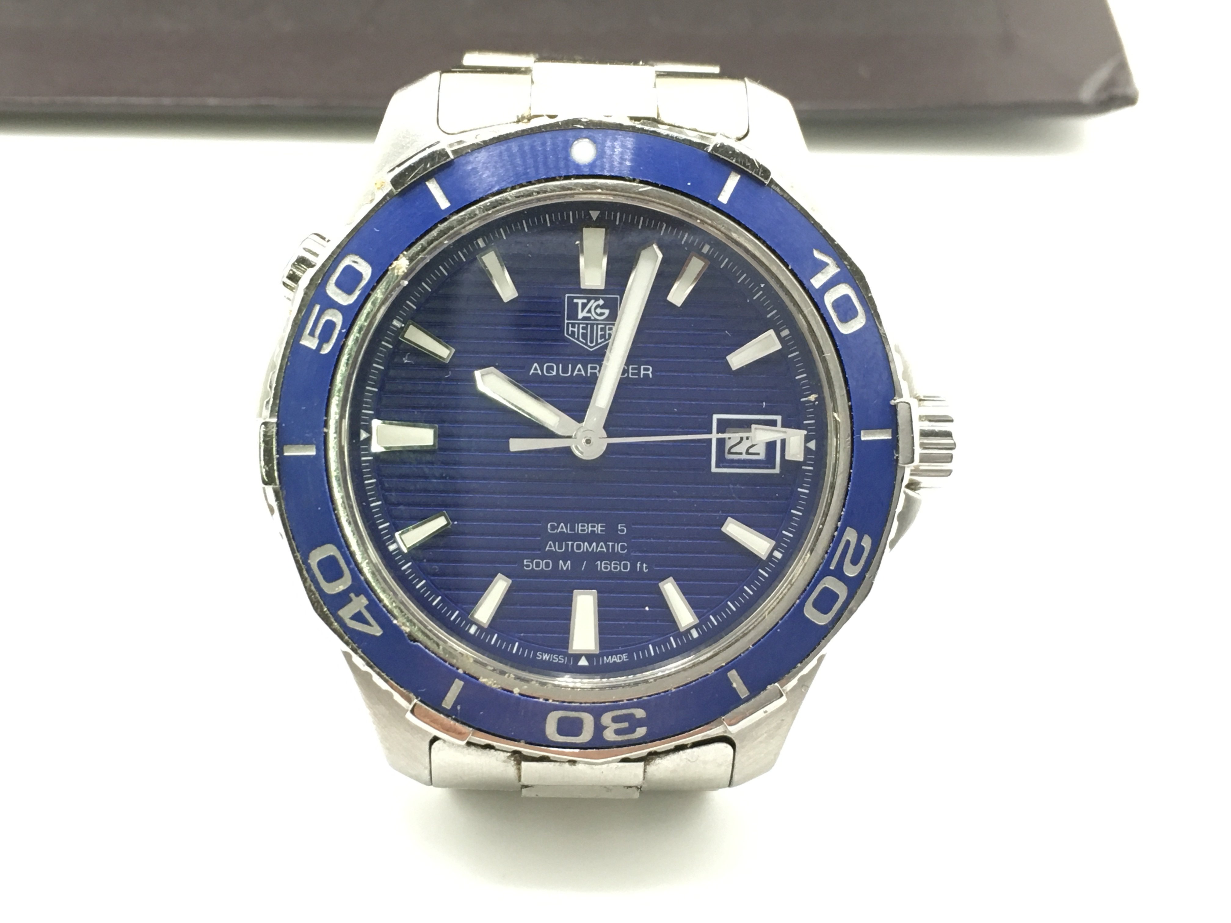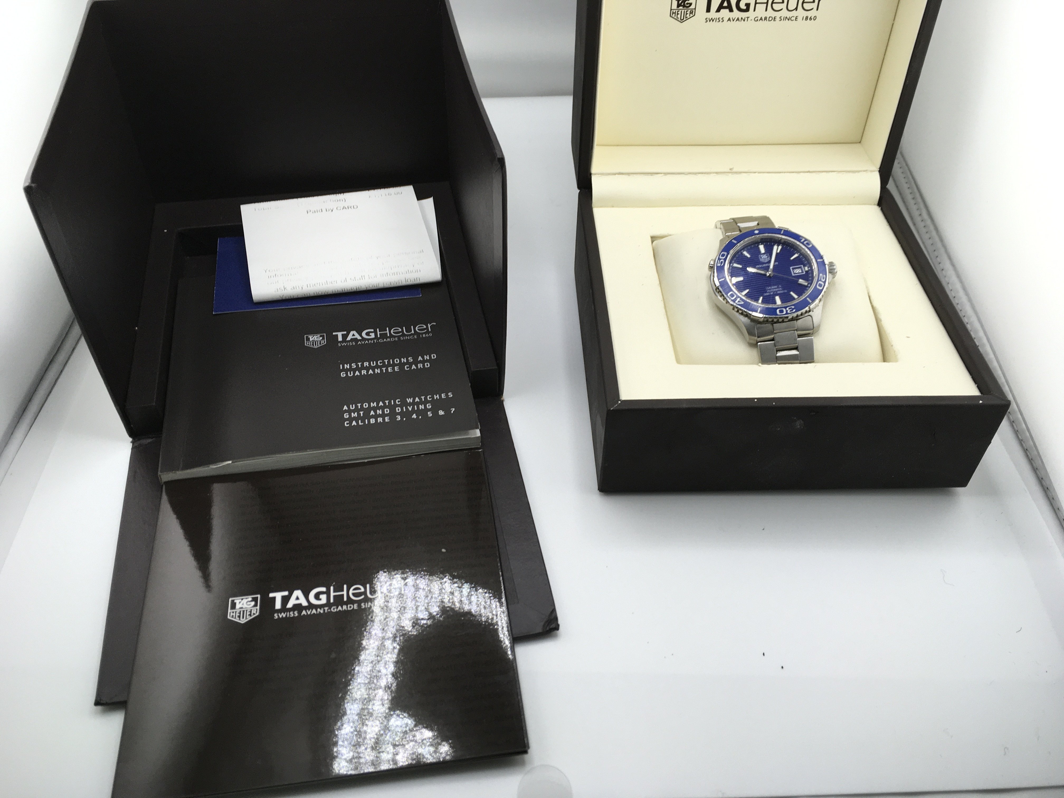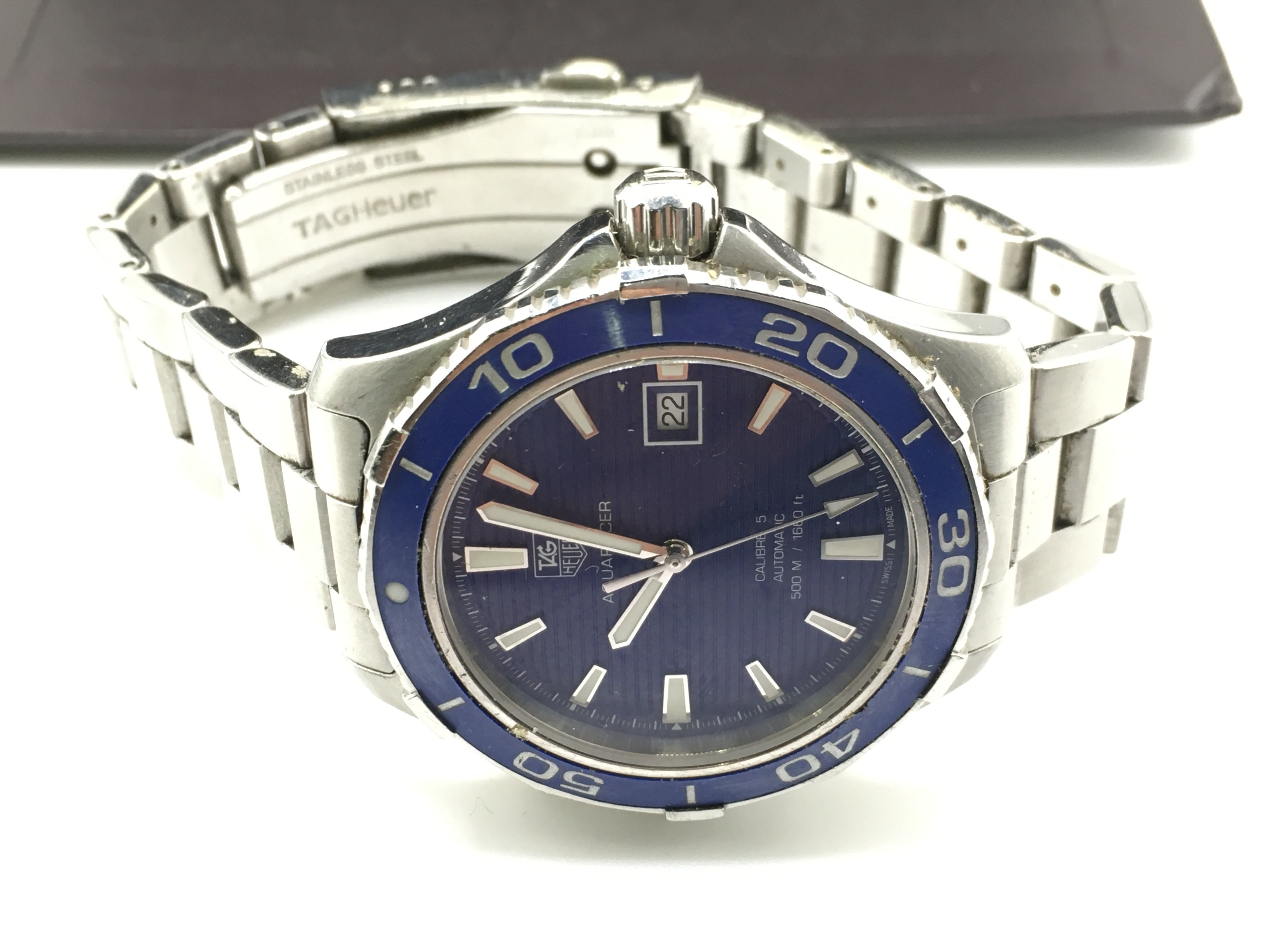 A gents Tag Heuer Aquaracer watch. With box and paperwok. Seen running. 45mm including crown.