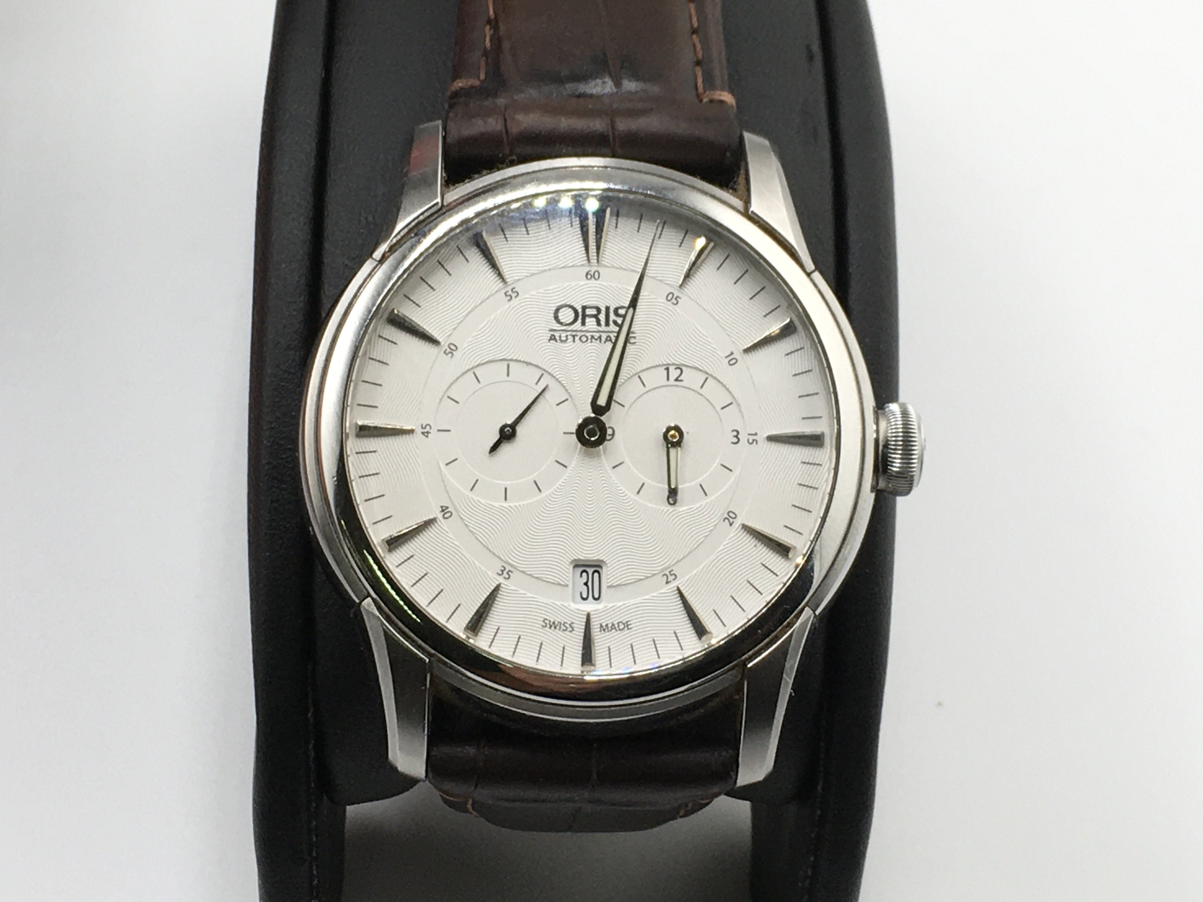 A gents Oris automatic chronograph with box and papers. Seen running. Excellent condition.