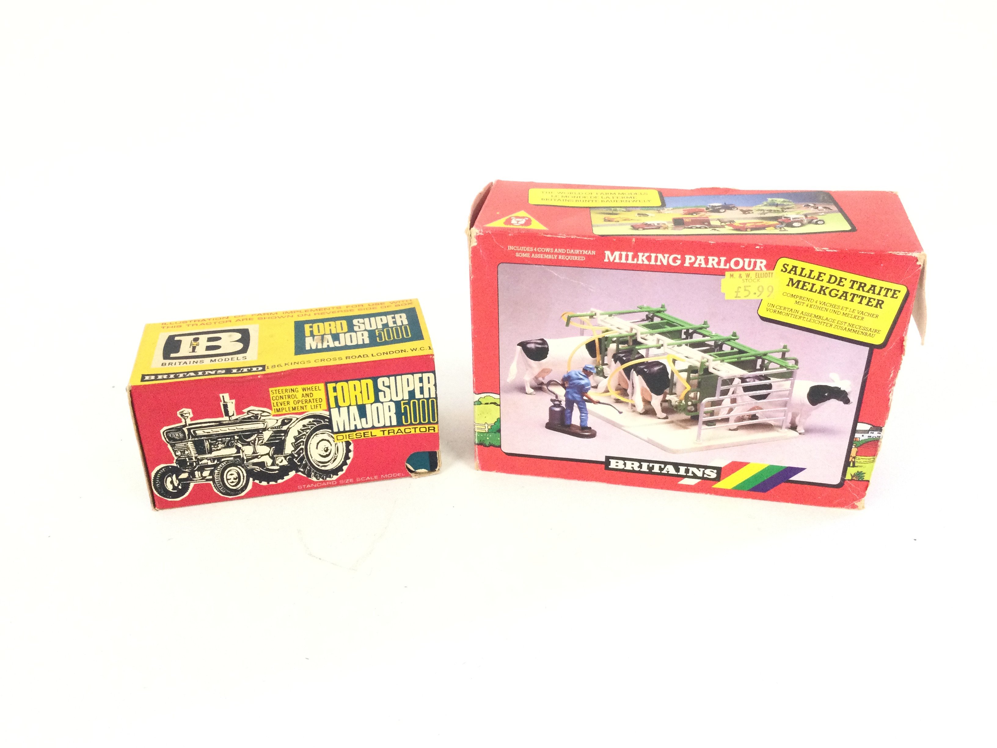 A Boxed Britains Ford Super Major 5000 Diesel Tractor. Also a Boxed Britains Milk Parlour.