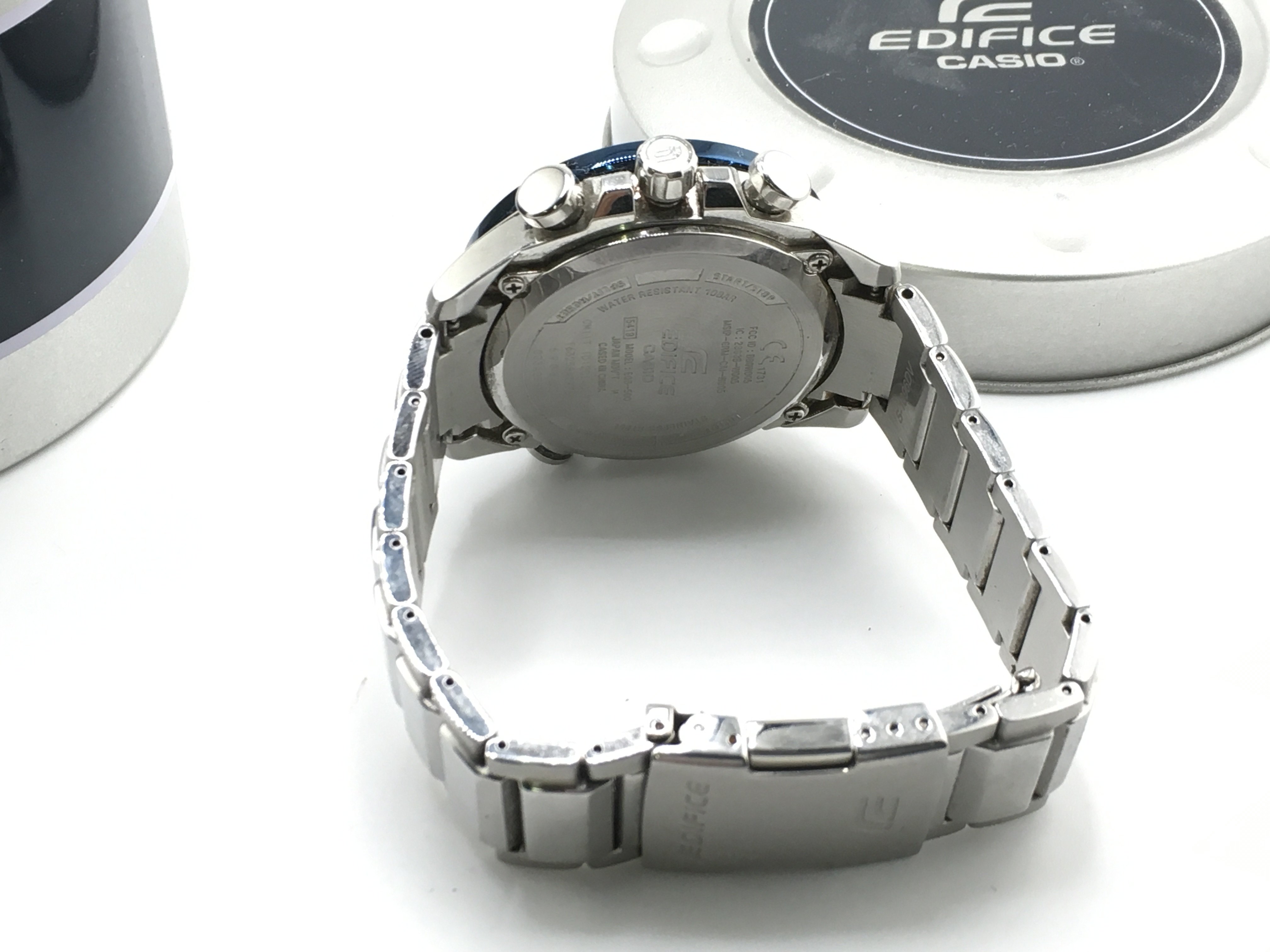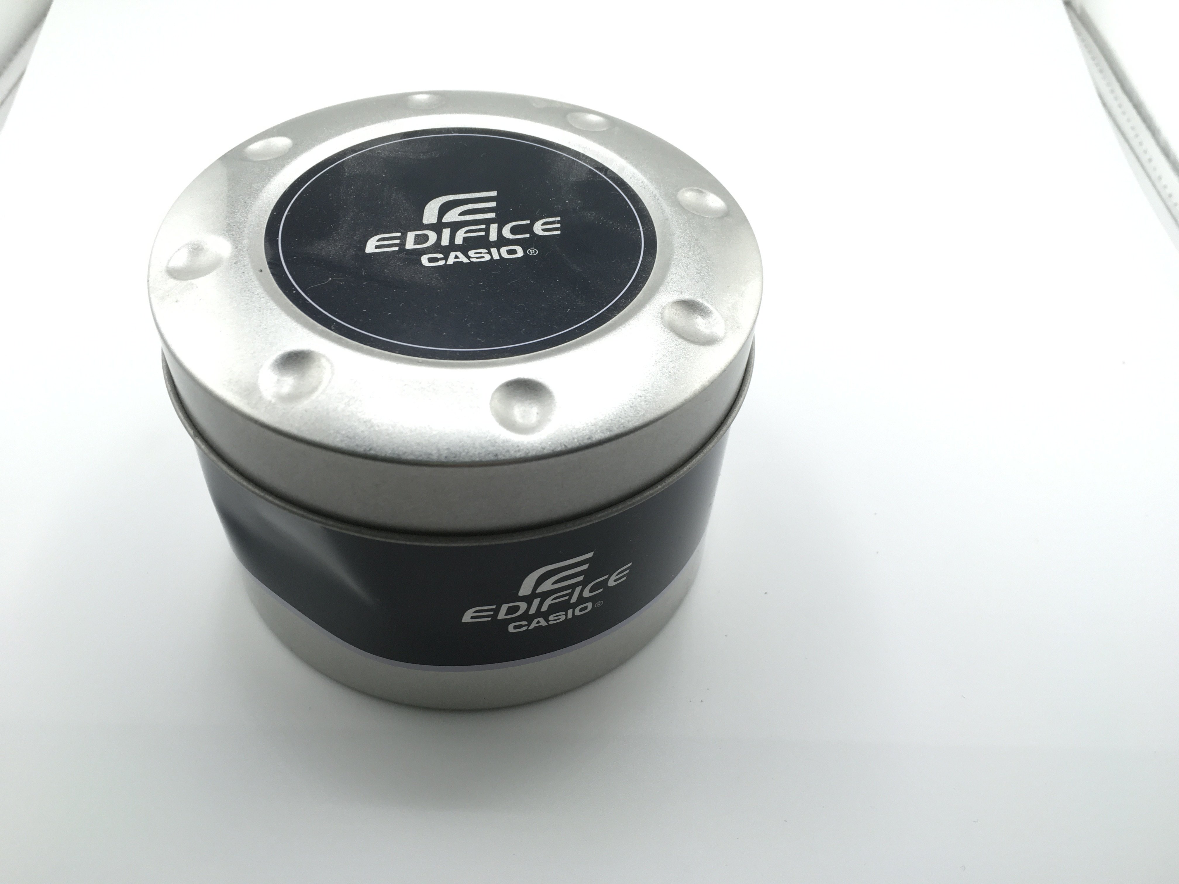 A gents Edifice casino watch in tin. Seen running. Approximately 50 mm including crown. Postage B