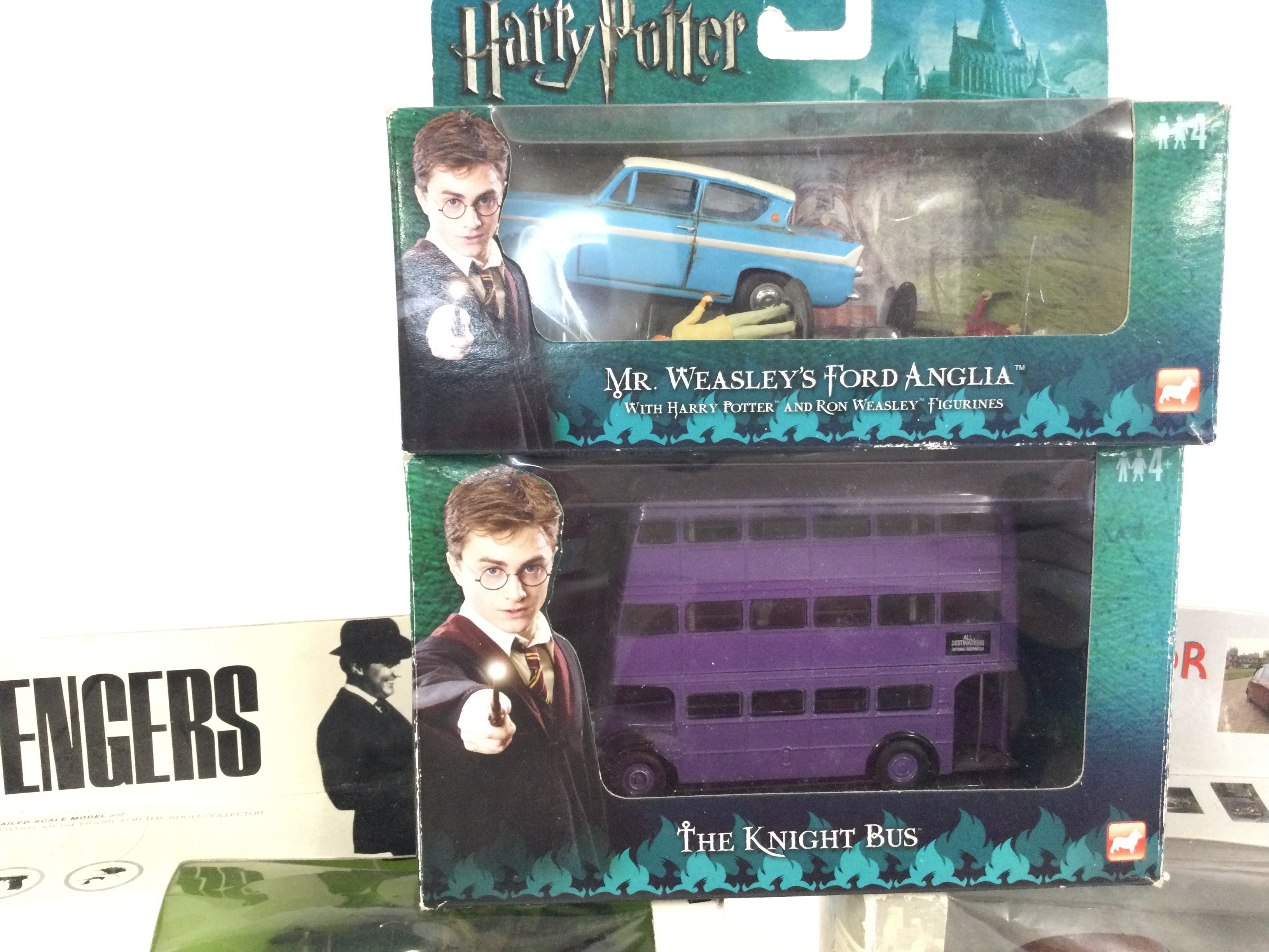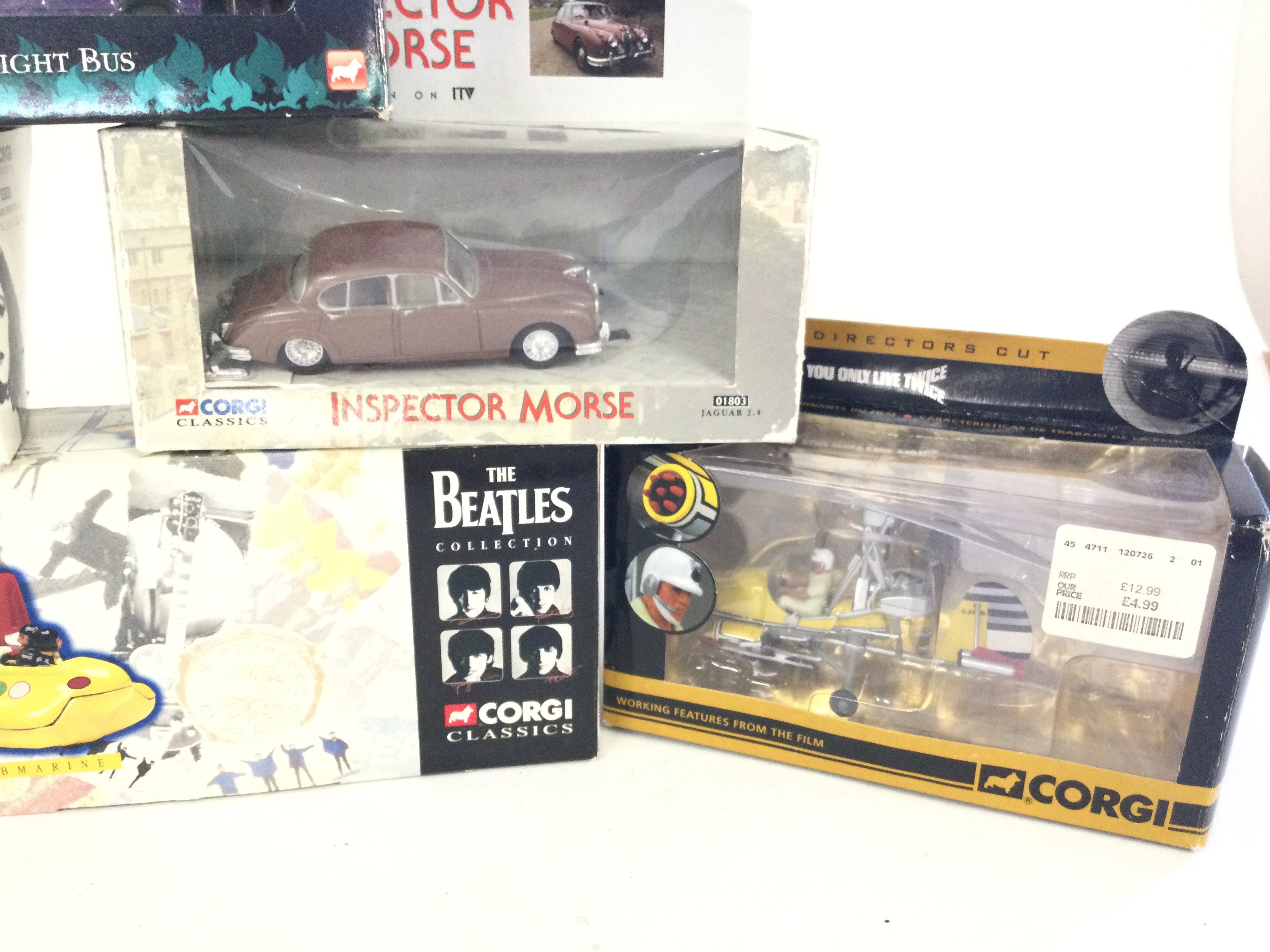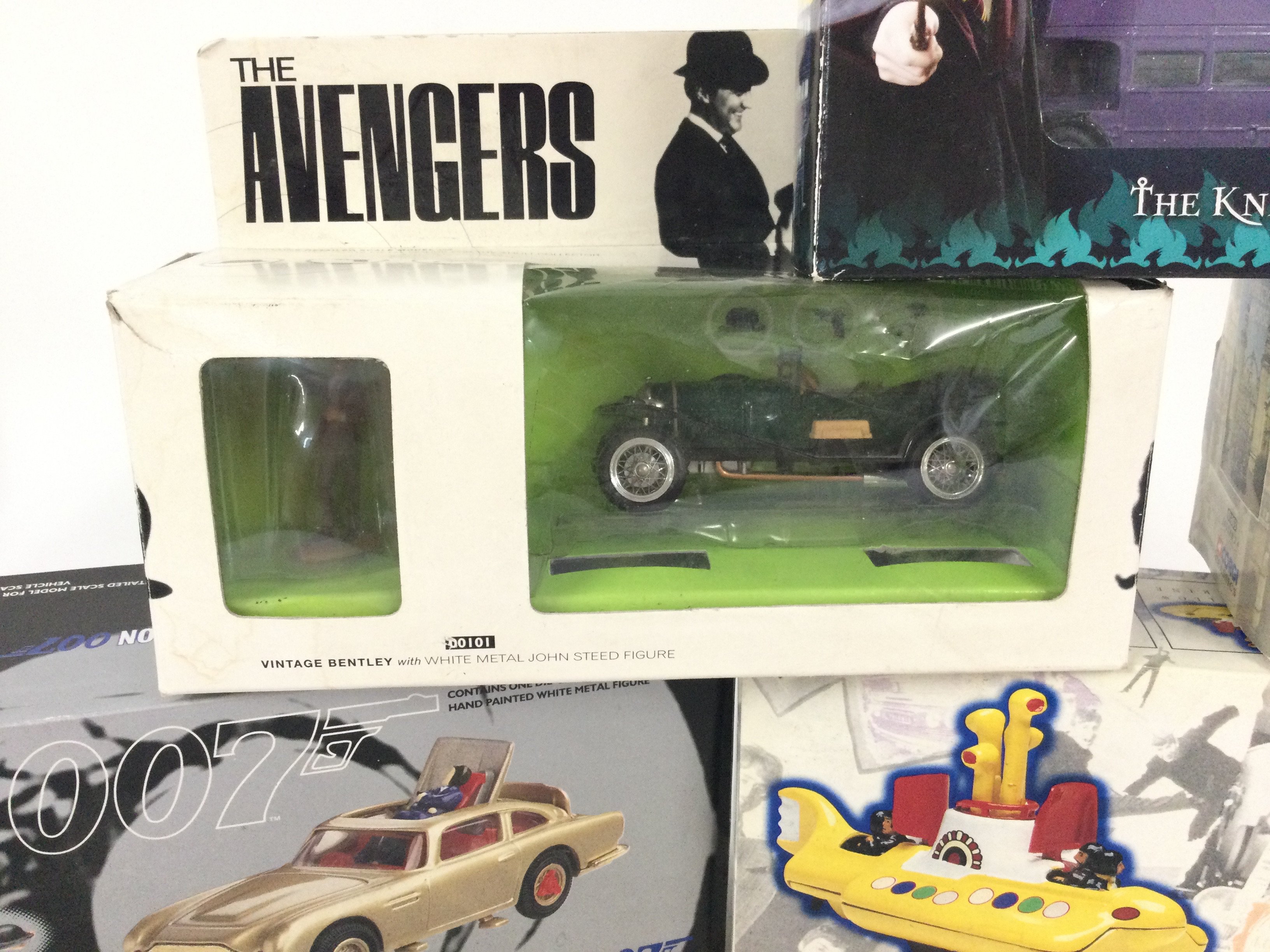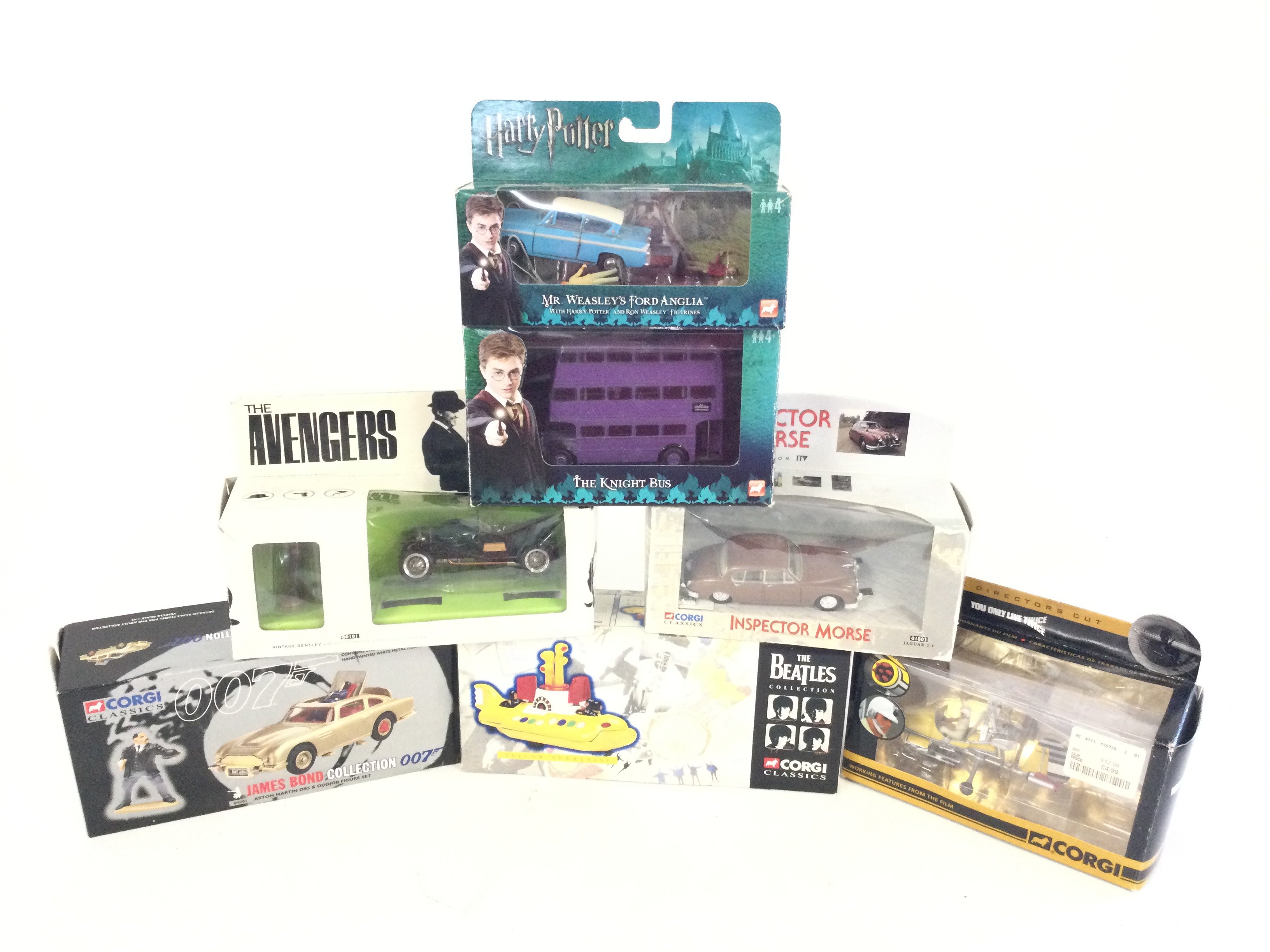 7 Boxed Corgi model vehicles to include James Bond Harty Potter The avengers Inspector morse and The Beatles.