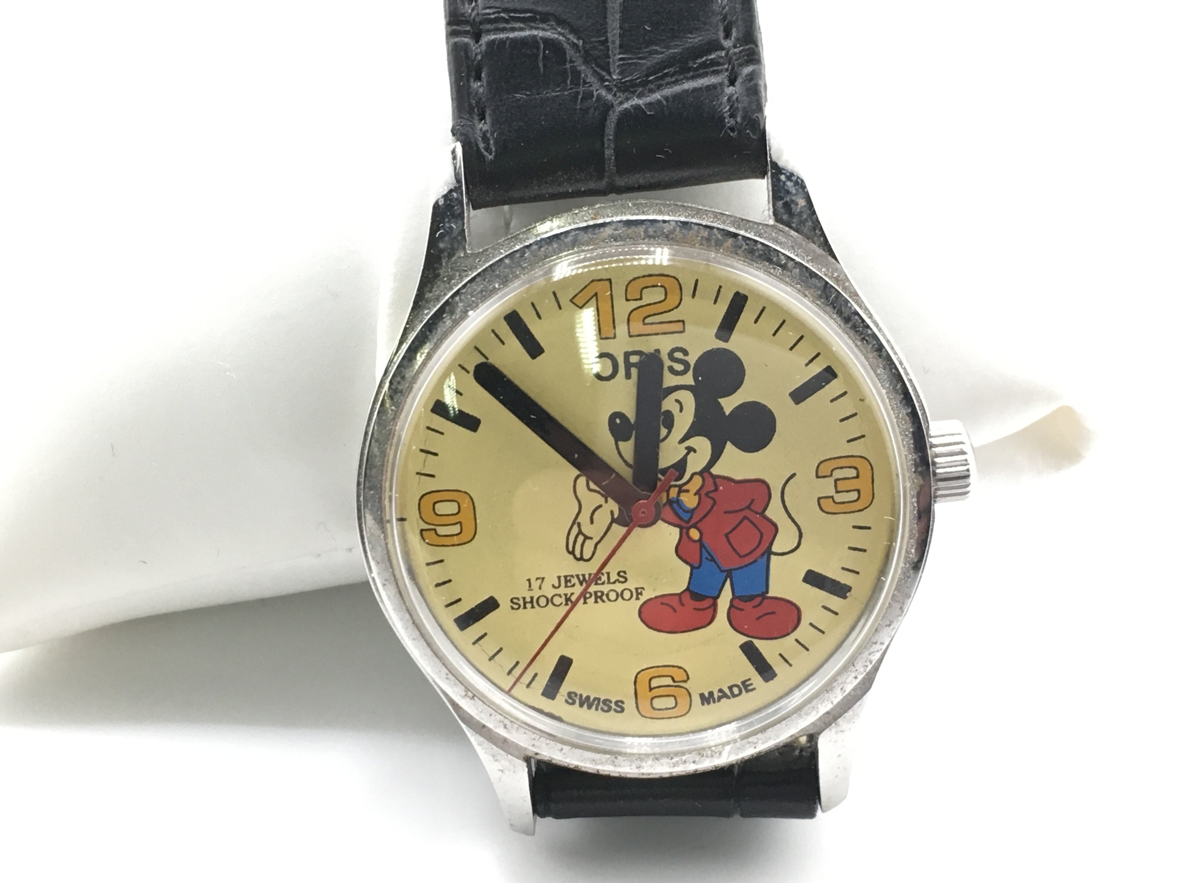 An Oris watch with Mickey mouse dial. 36mm. Seen running. Postage B