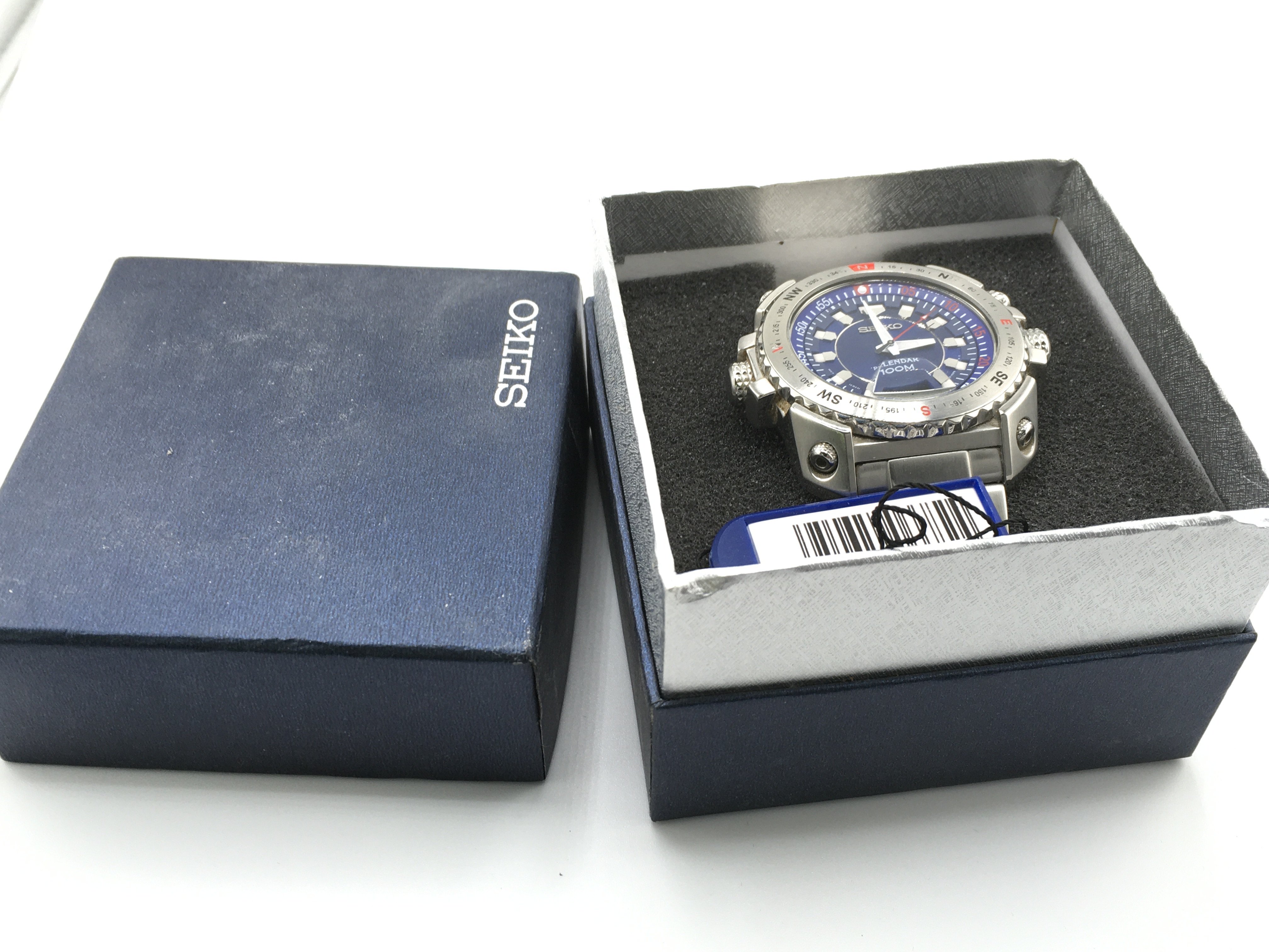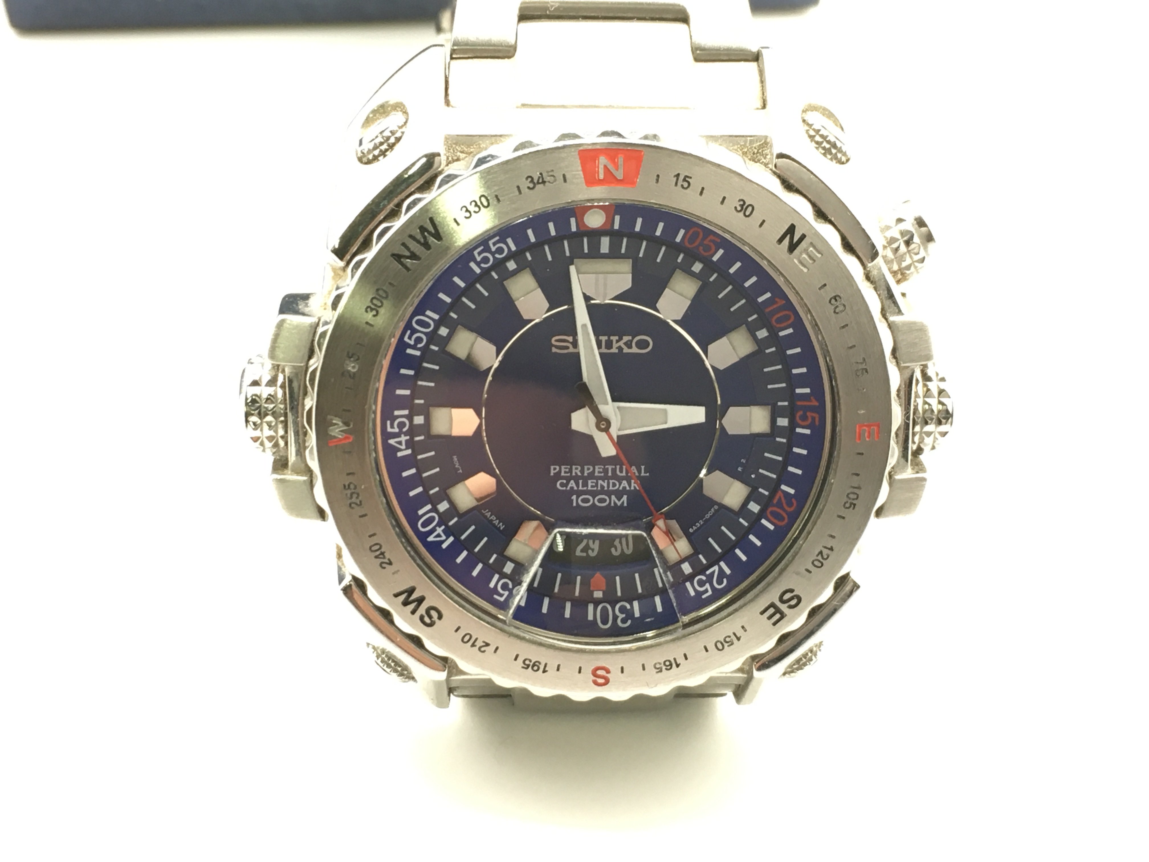 A gents Seiko perpetual calendar wrist watch with box and tag. Seen running.