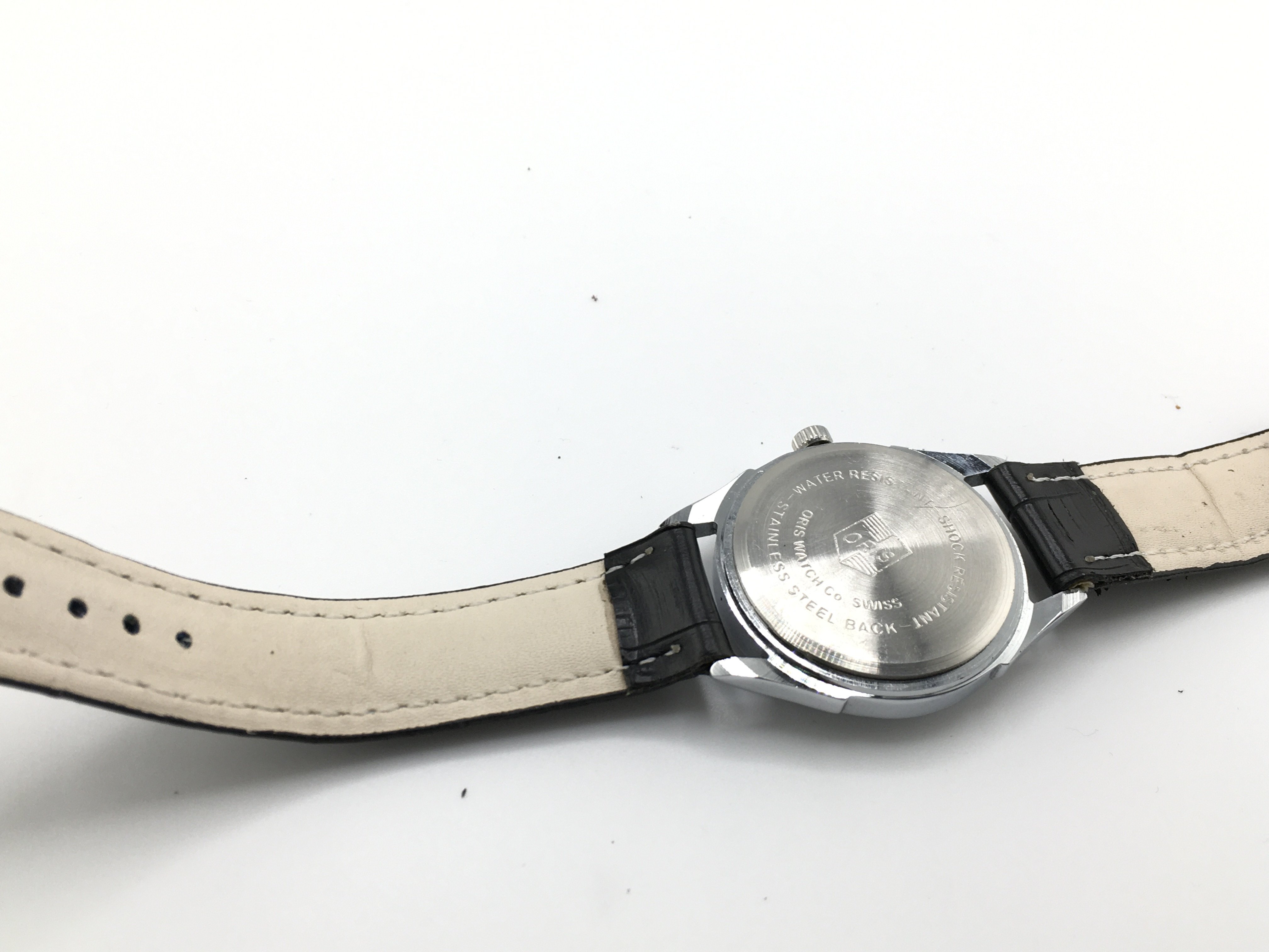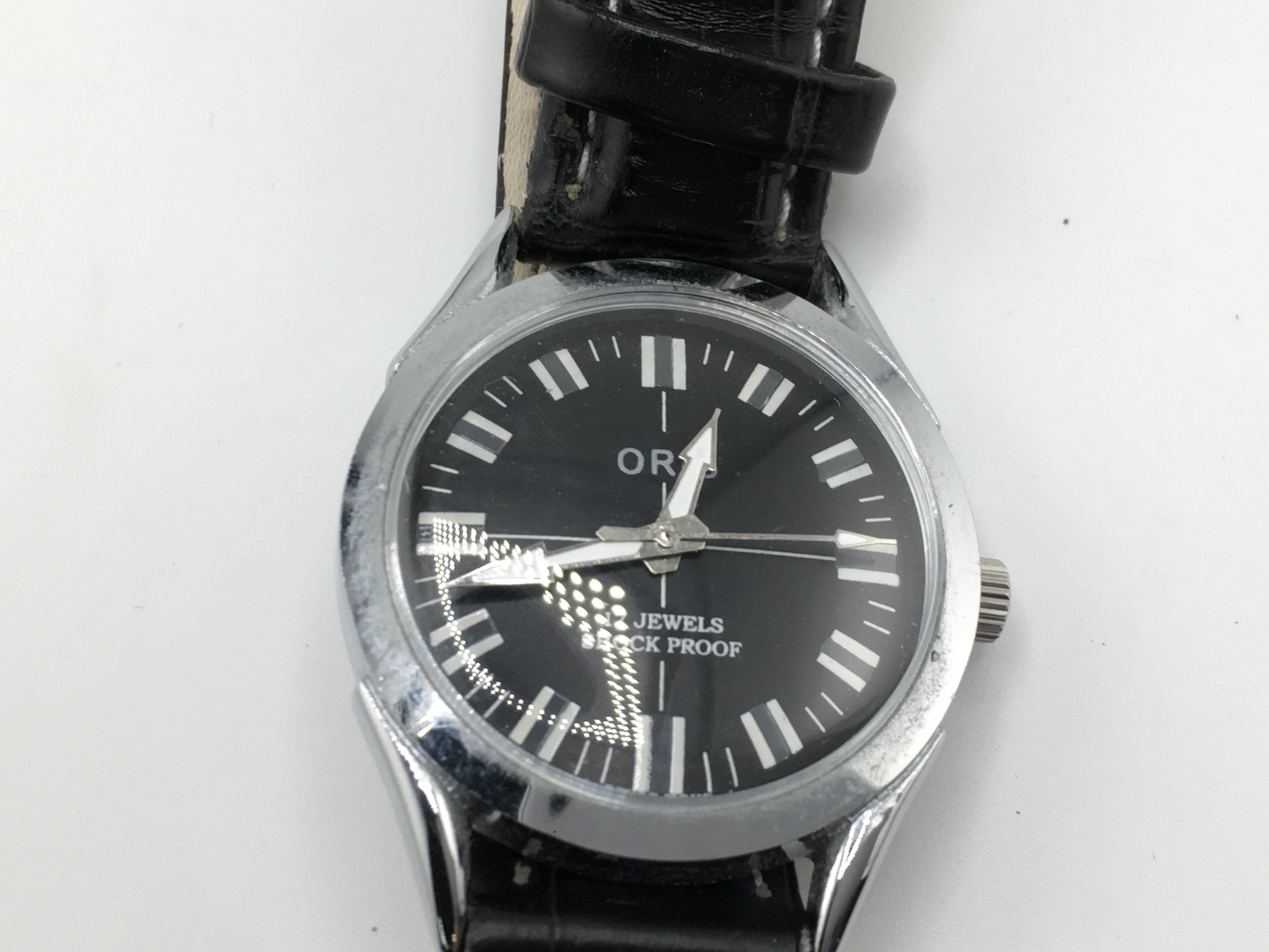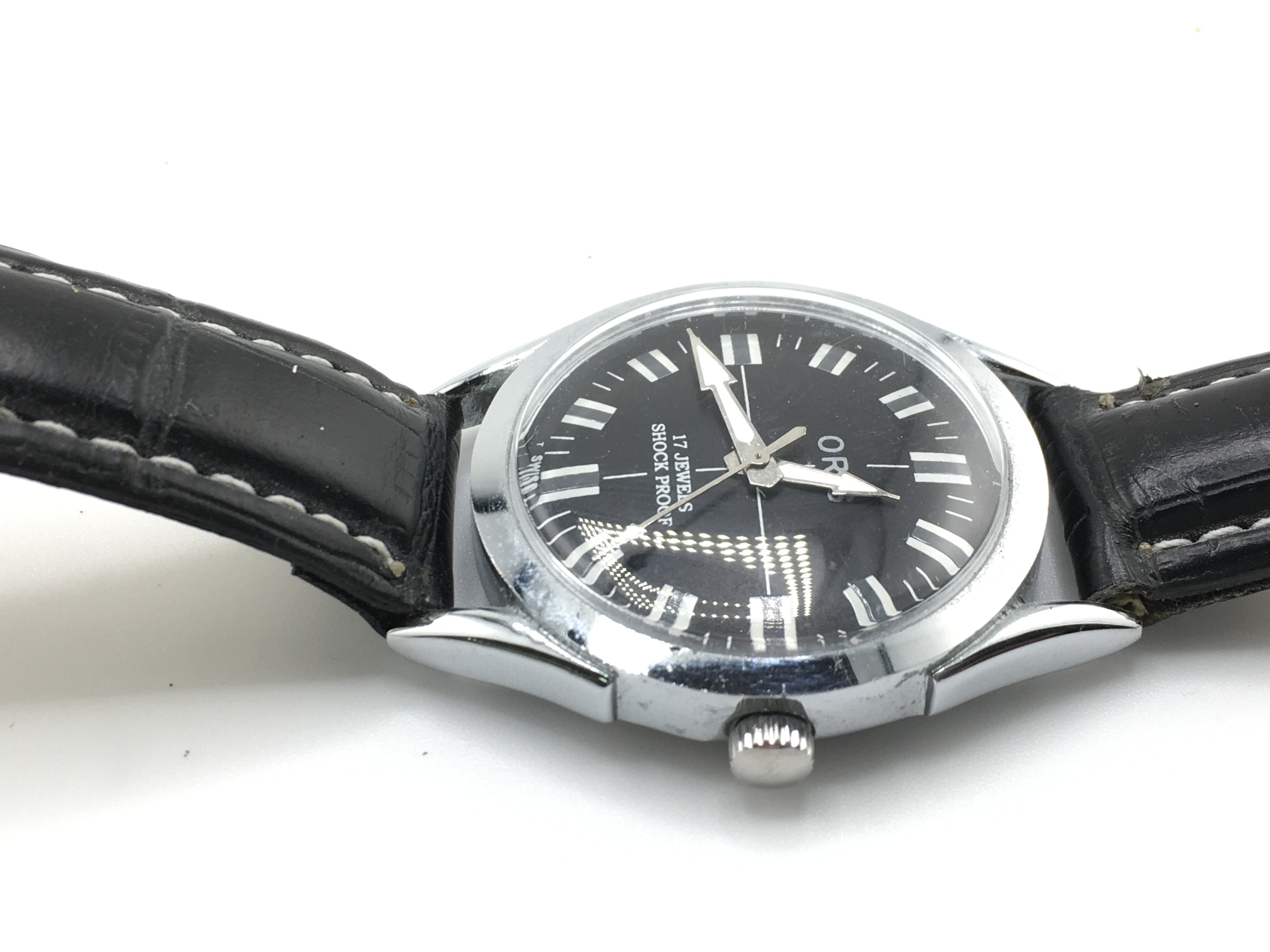 A vintage Oris 17 jewels black dial manual wind watch. Running. 36mm case. Postage B