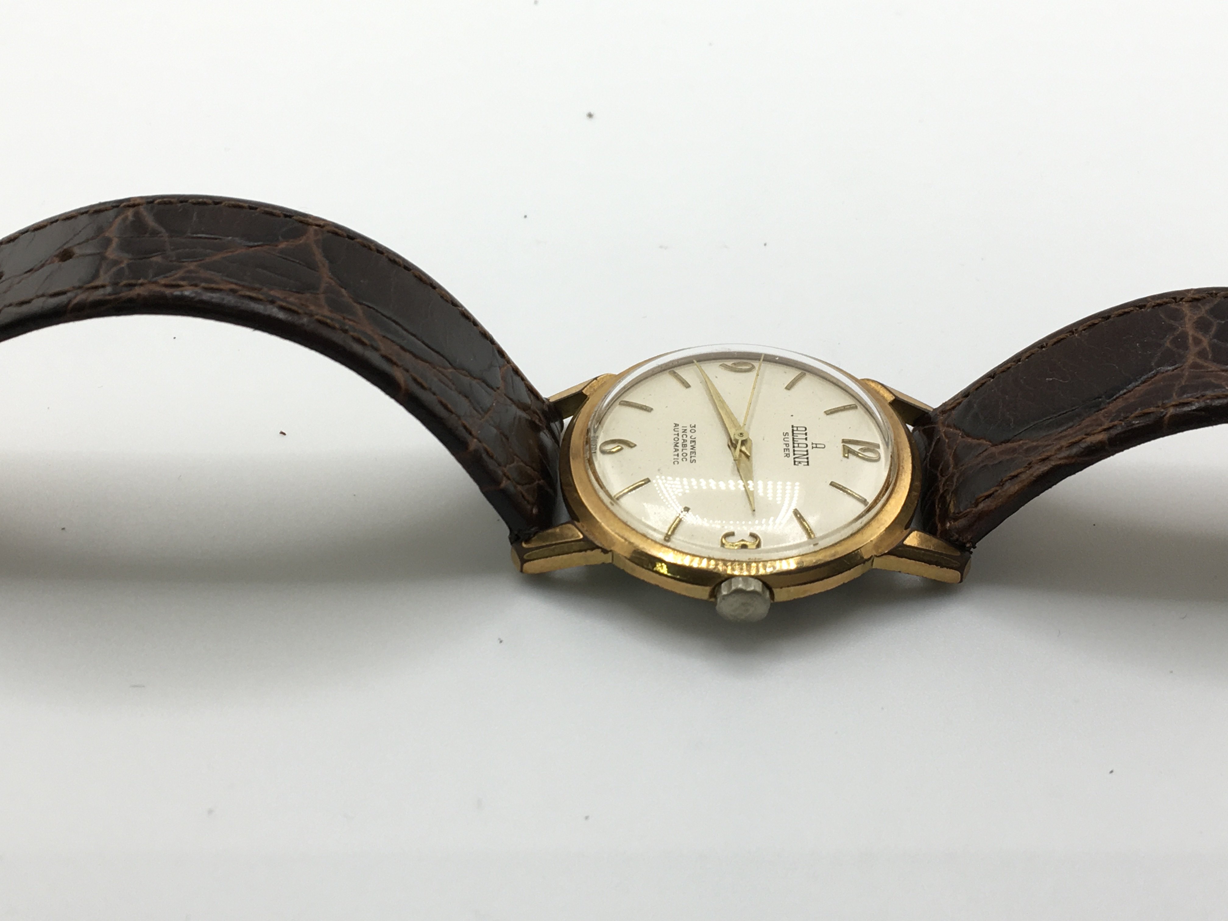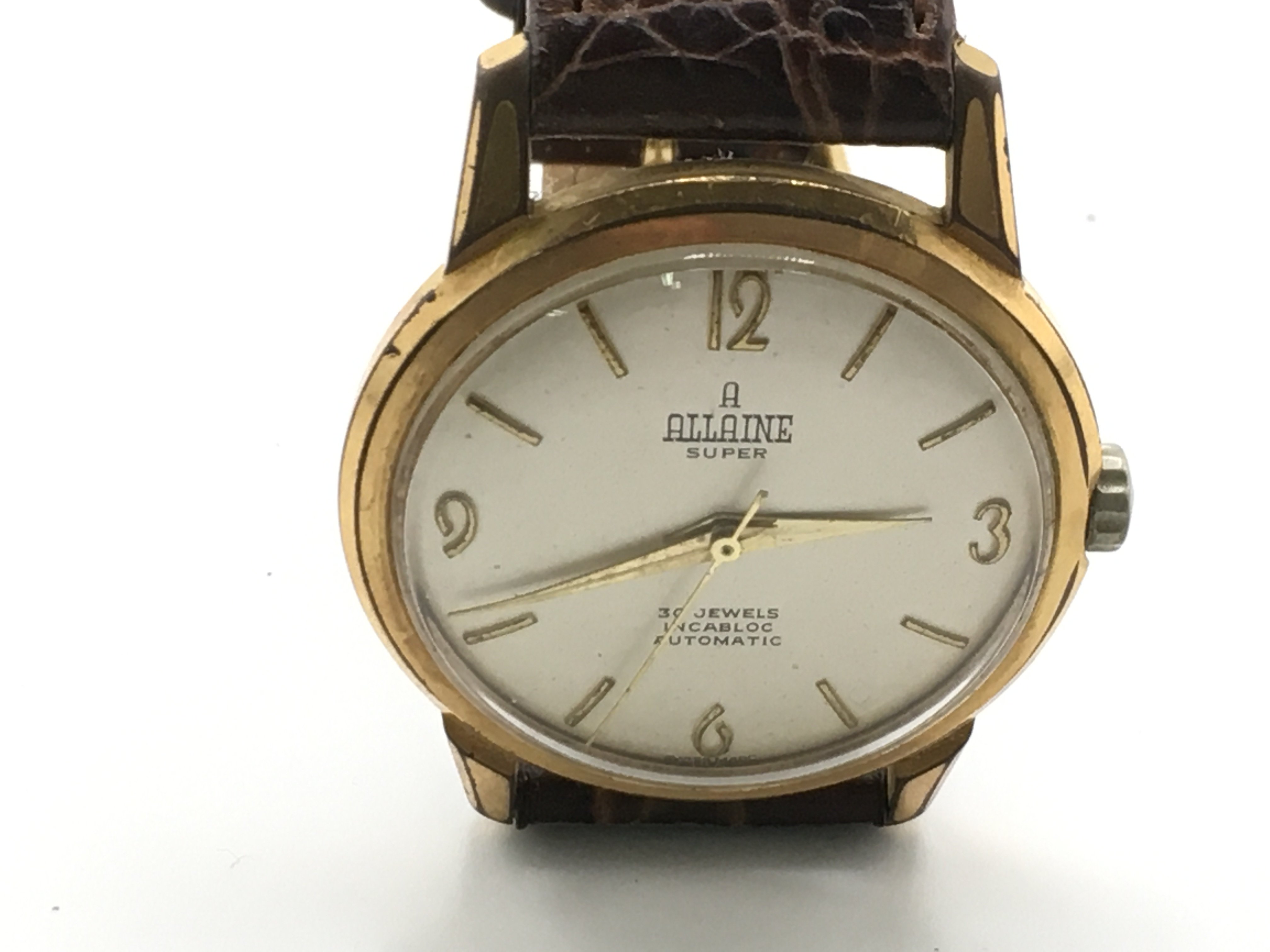 A vintage gents Allaine automatic wrist watch. Seen running. Approximately 36mm case.