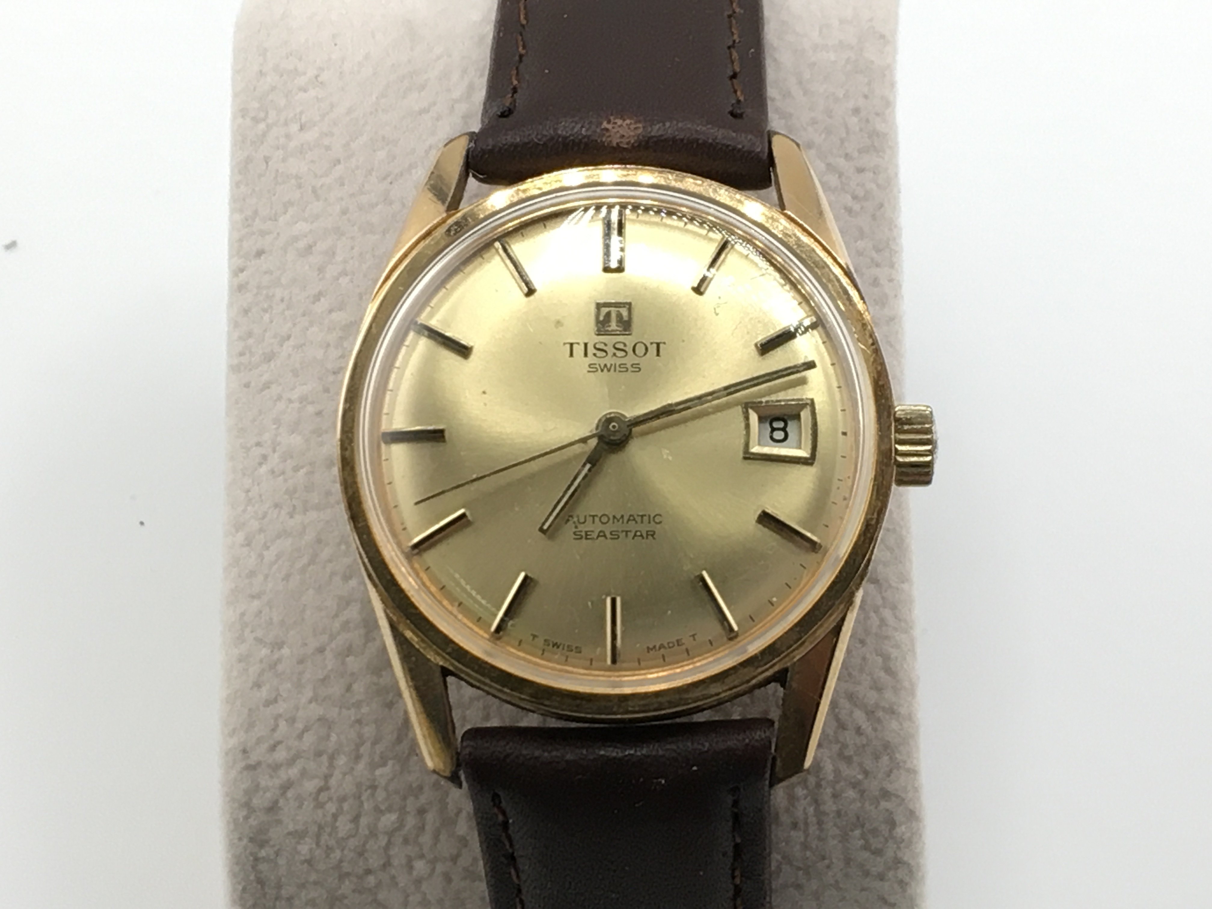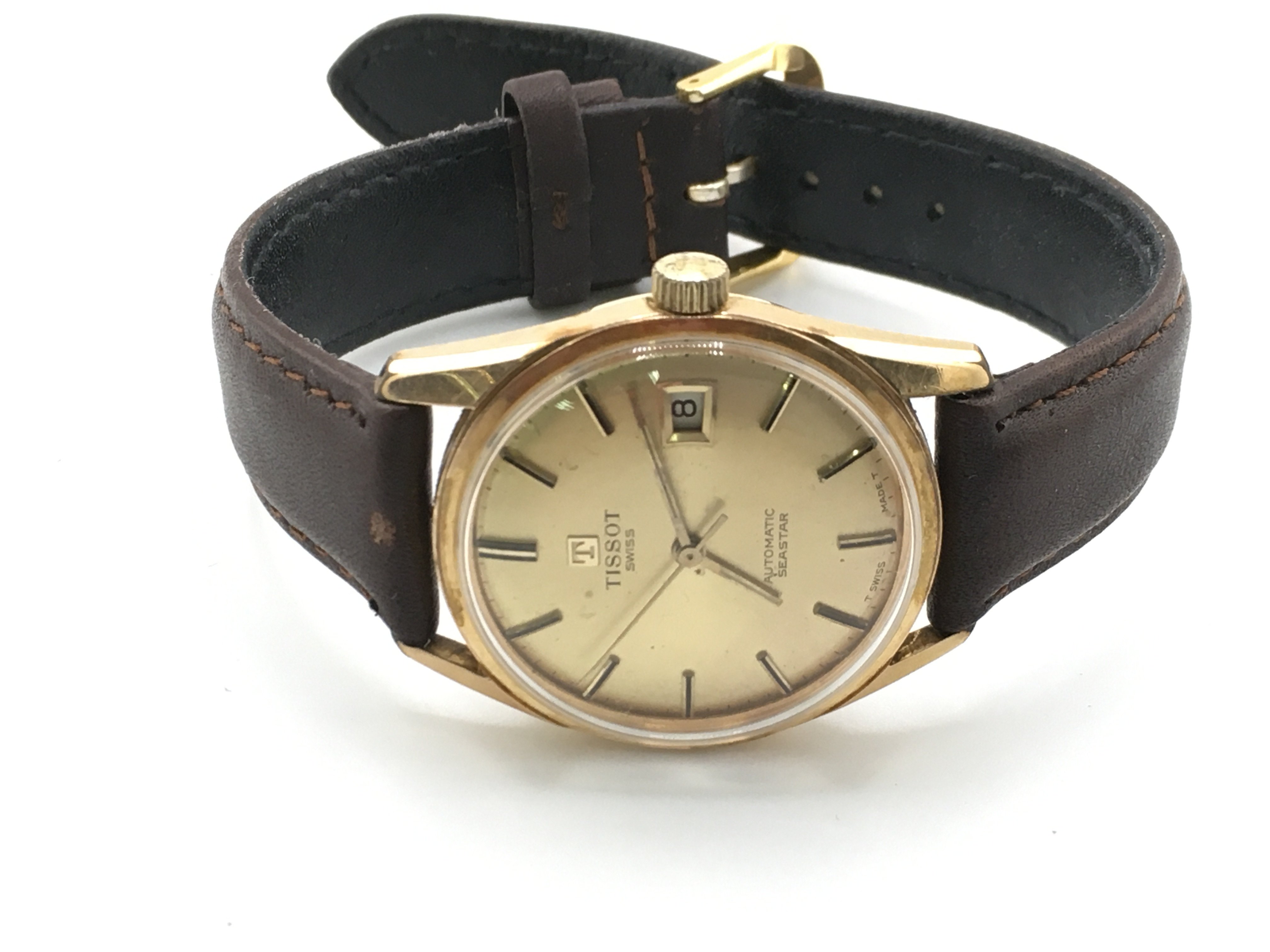A gents Tissot automatic seastar wrist watch with date aperture. Seen running. 34mm case.