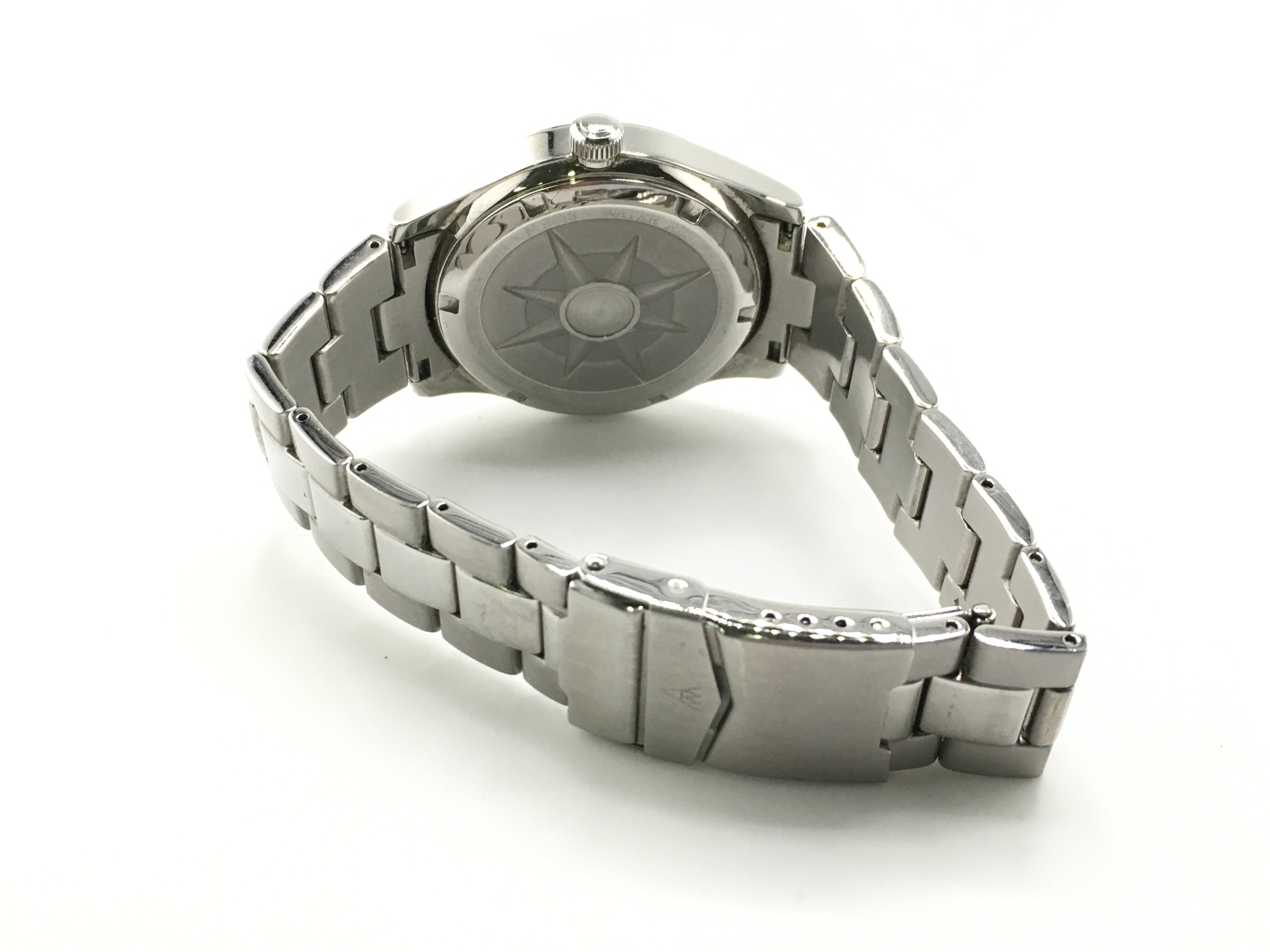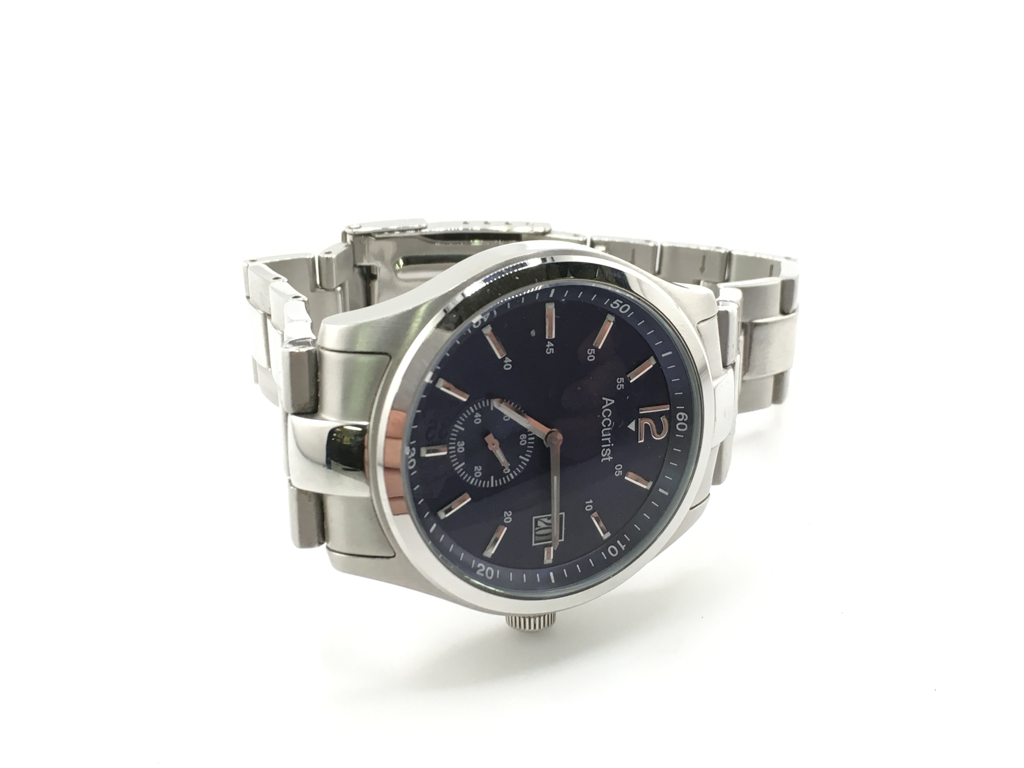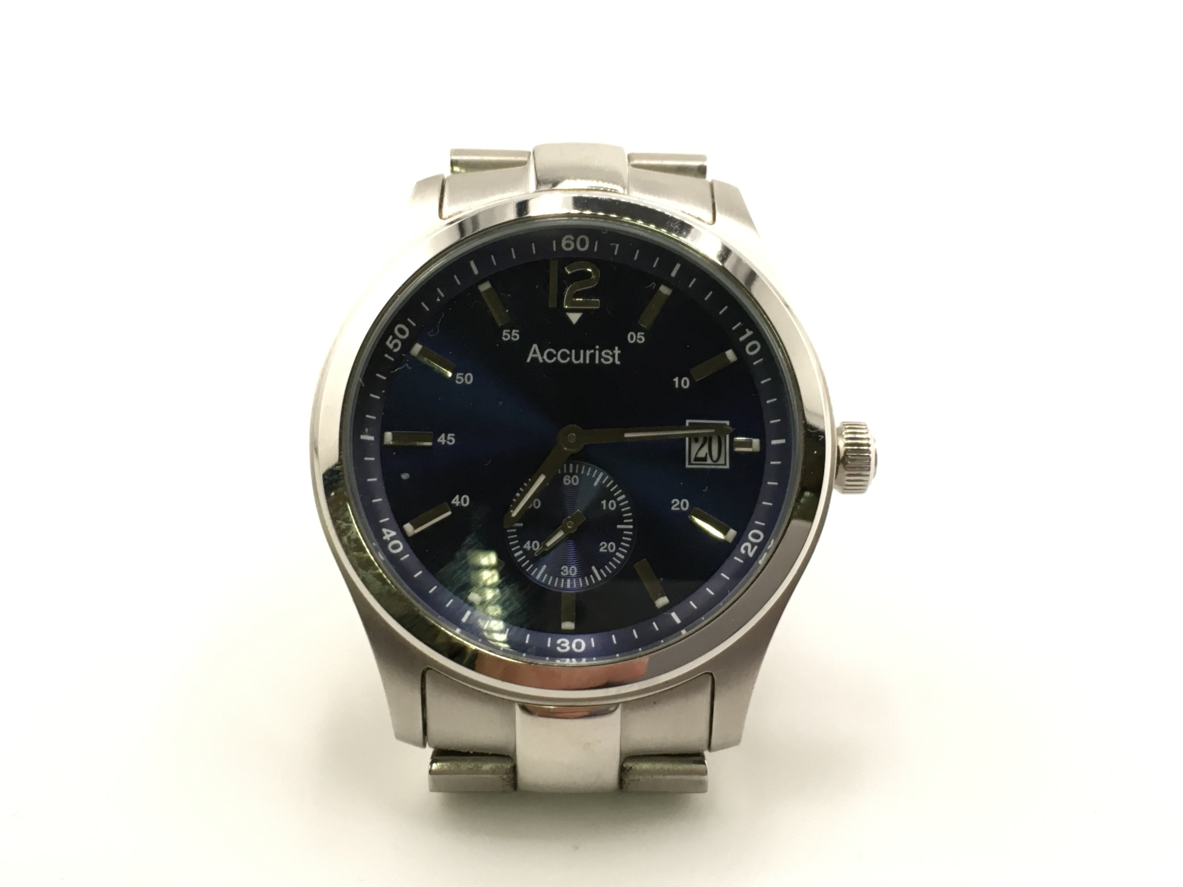 A gents Accurist watch. Blue dial with date aperture. 40mm case. Seen running. Postage B