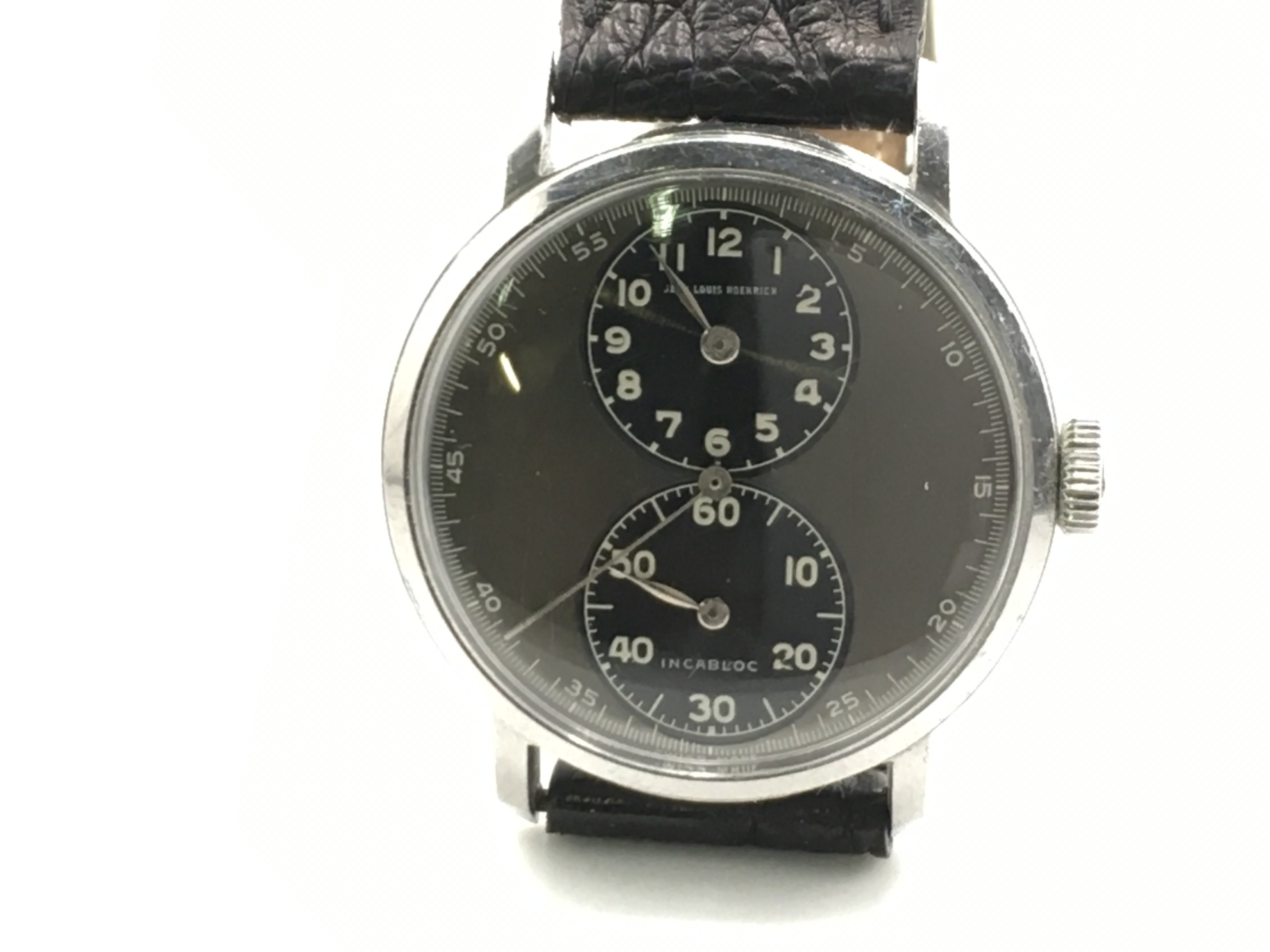A gents vintage wrist watch by Jean Louis Roehrich who was supposedly worked with Omega and Cartier. Case 34mm. Winds and runs. Postage B