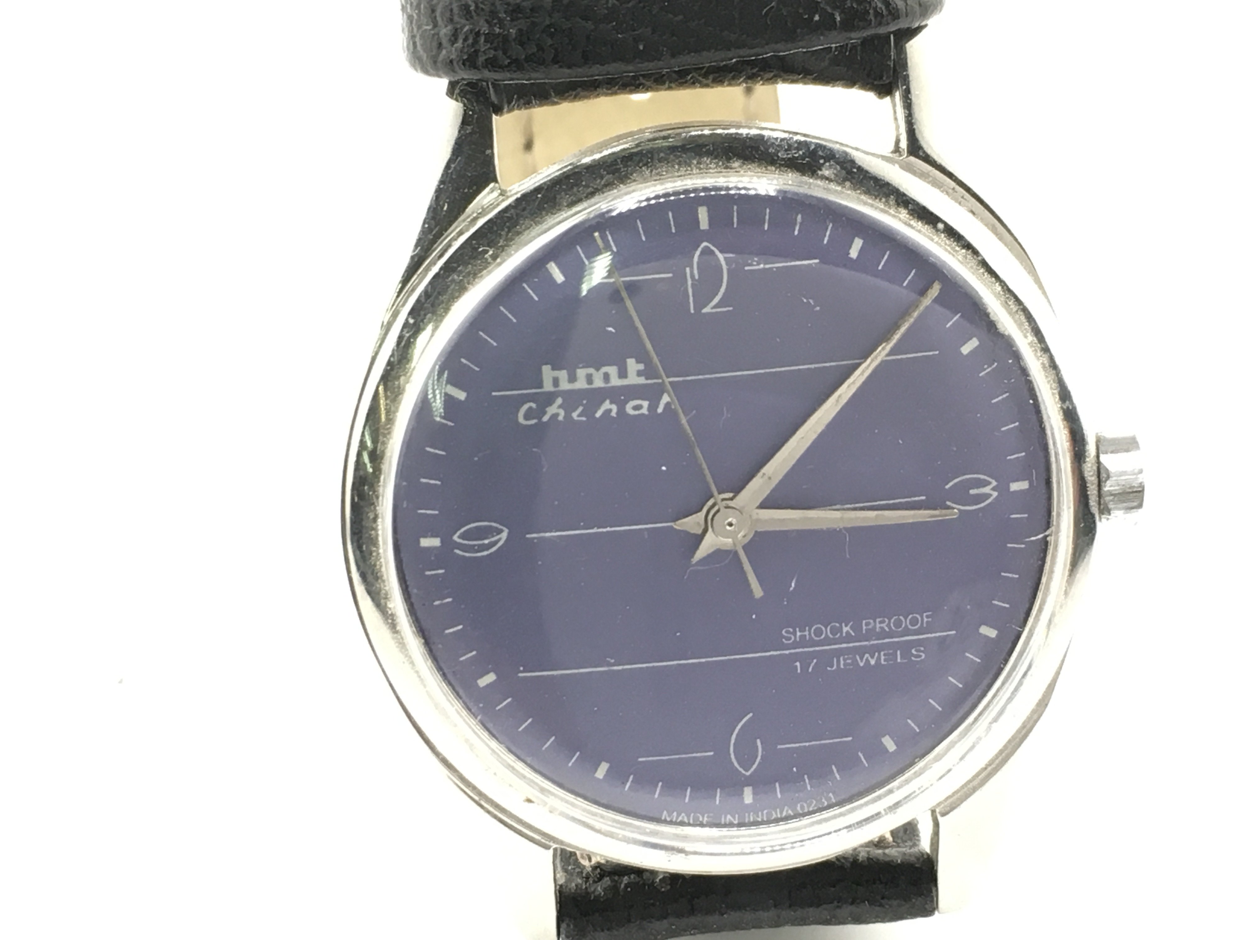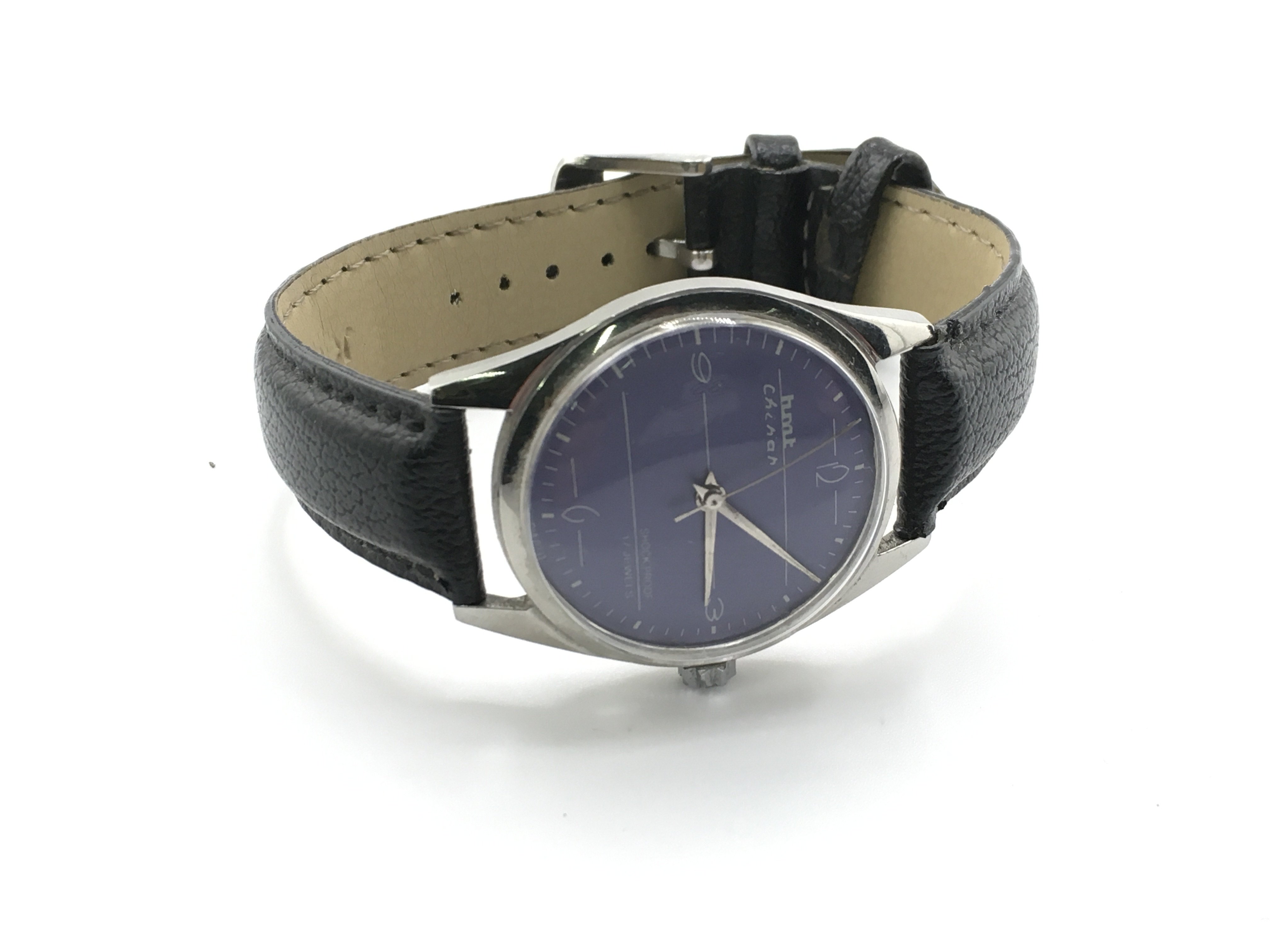 A HMT Chinan watch with an interesting dial and black leather strap. 35mm case. Not seen running