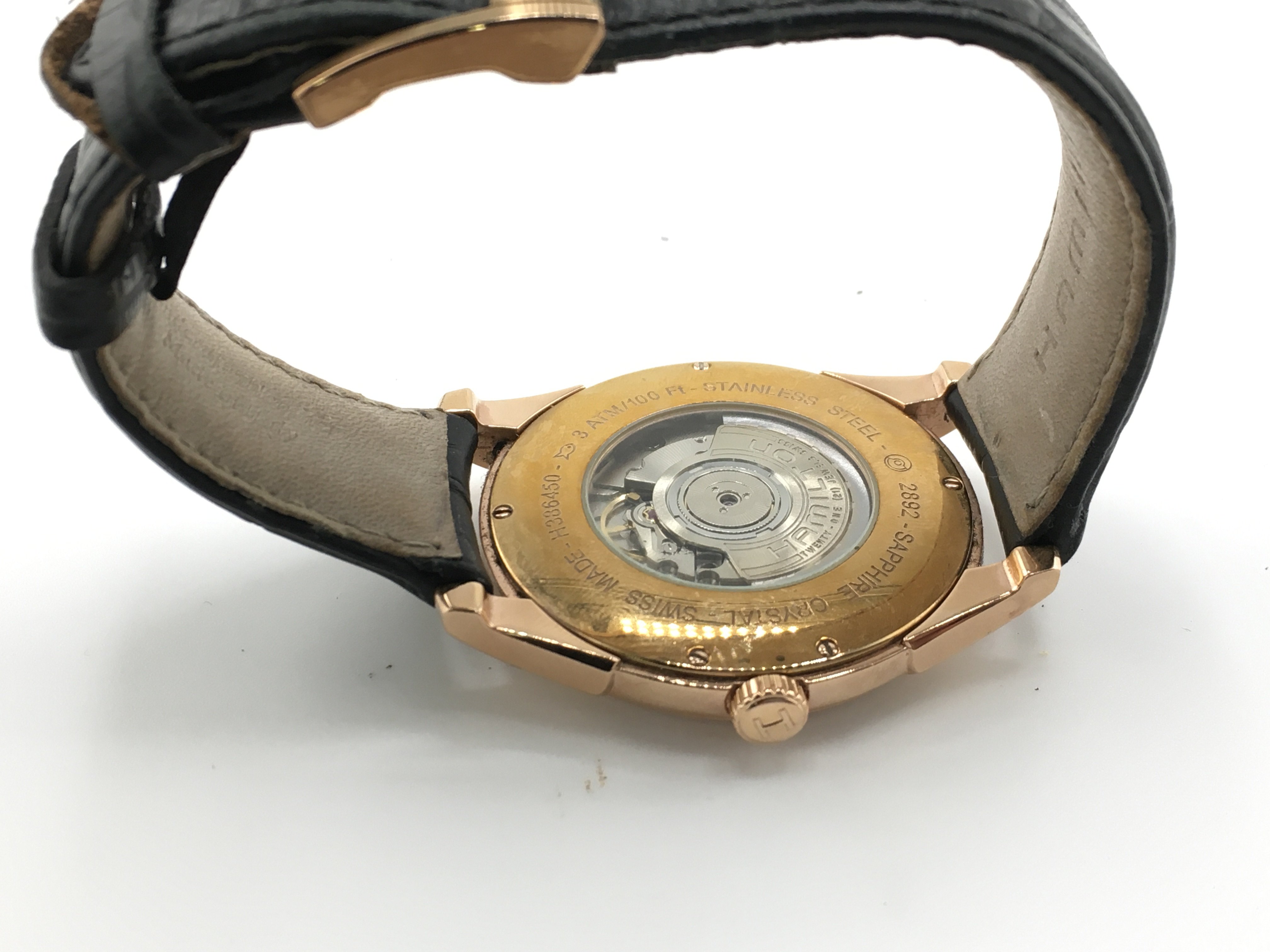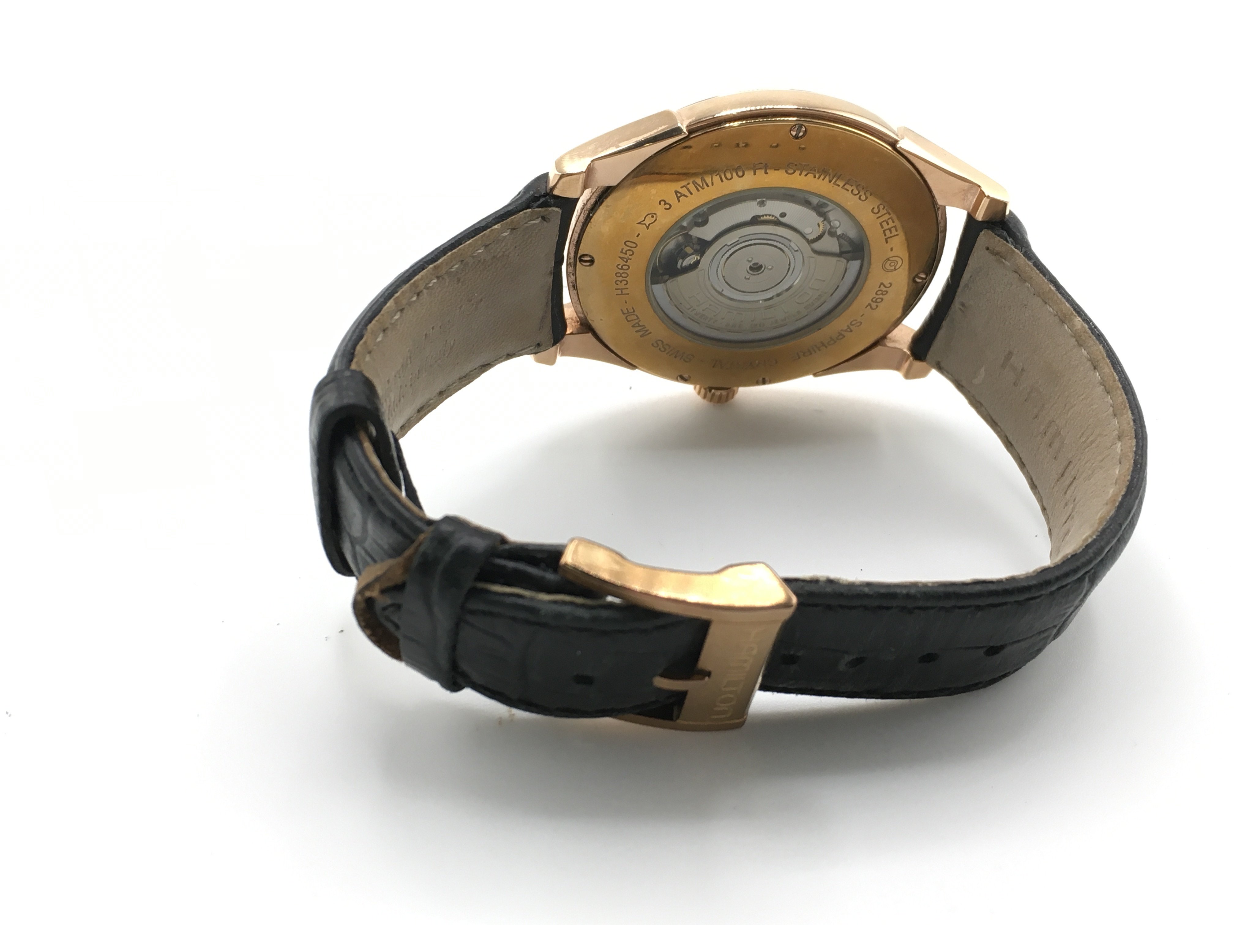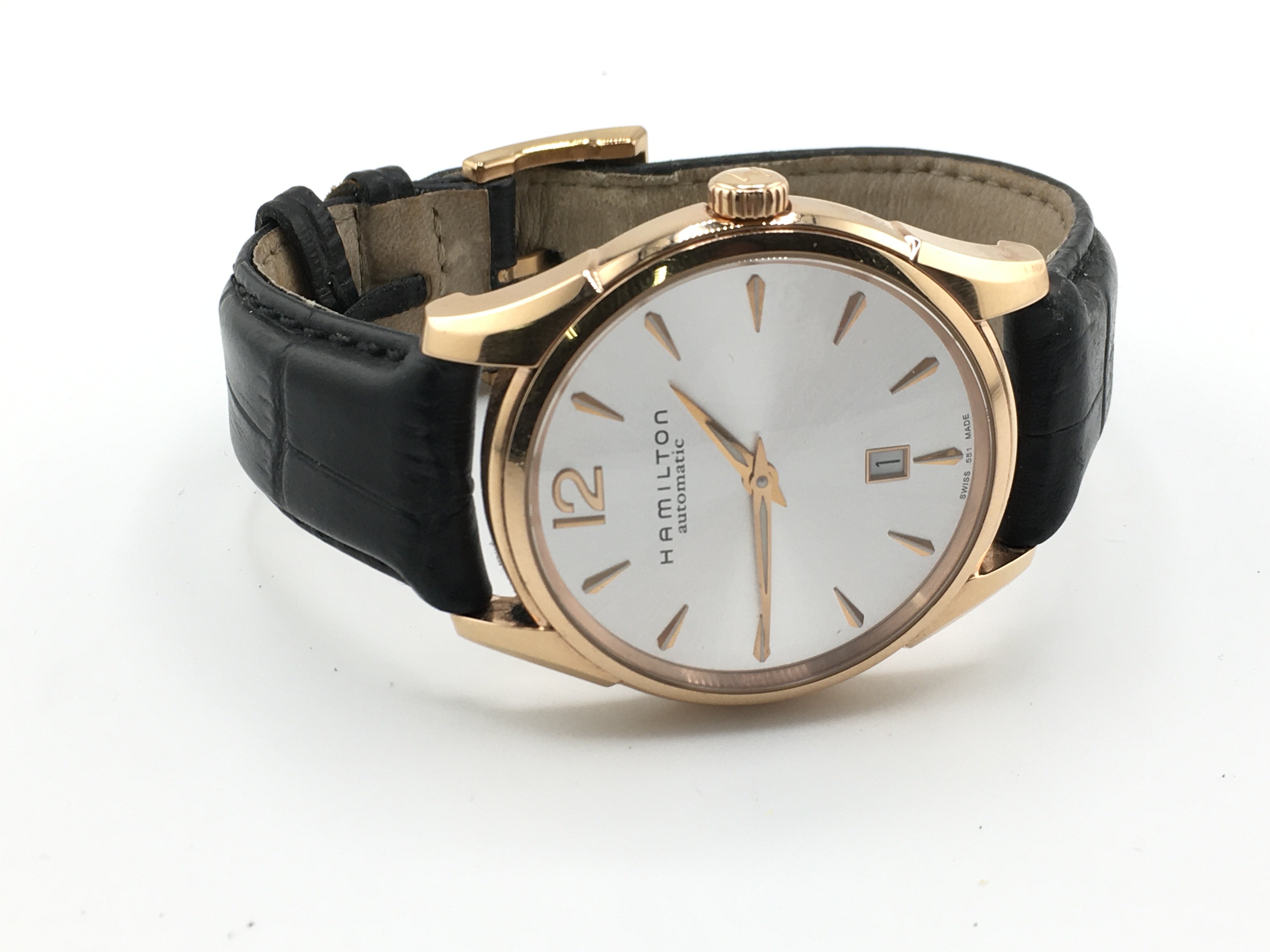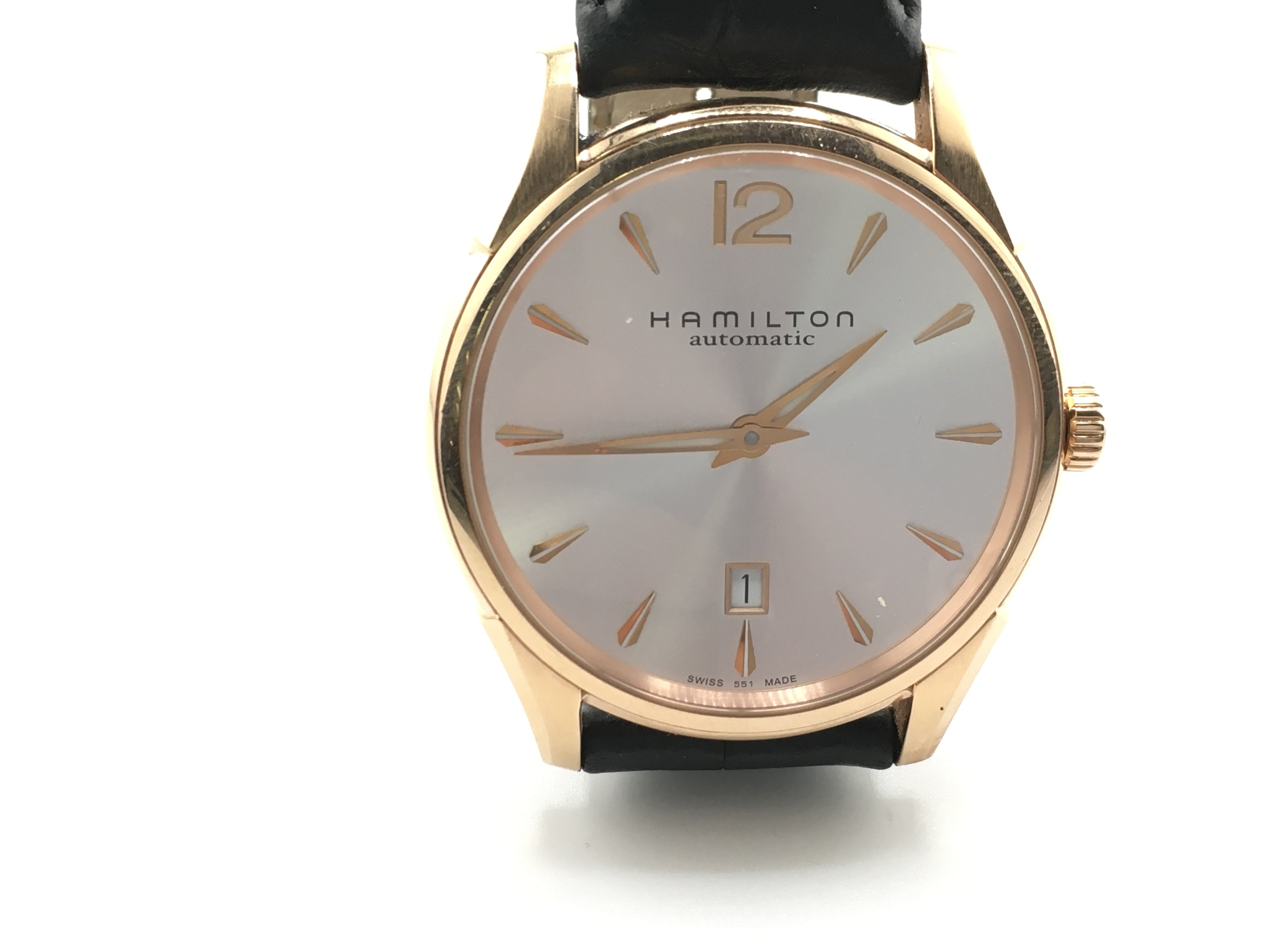 A gents Hamilton automatic watch with silver coloured dial. 42mm case. Running. Postage B