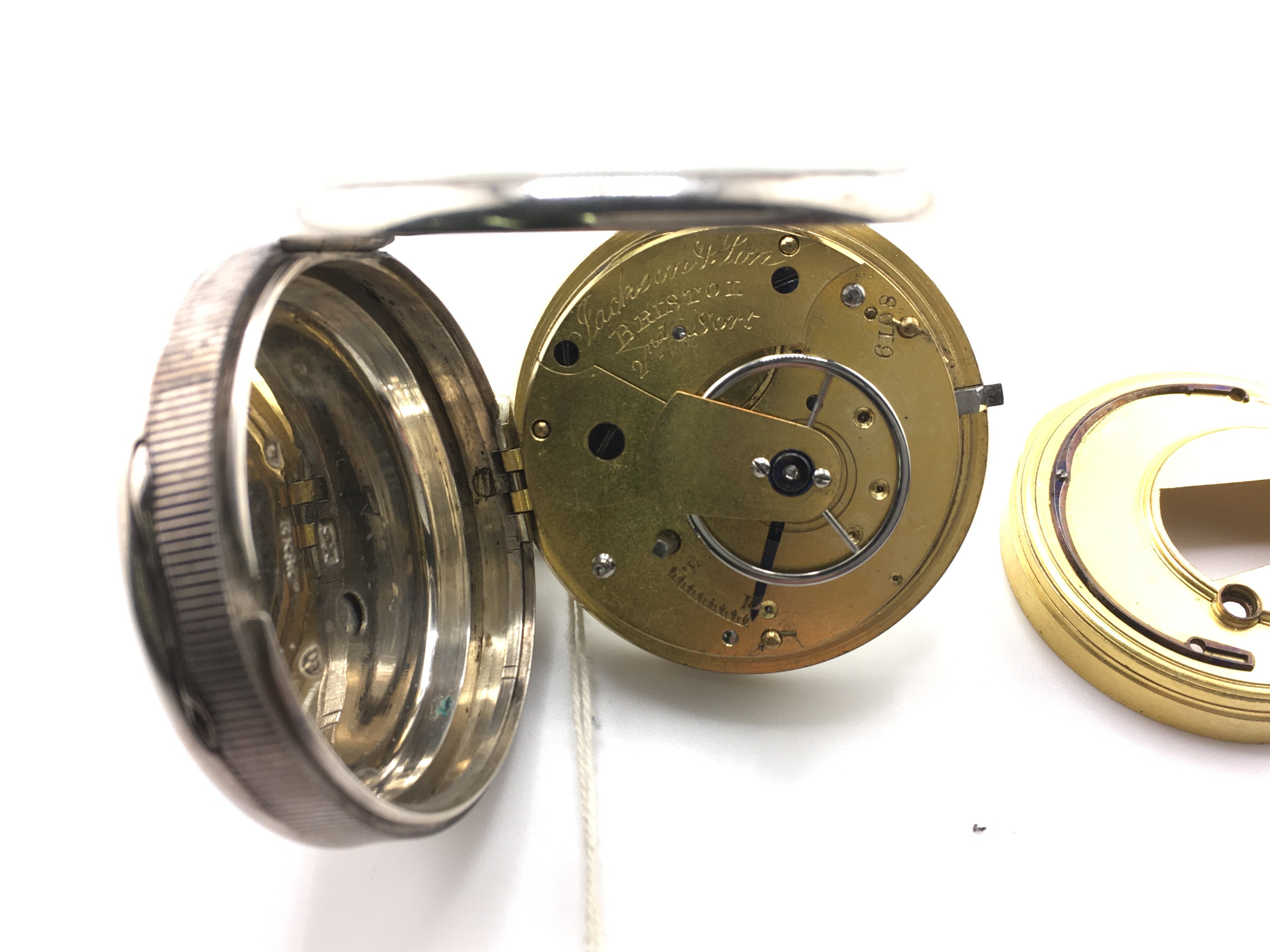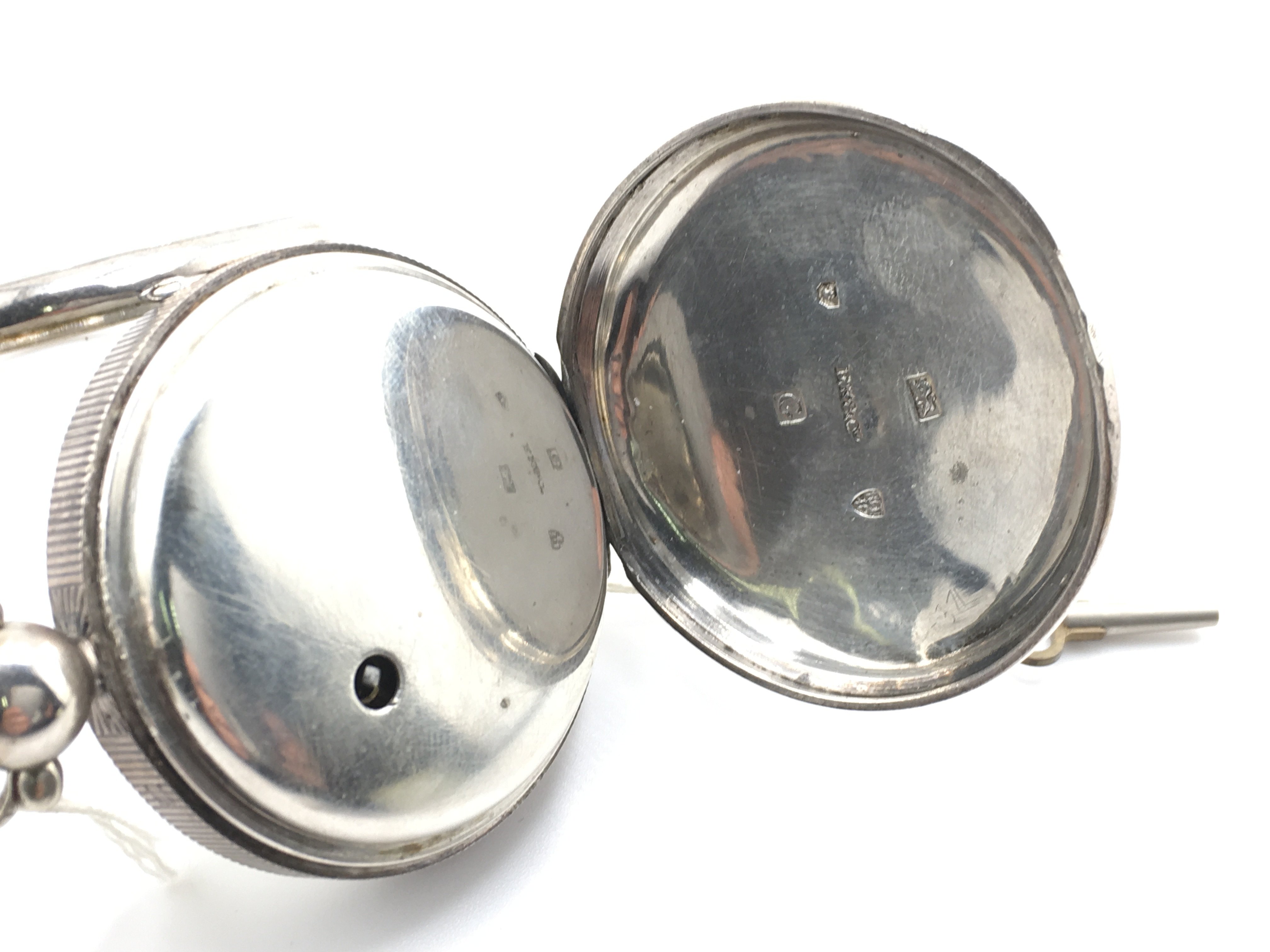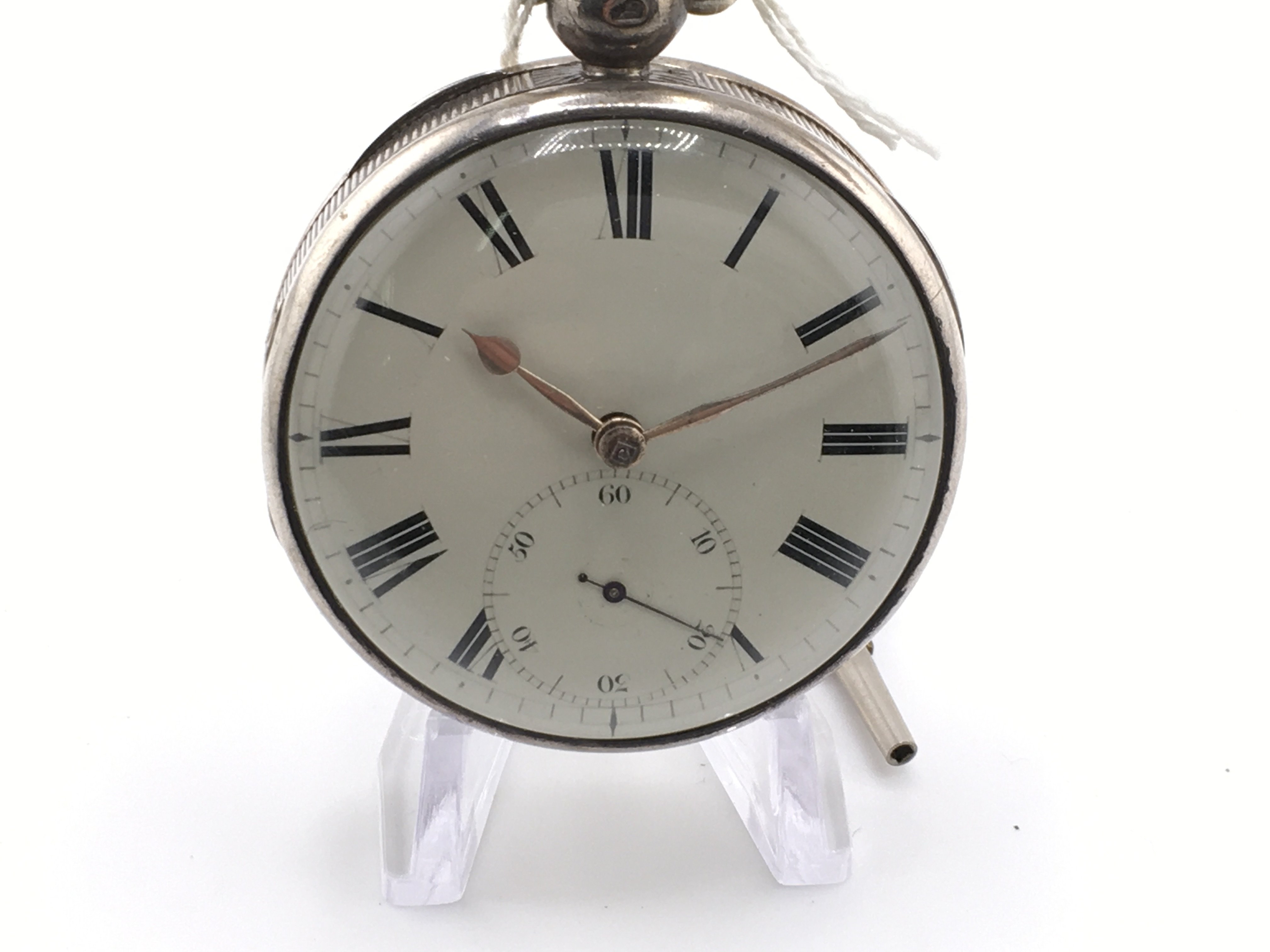 A silver cased EK&Co silver key wind pocket watch. Runs intermittently. Approximately 50mm case.