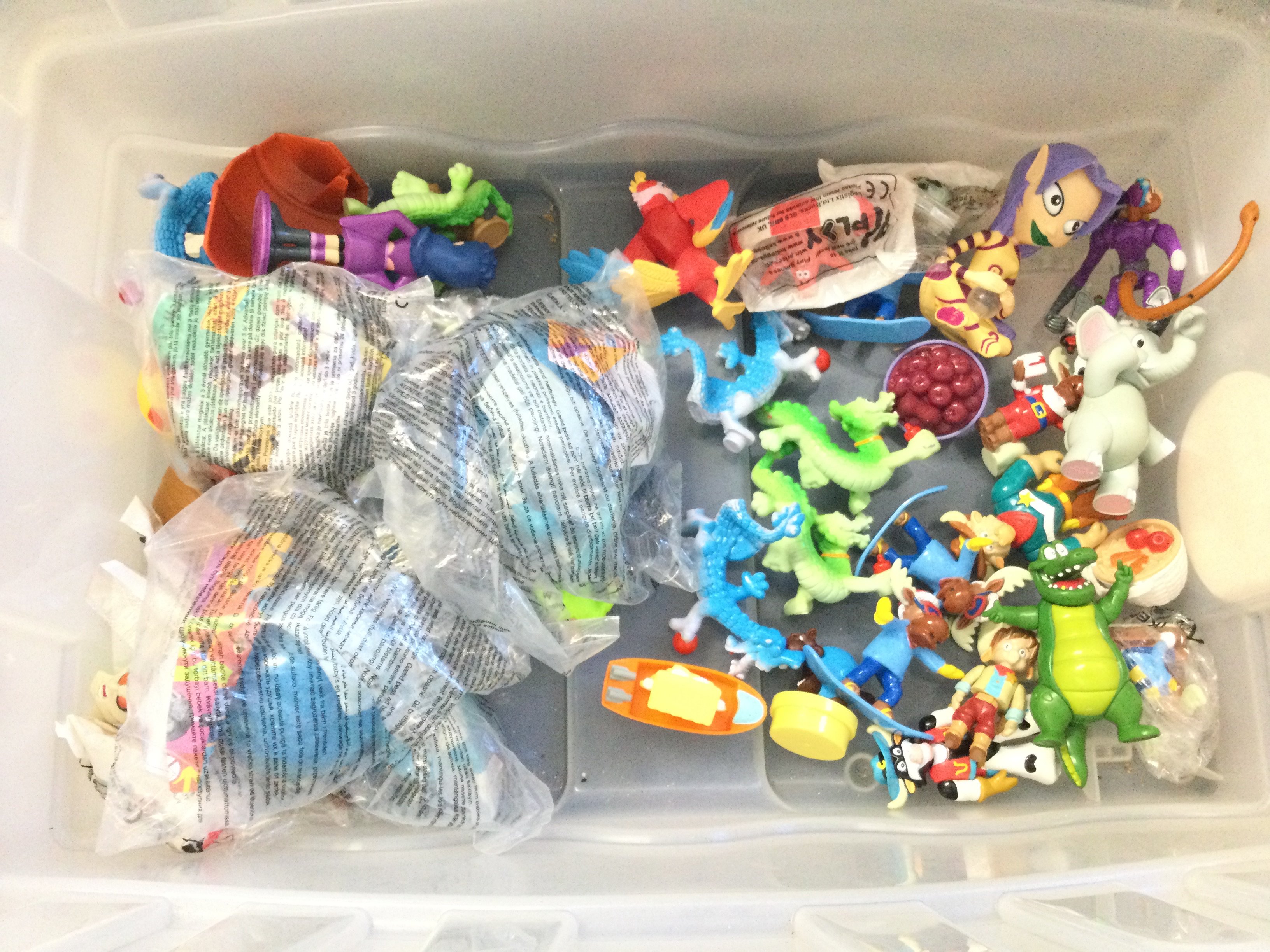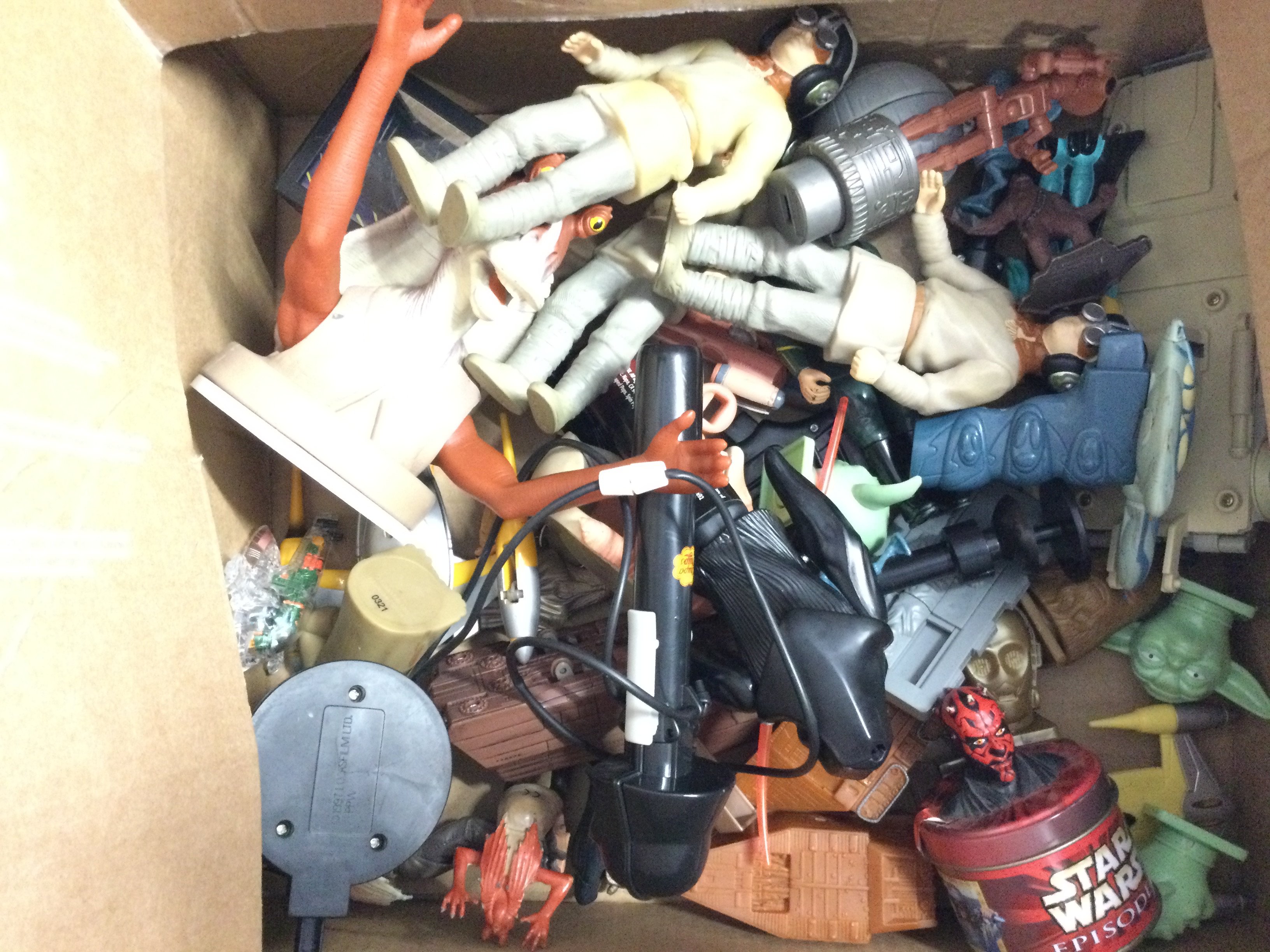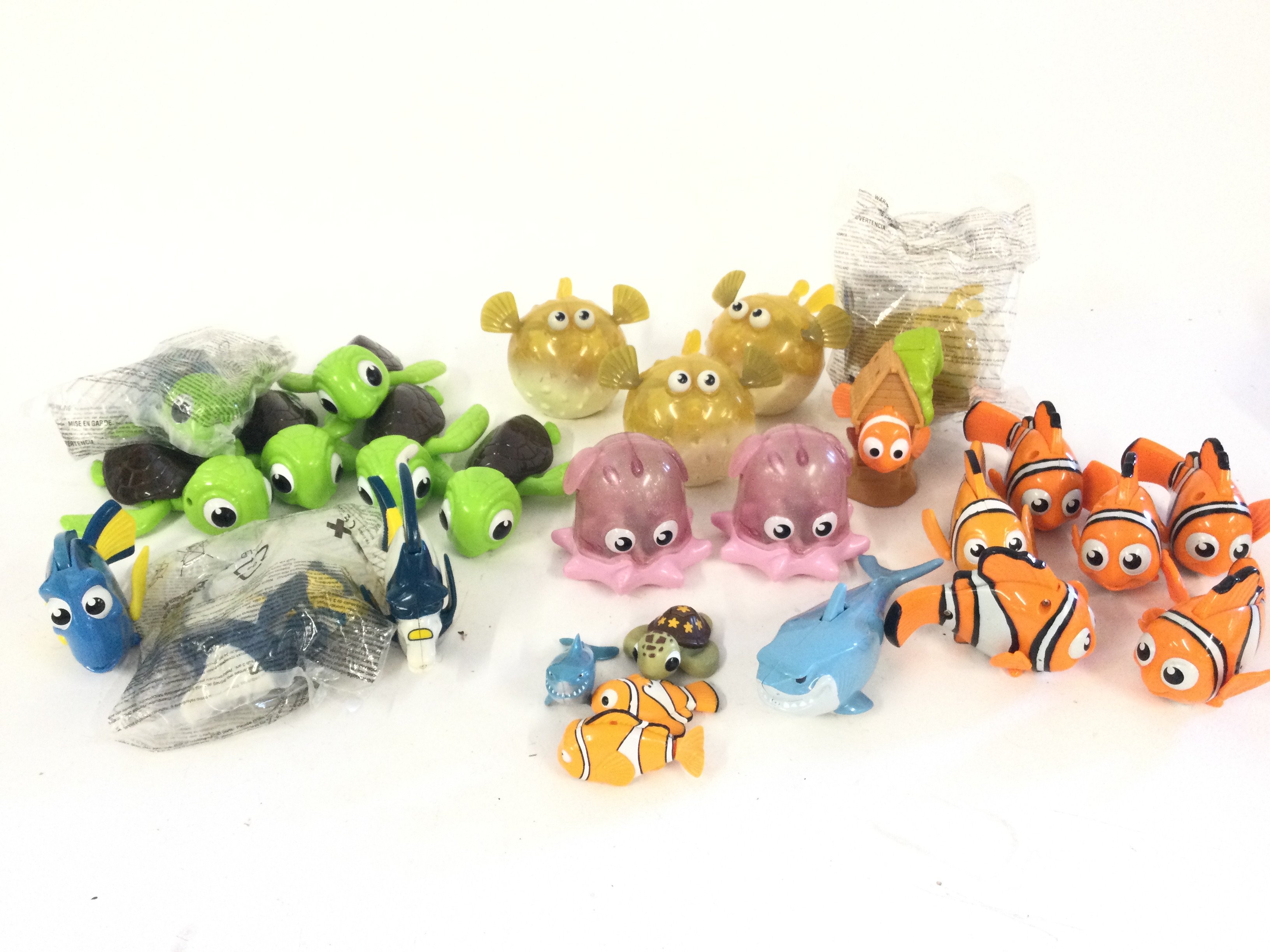 A box containing a quantity of toys and collectibles including Finding Nemo. Star Wars. Disney and Tetley Tea. As well as others.