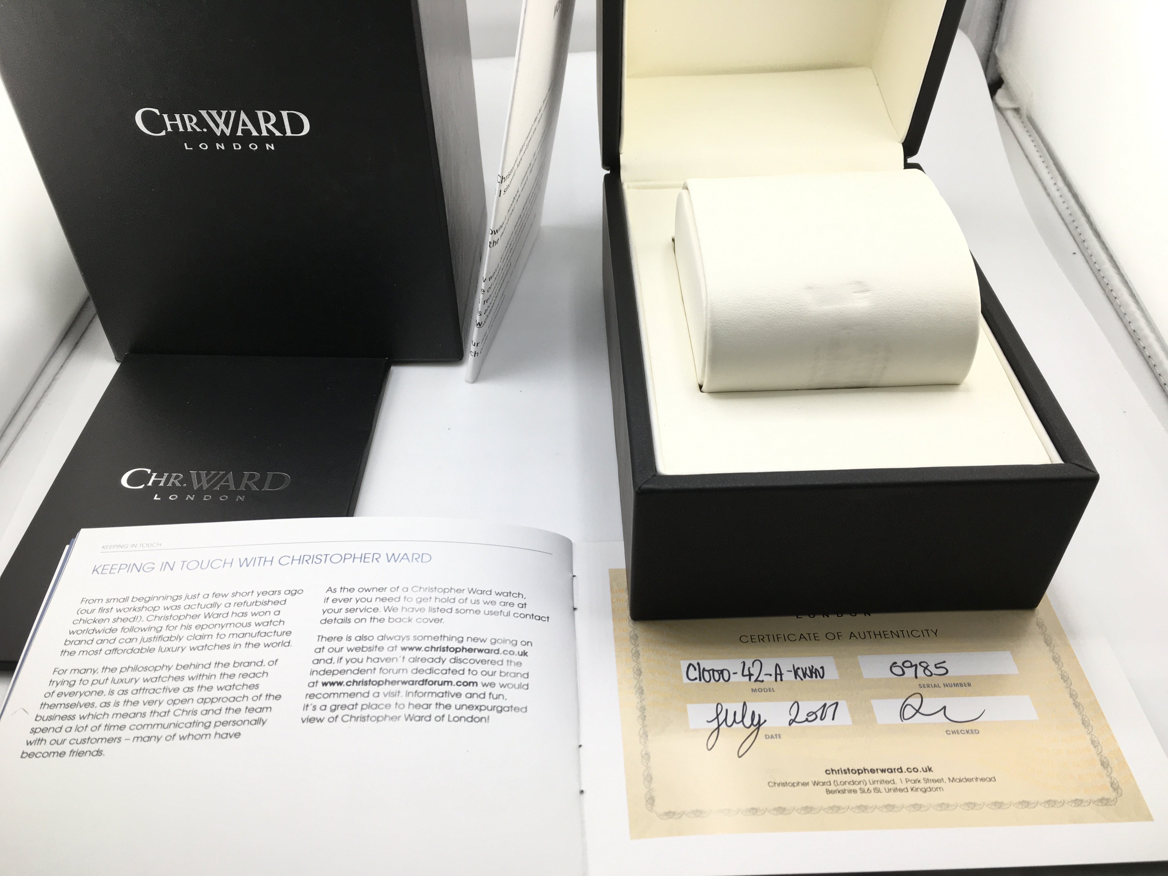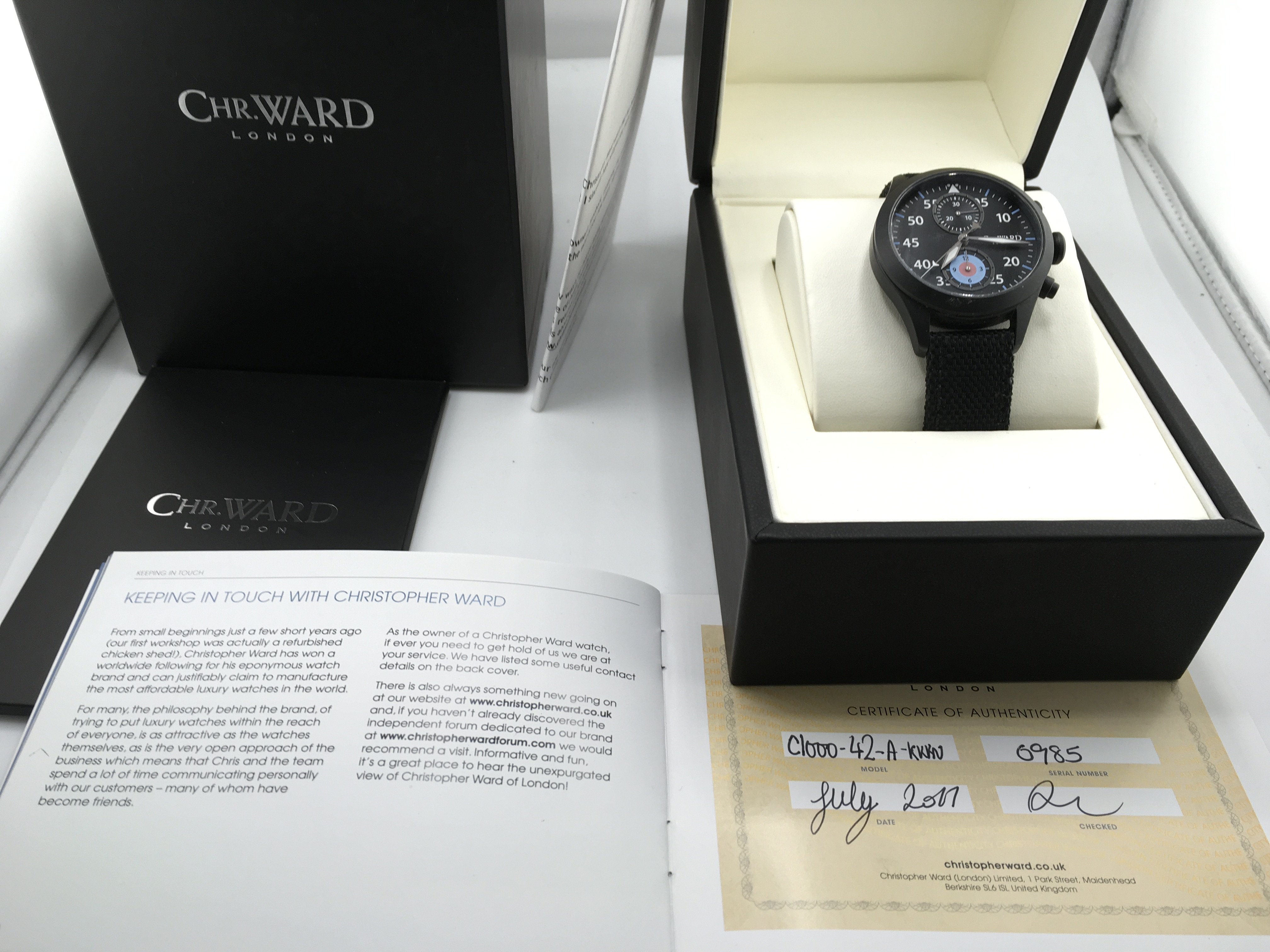 A Limited edition Chris Ward gents watch. C1000 Typhoon model. 42mm case. Comes with box and papers. Seen running.