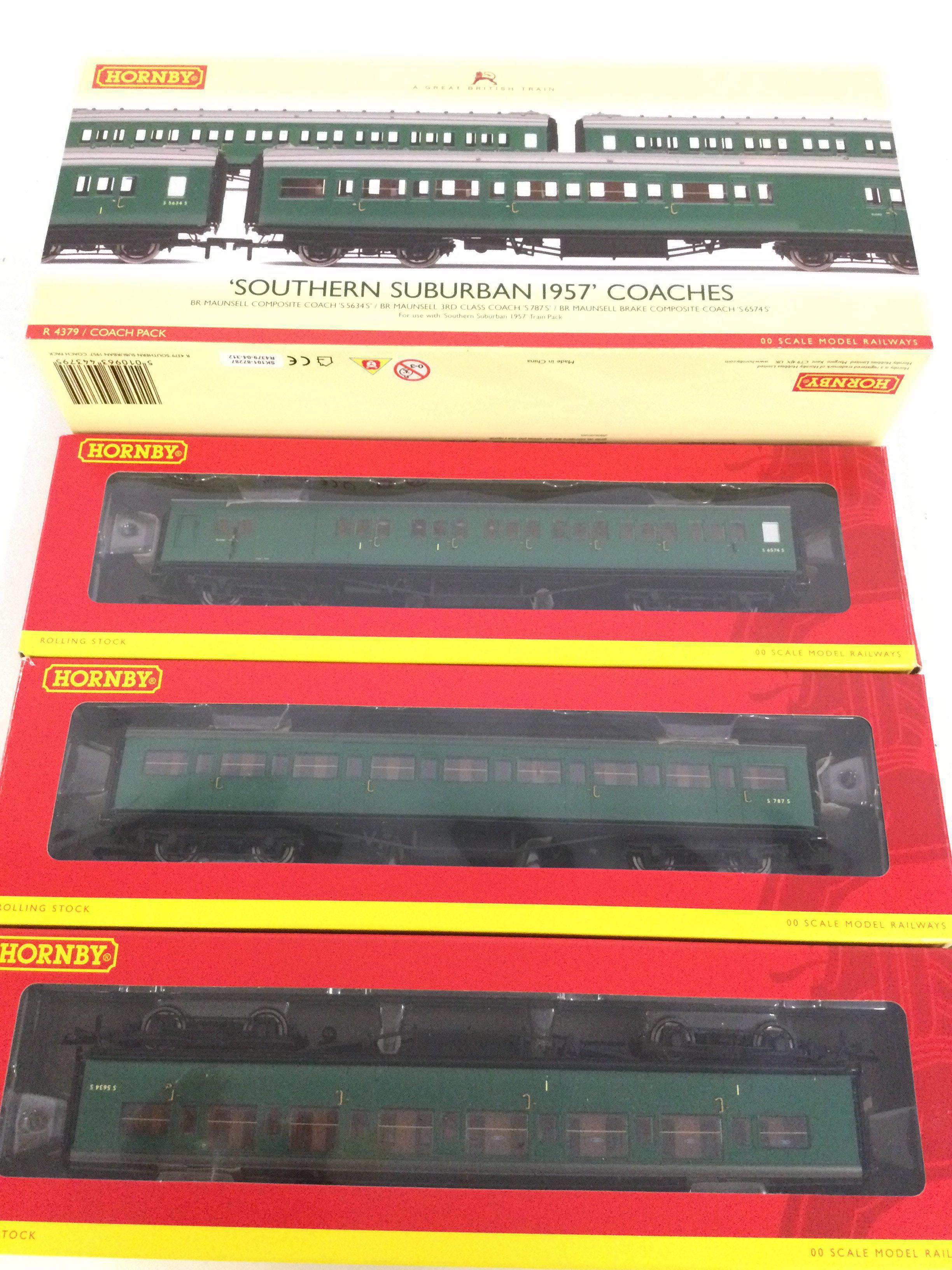 A Boxed Hornby 0 Gauge Southern Suburban 1957 COACHES #R4379.