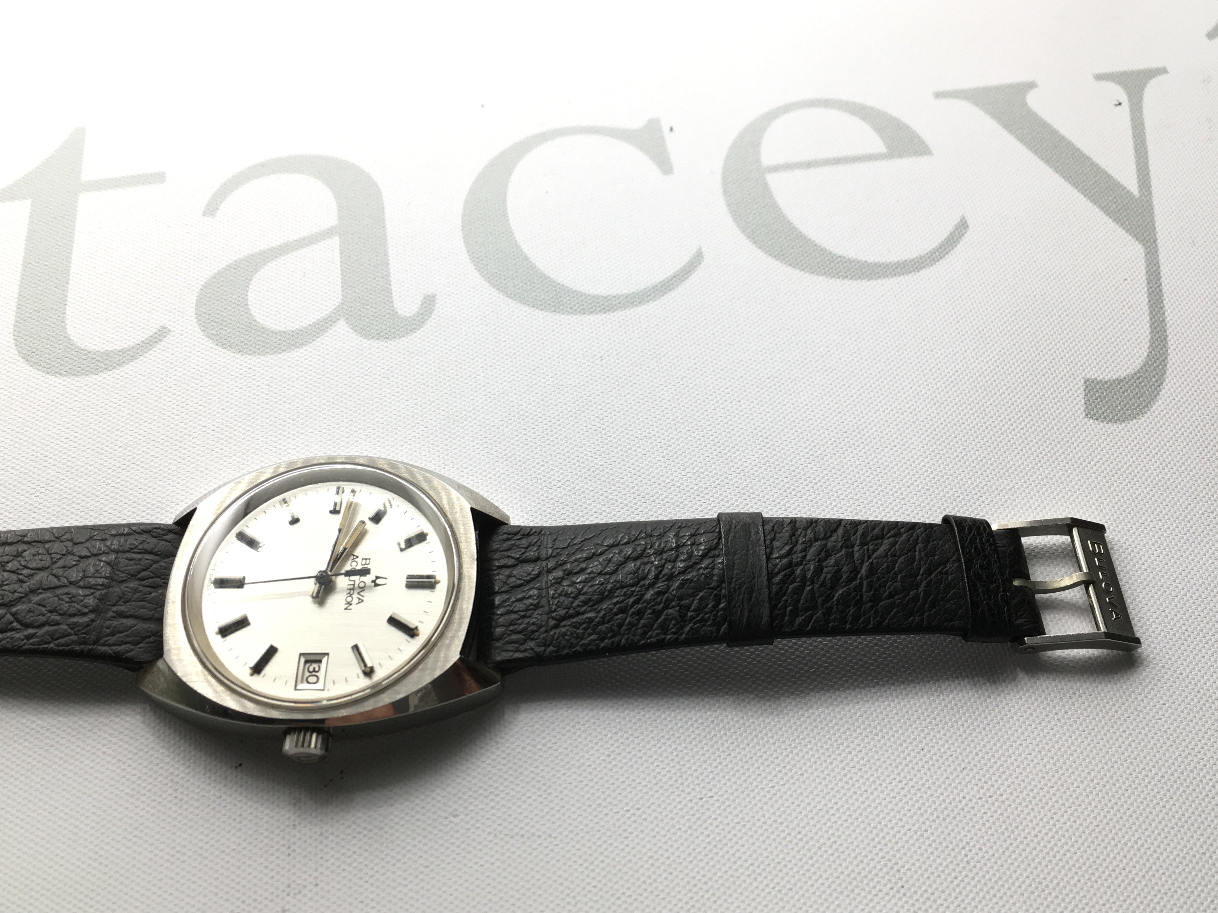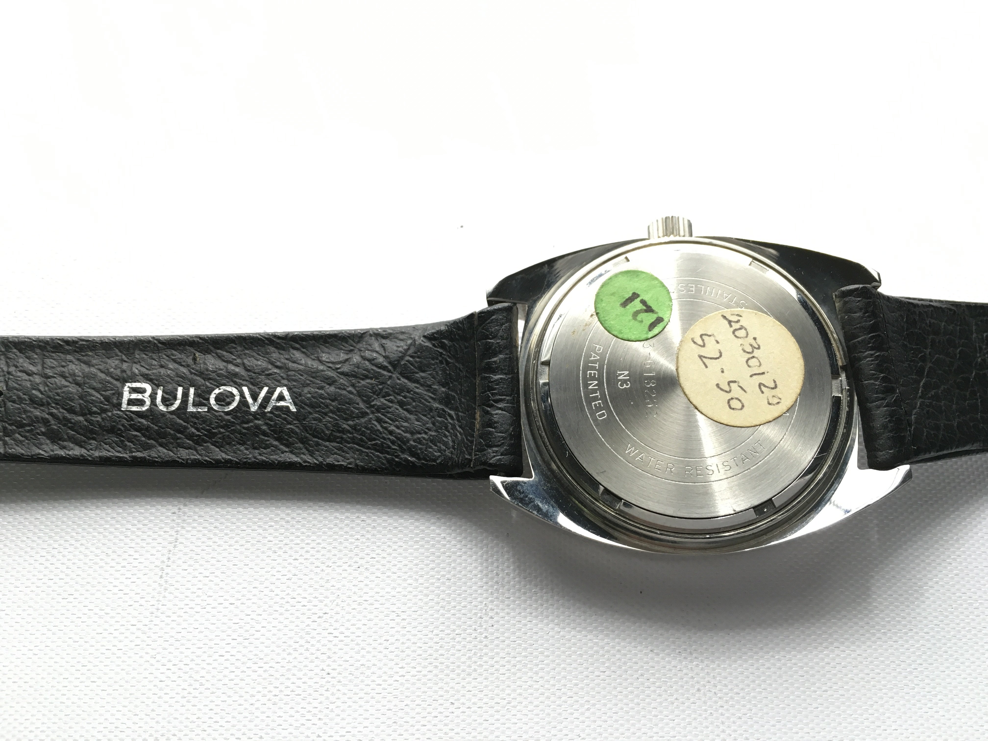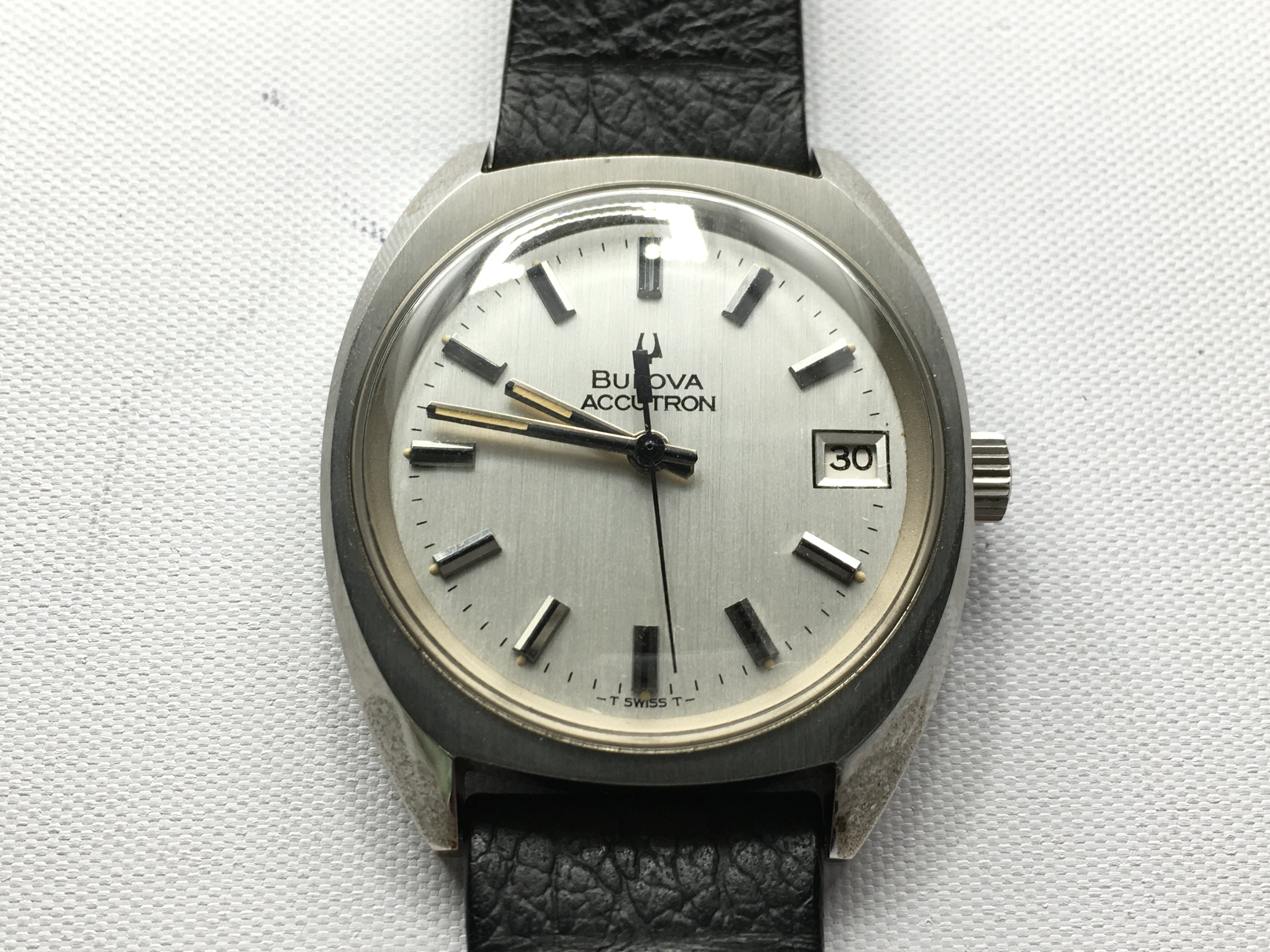 A Bulova accutron wrist watch with date aperture. Not seen working. Postage B