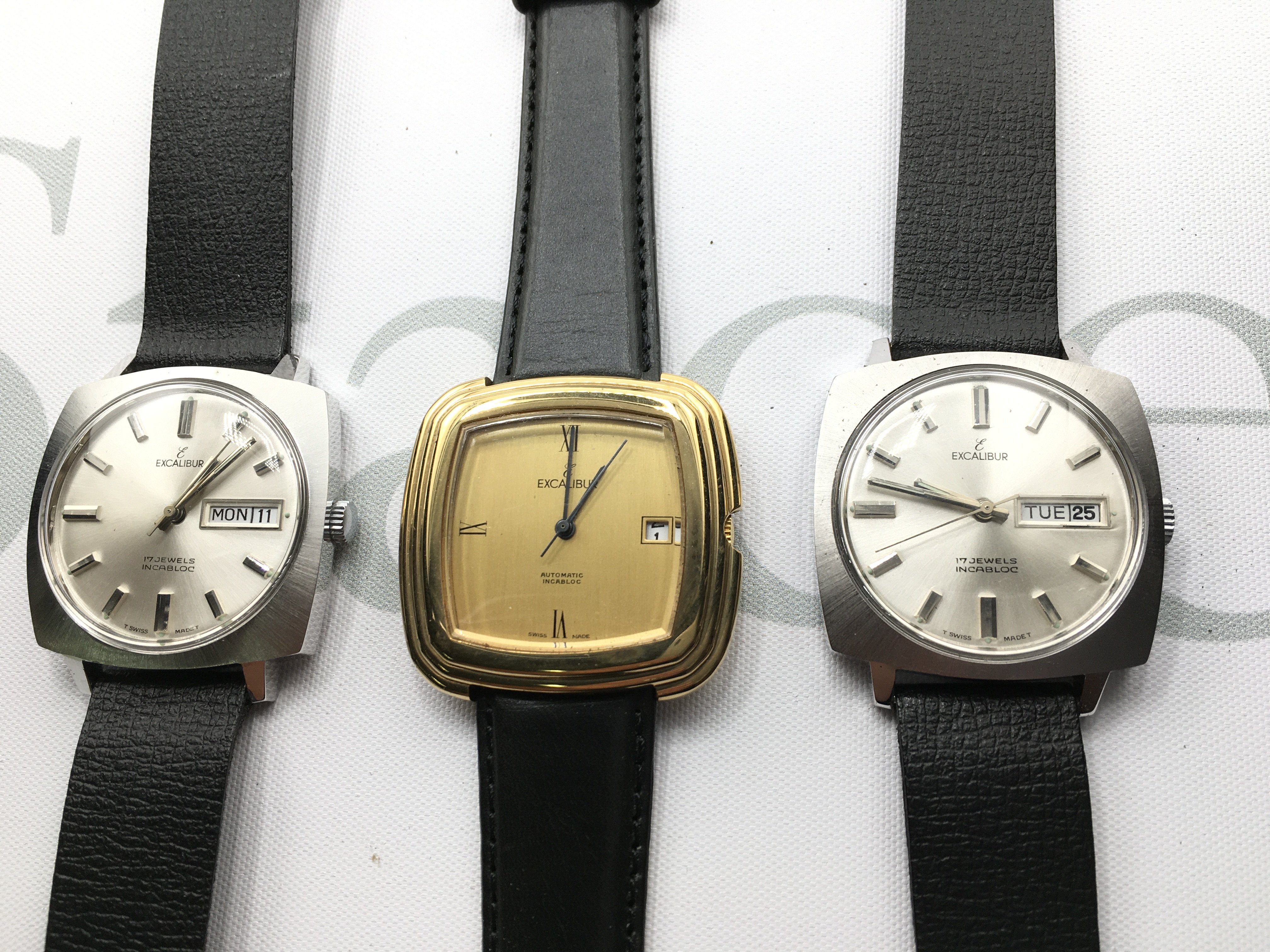 Three Excalibur automatic wrist watches. All in good condition and seen running. Postage B