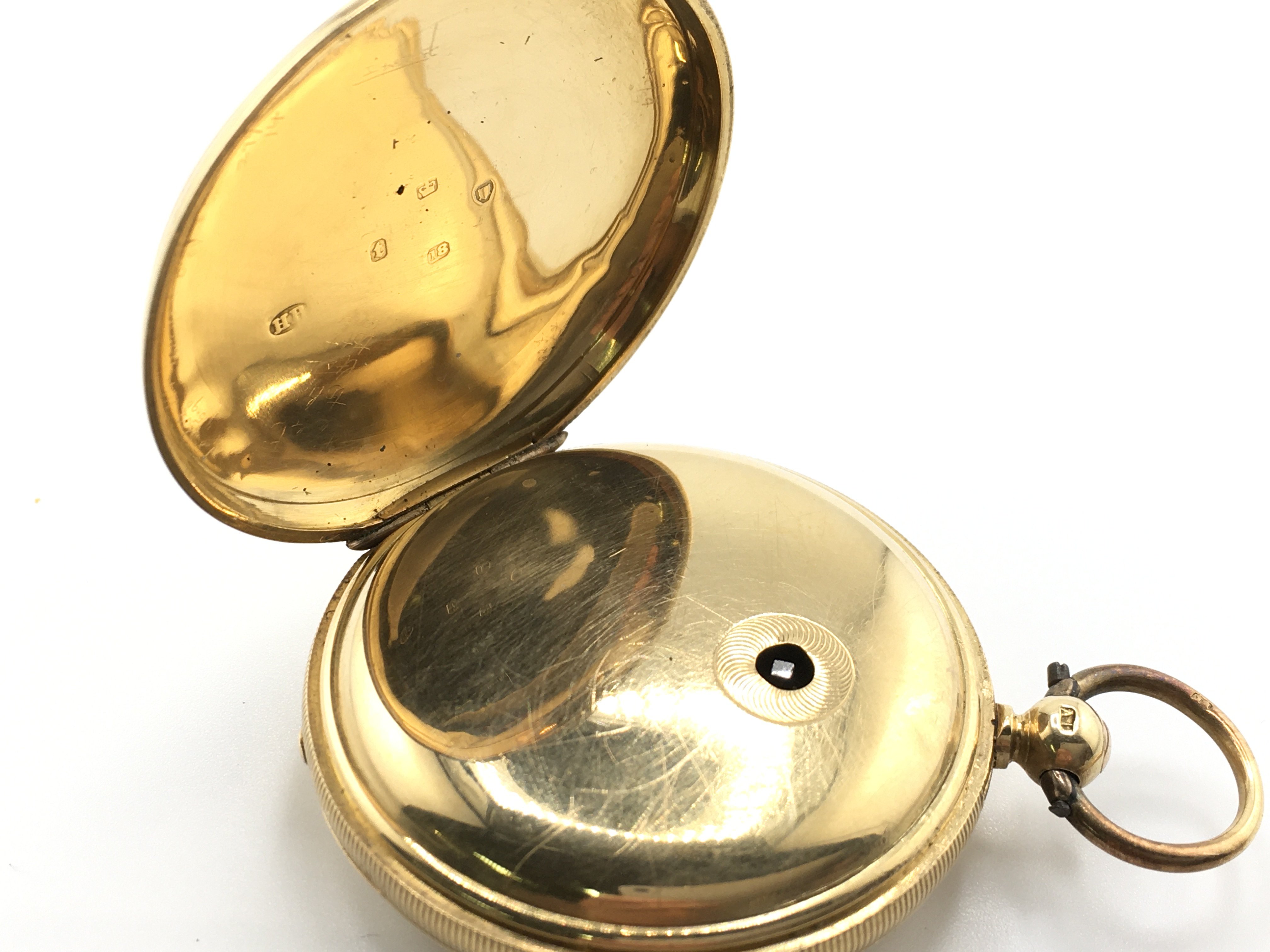 An 18ct gold cased pocket watch, 65.9g. This lot cannot be posted