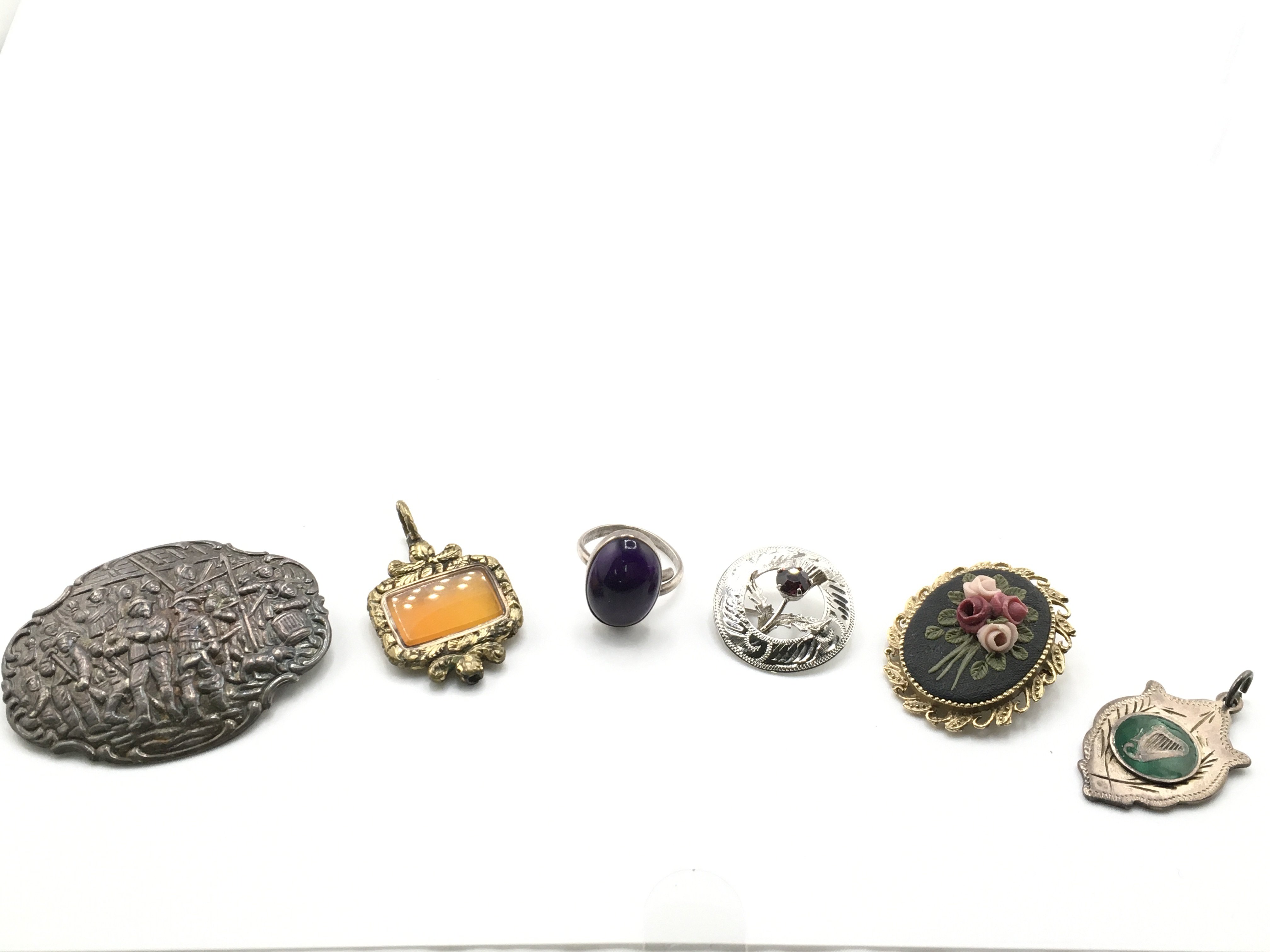 A silver brooch, a ring and other oddments