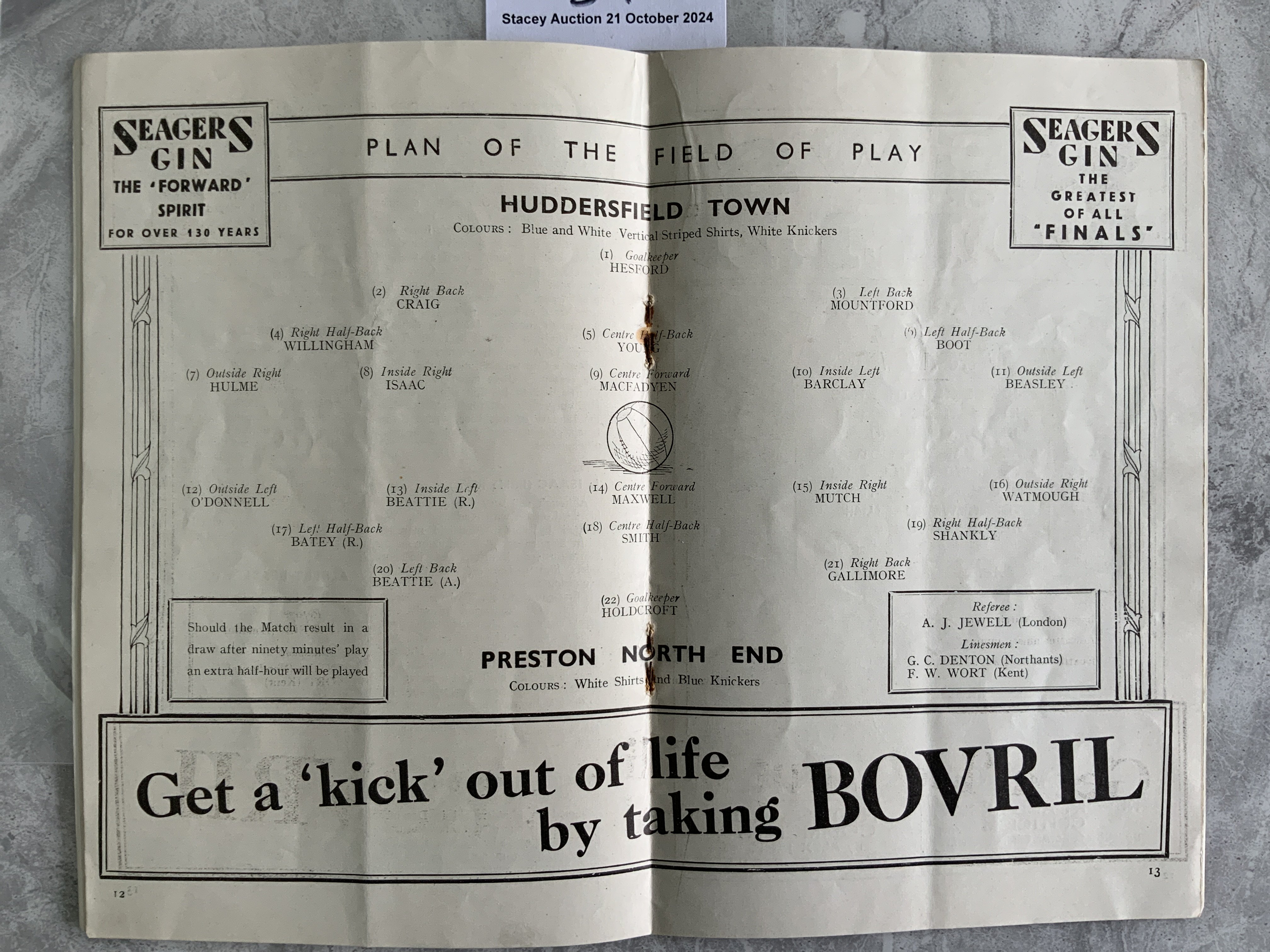 1938 FA Cup Final Football Programme: Huddersfield v Preston in excellent condition with no team changes. Slight rusting of staples but holding firm.