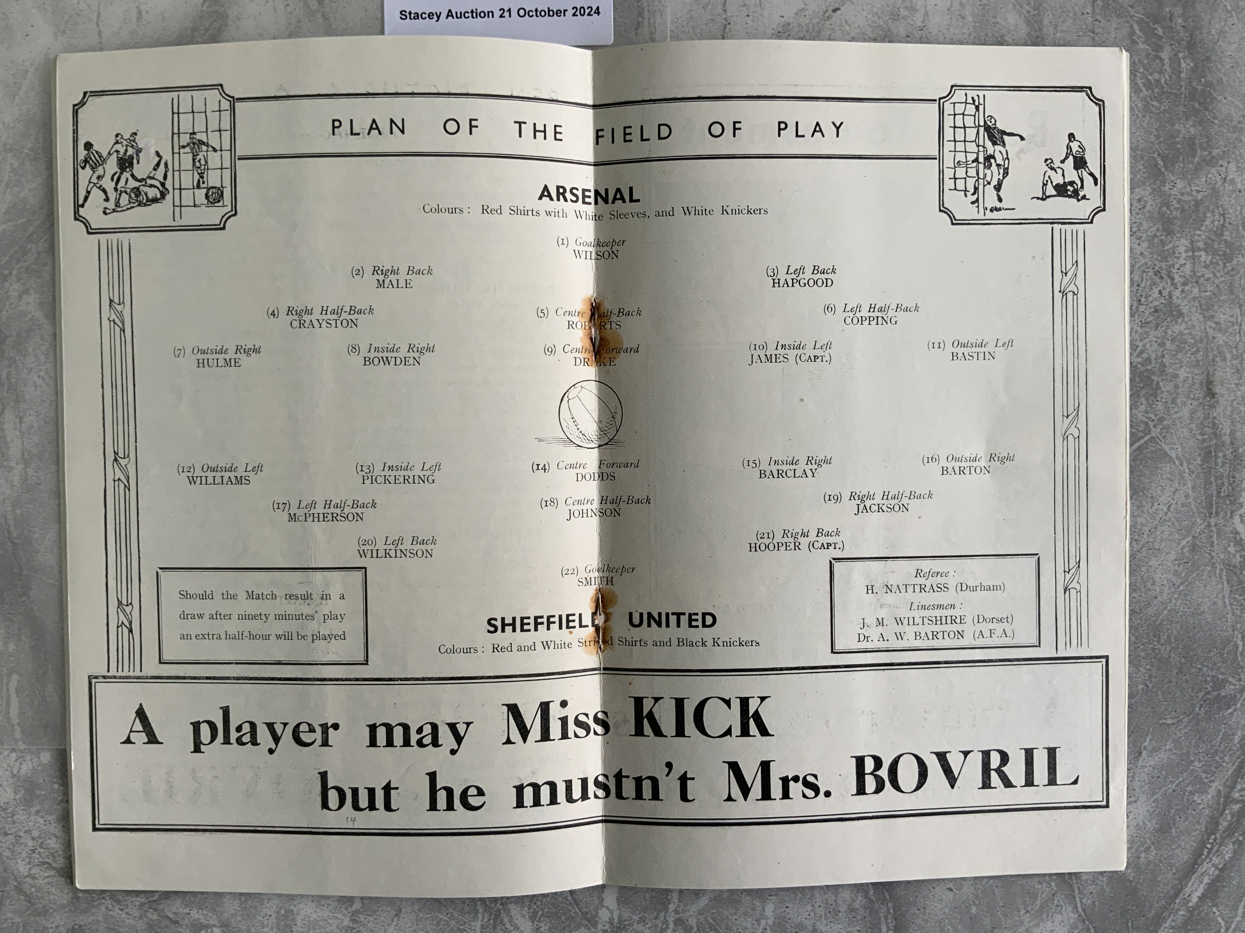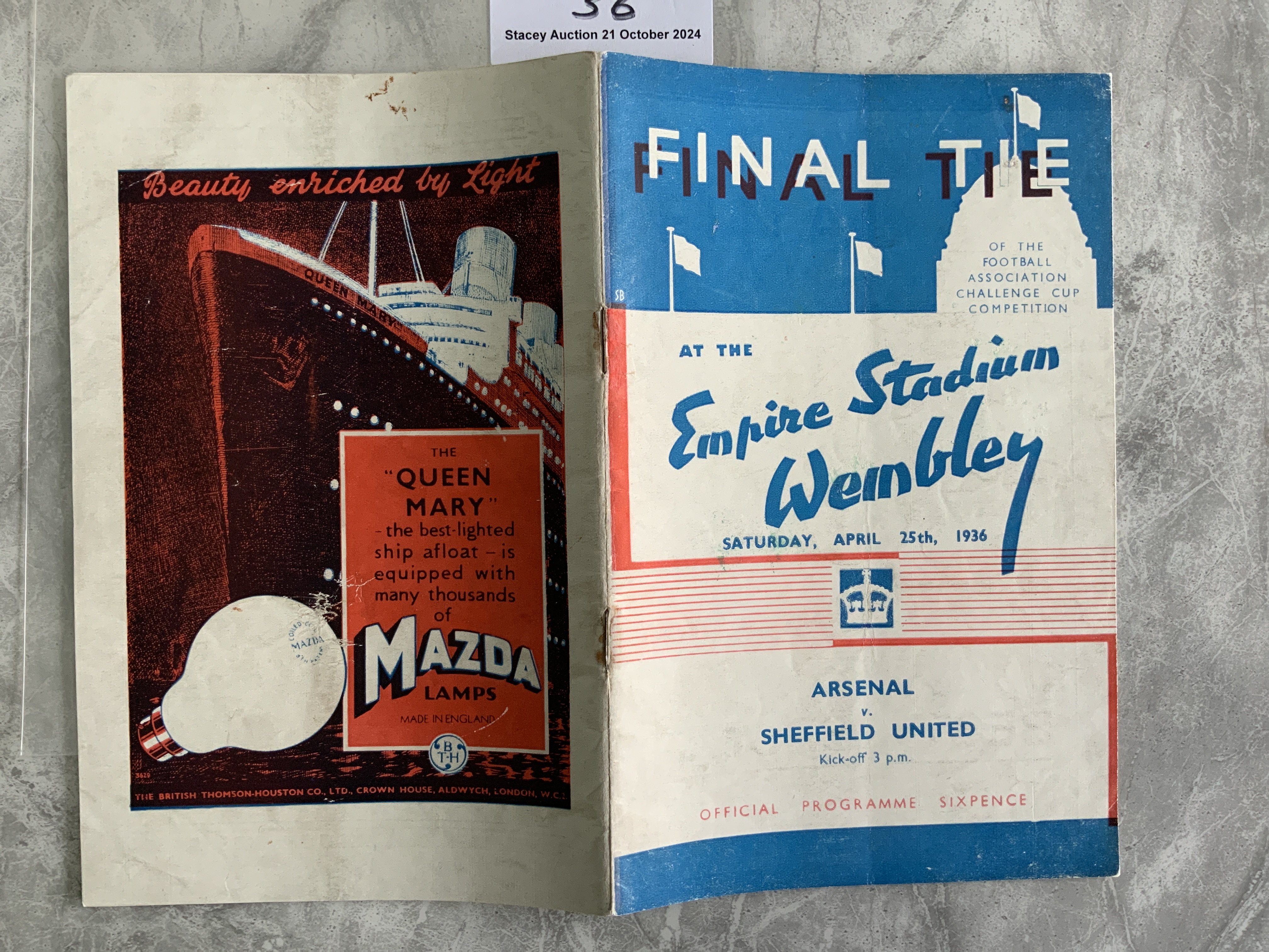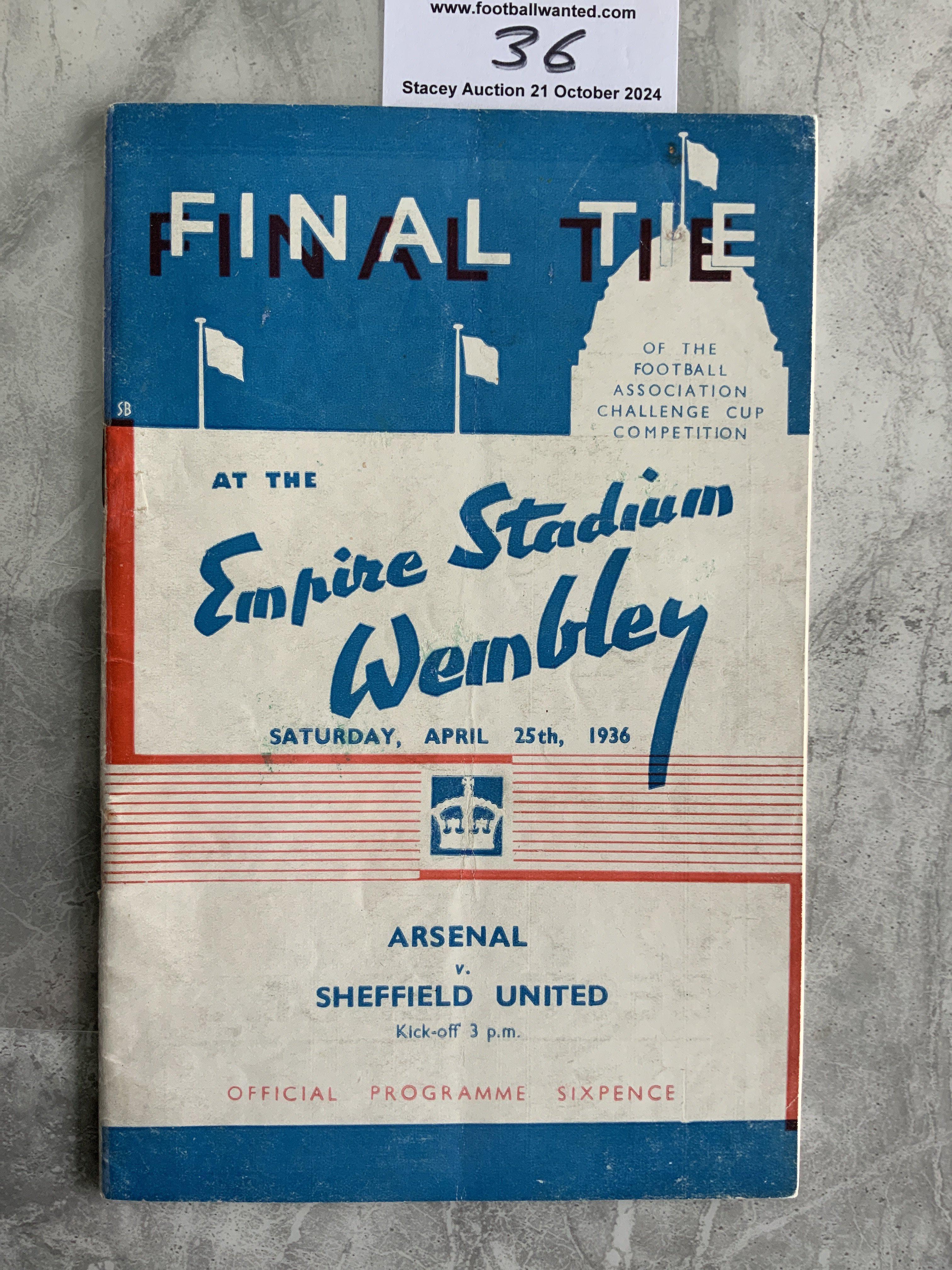 1936 FA Cup Final Football Programme: Arsenal v Sheffield United in excellent condition with no team changes. Staples were rusty so have been professionally replaced.