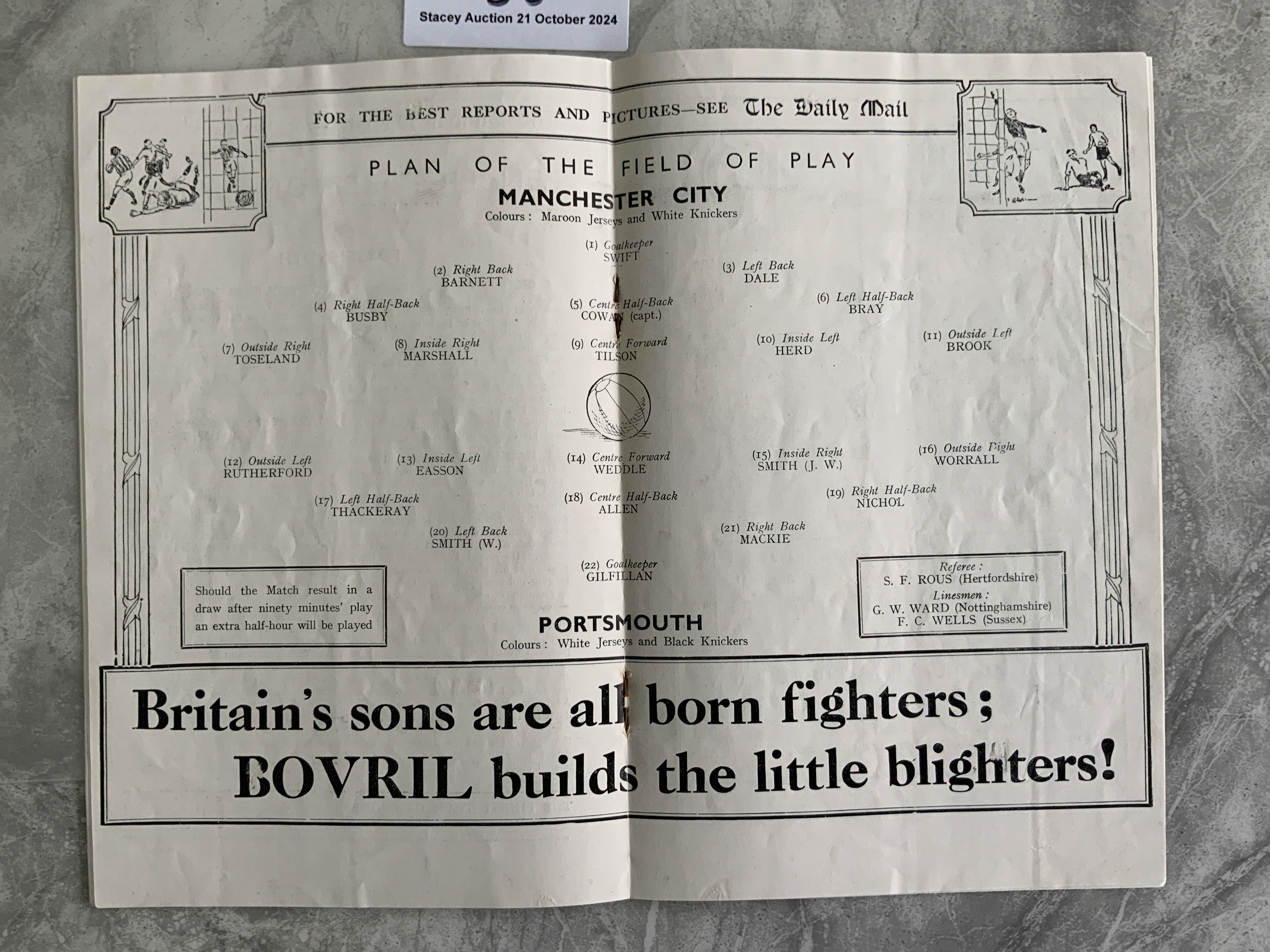 1934 FA Cup Final Football Programme: Portsmouth v Manchester City in excellent condition with no team changes.