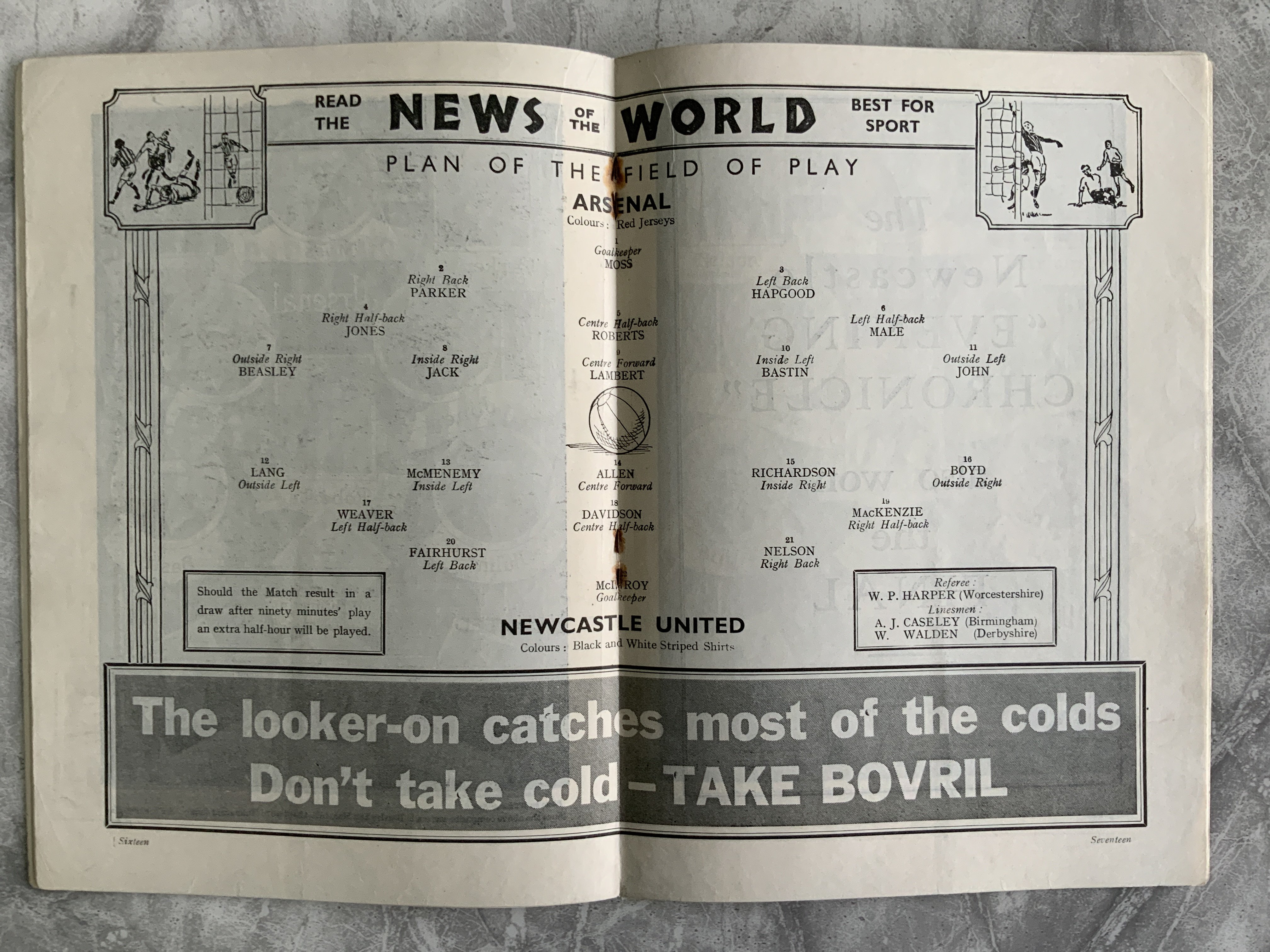 1932 FA Cup Final Football Programme: Arsenal v Newcastle United in excellent condition with no team changes. Staples are slightly rusty but holding firm.