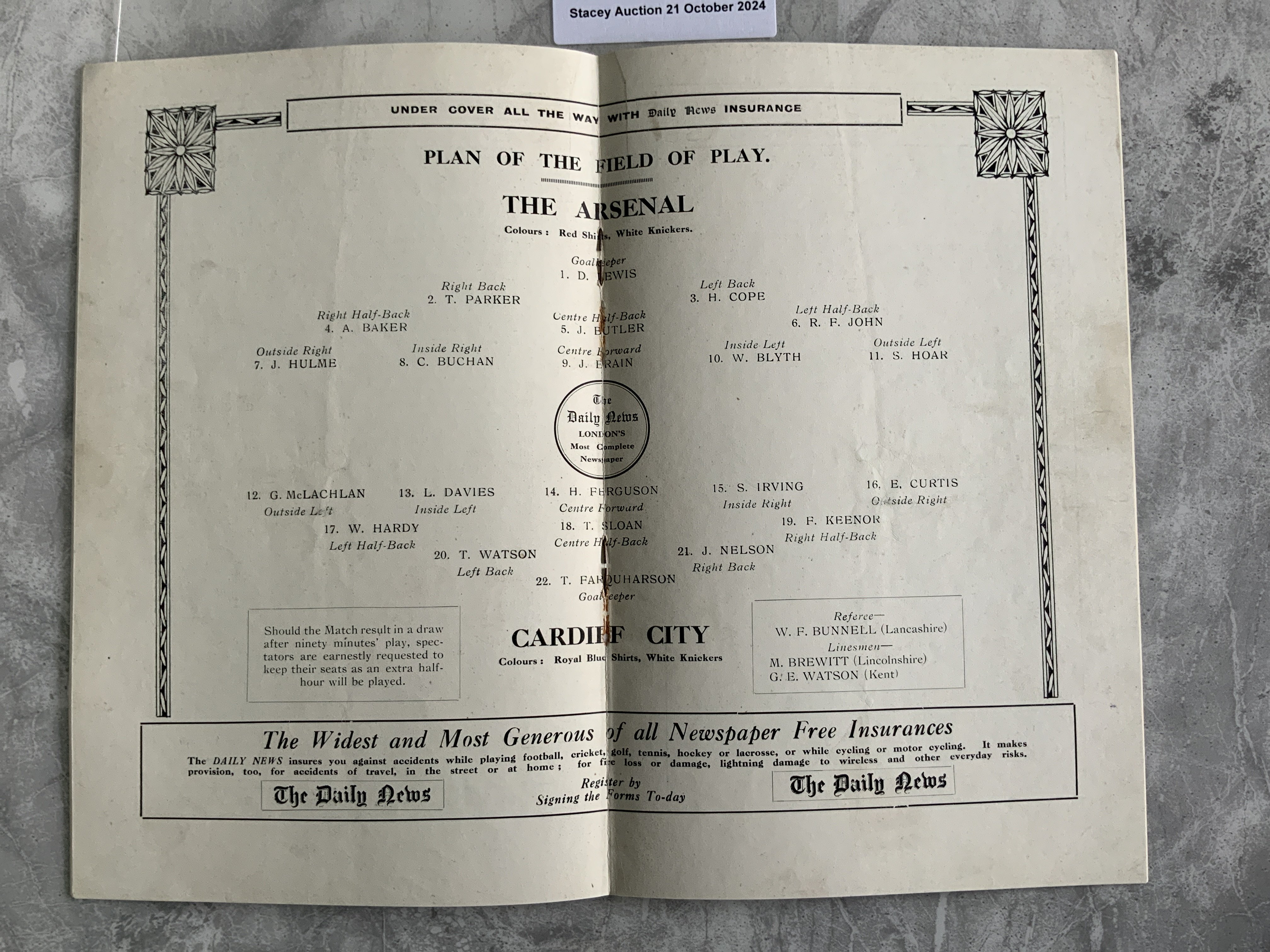 1927 FA Cup Final Football Programme: Arsenal v Cardiff City in excellent condition with no team changes. Please note although you will not be able to tell a new cover has been made and attached professionally.