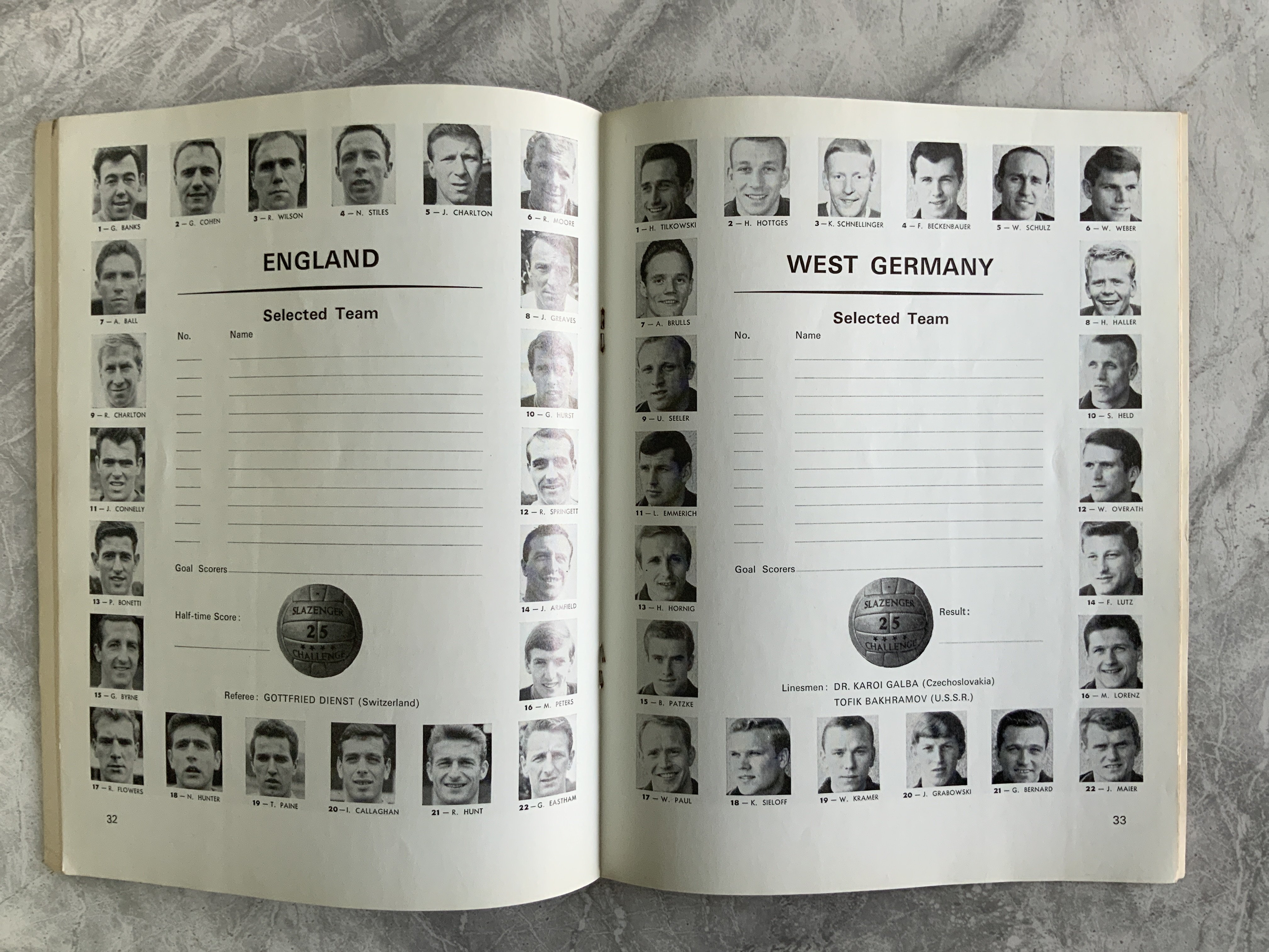 1966 World Cup Final Football Programme: Original England v West Germany programme in excellent condition. C/W tournament guide with tear both unwritten. Ticket information booklet included. (3)