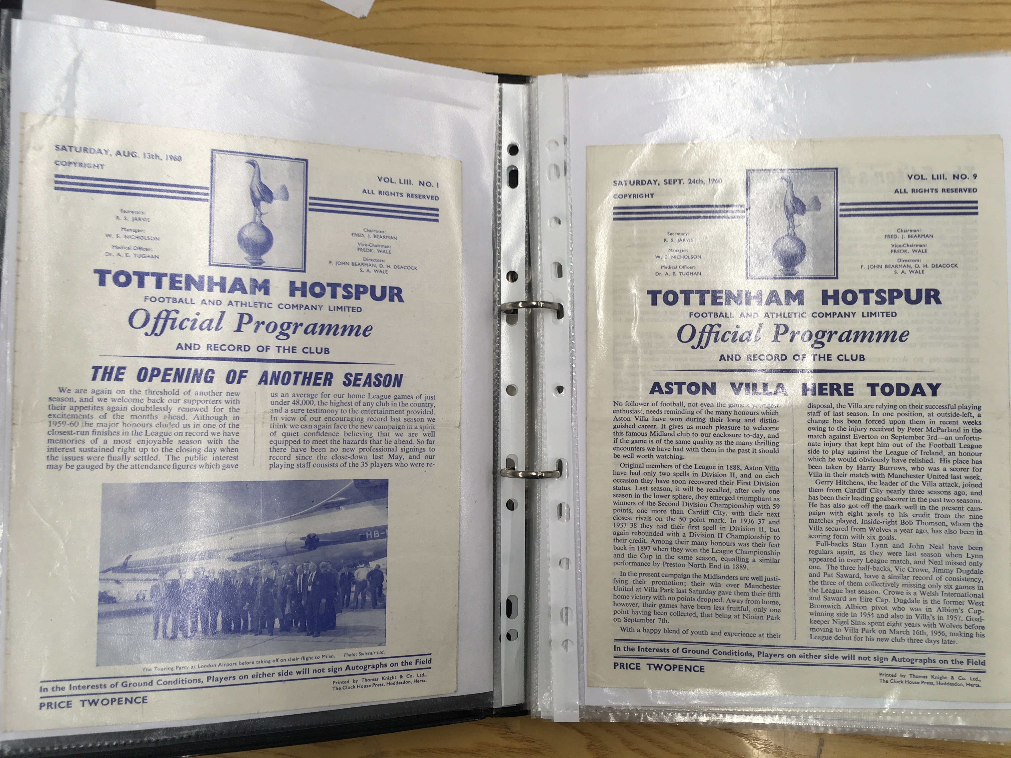 Tottenham Late 1950s Football Programmes: Home and away to include 22 from the double season and 38 from the 50s. Full list online. Very good. (60)