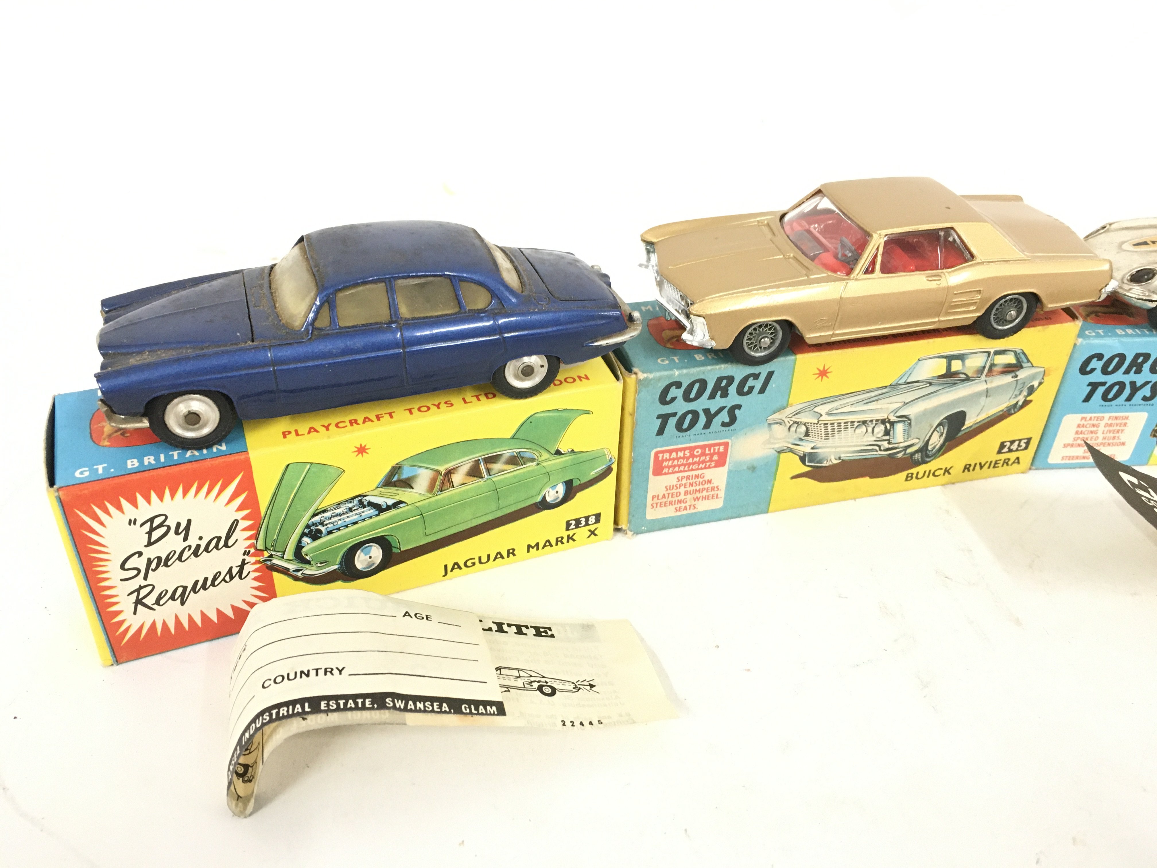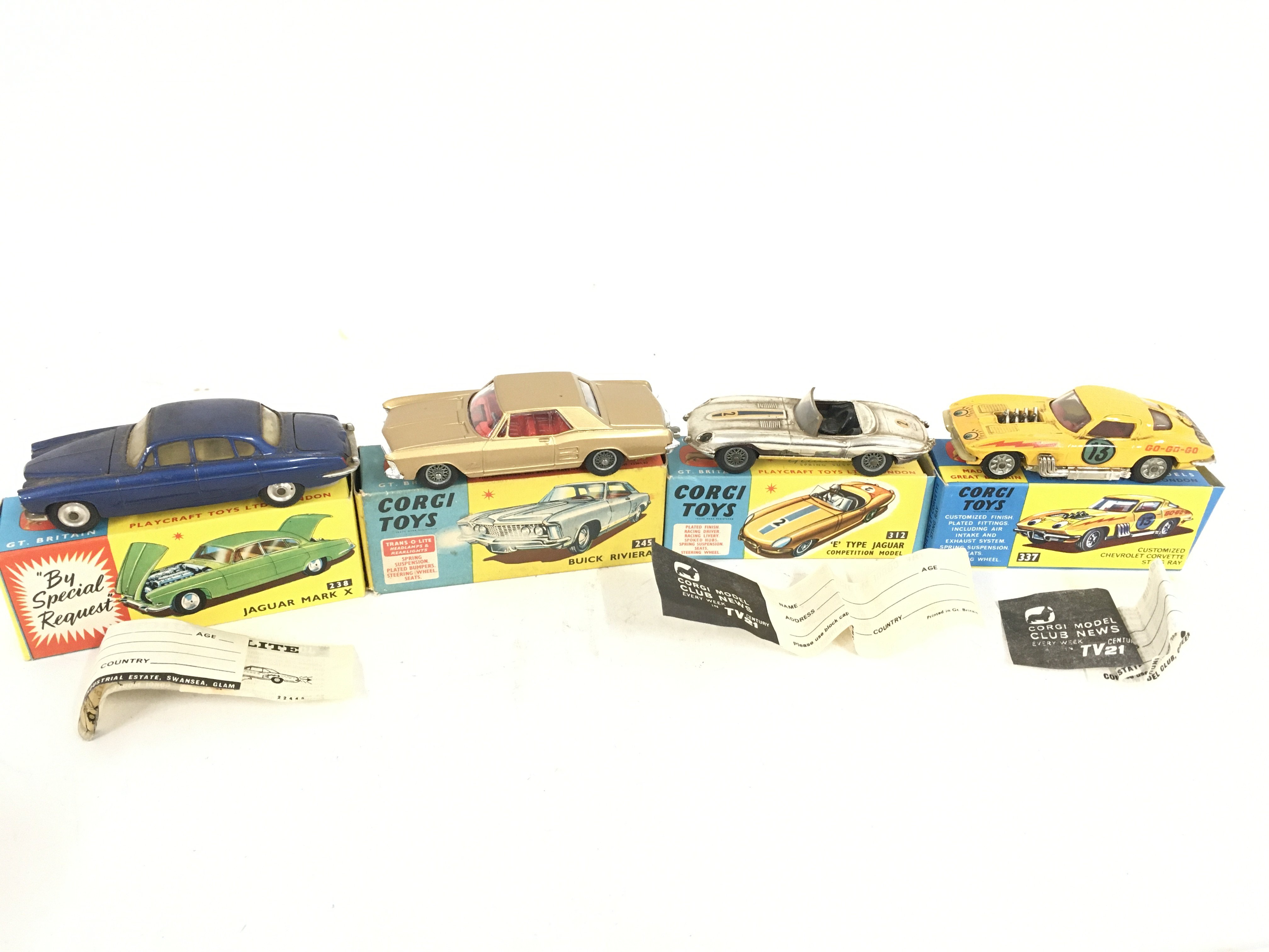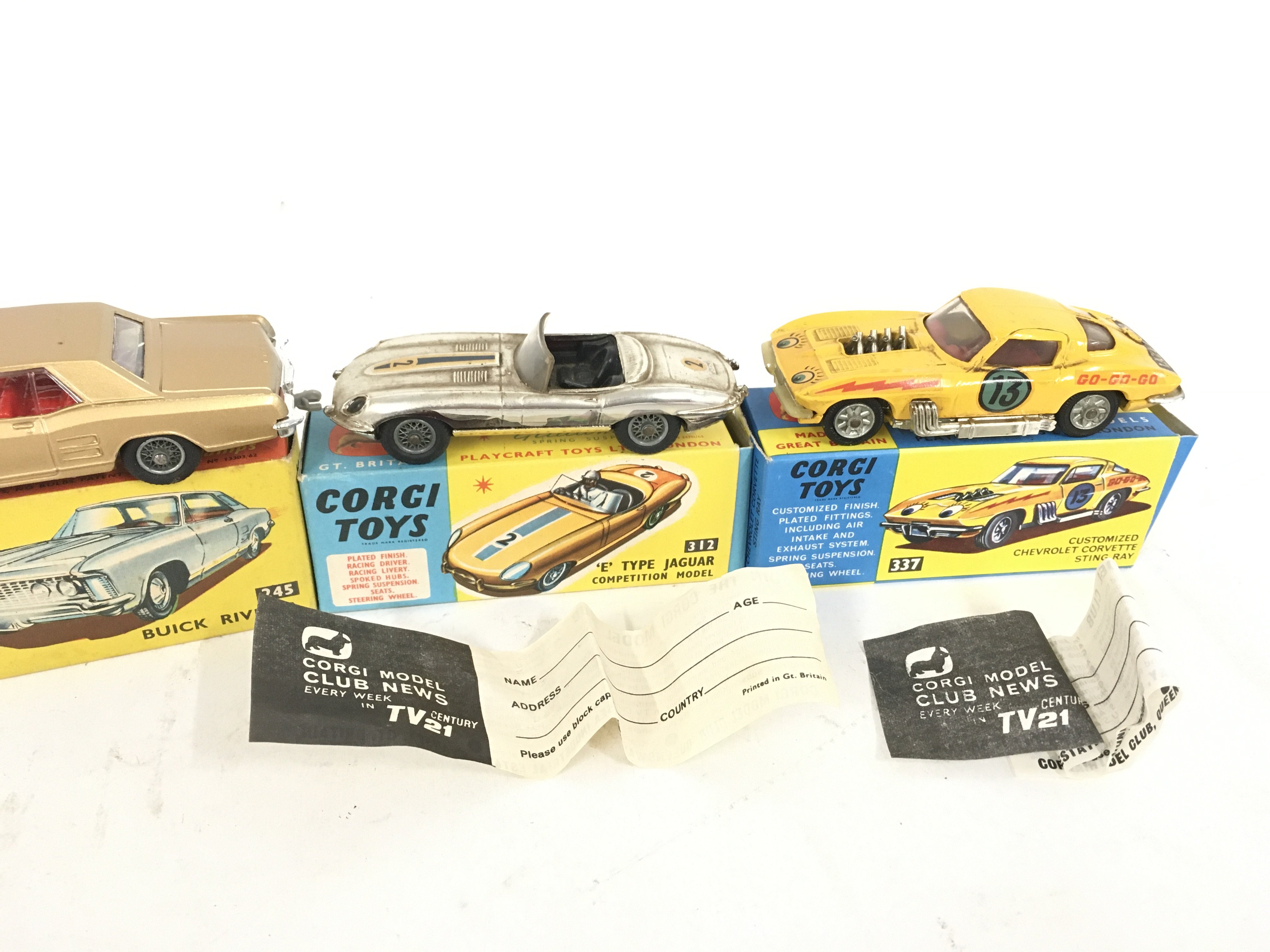 4 X Boxed Corgi Vehicles including a Jaguar Mark X #238. A Buick Ribera #245. A E Type Jaguar #312. And a customised Chevrolet Corvette Sting Ray #337.