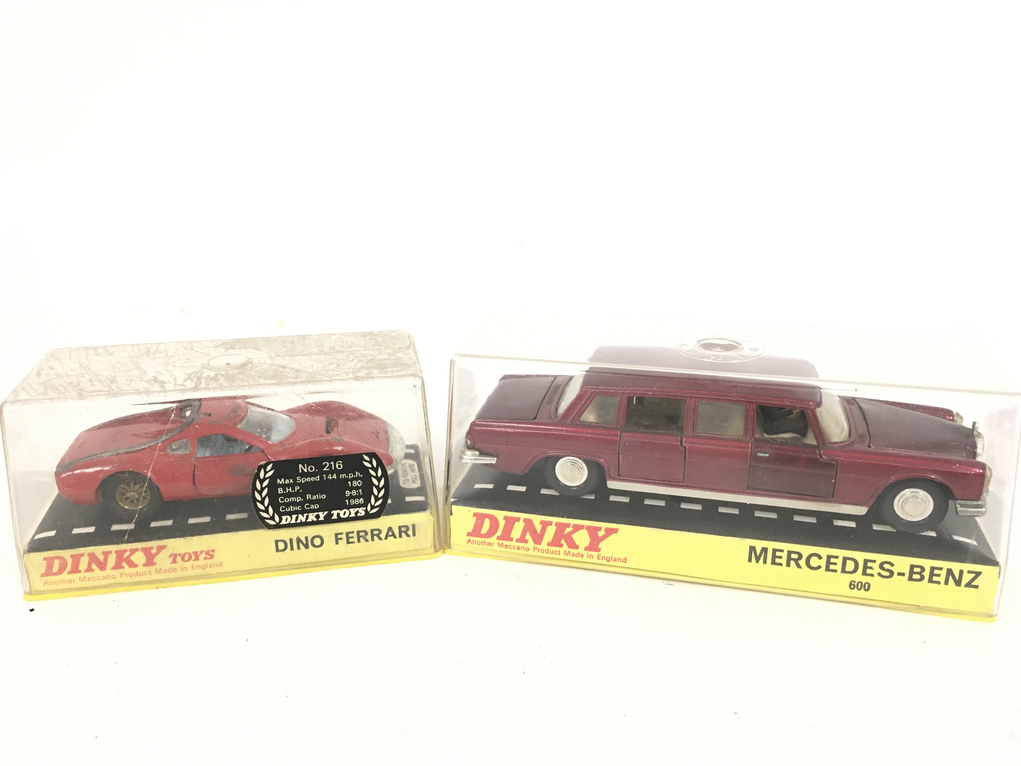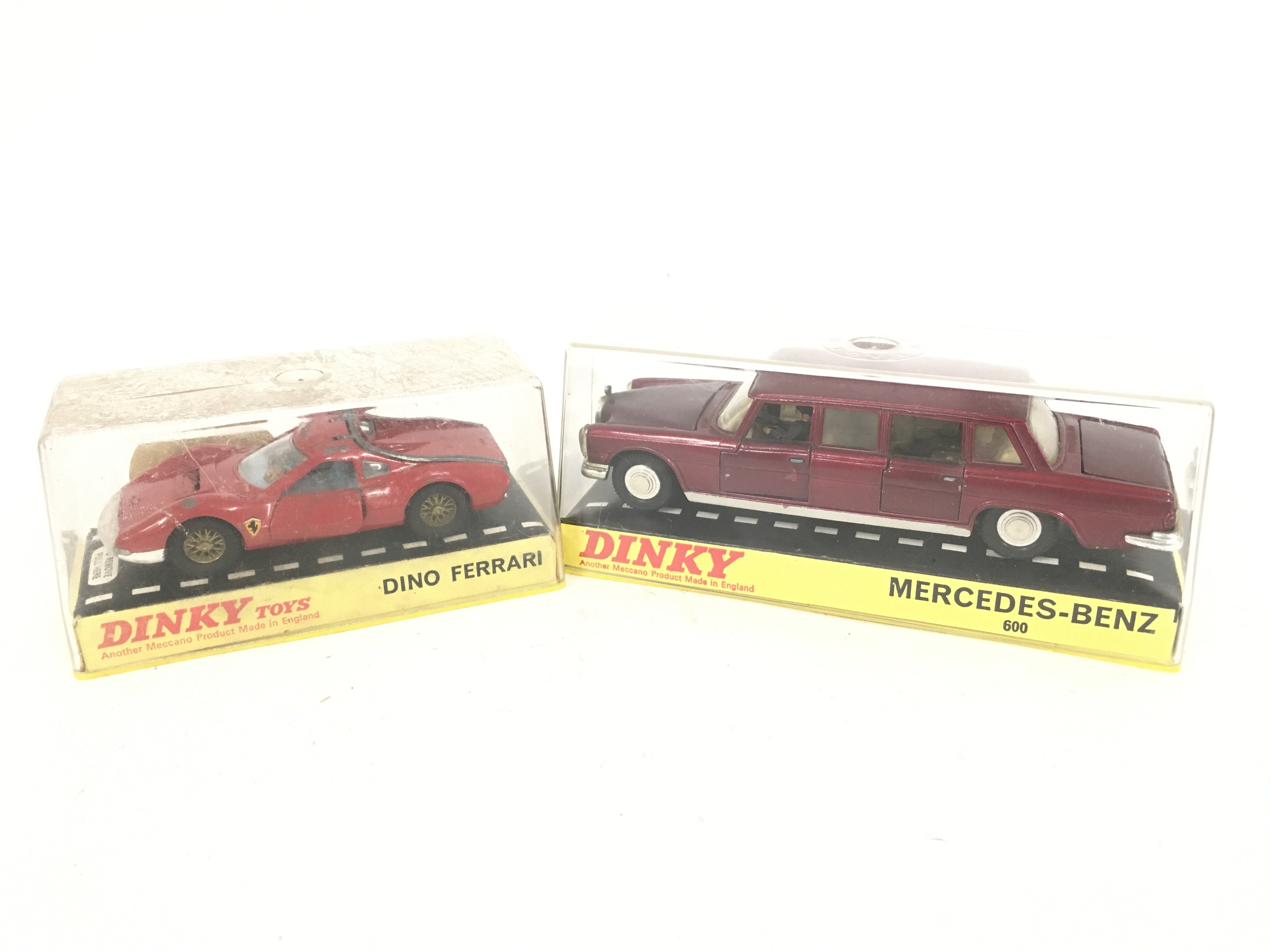 A Boxed Dinky Dino Ferrari #216 and a Mercedes-Benz 600 #128.