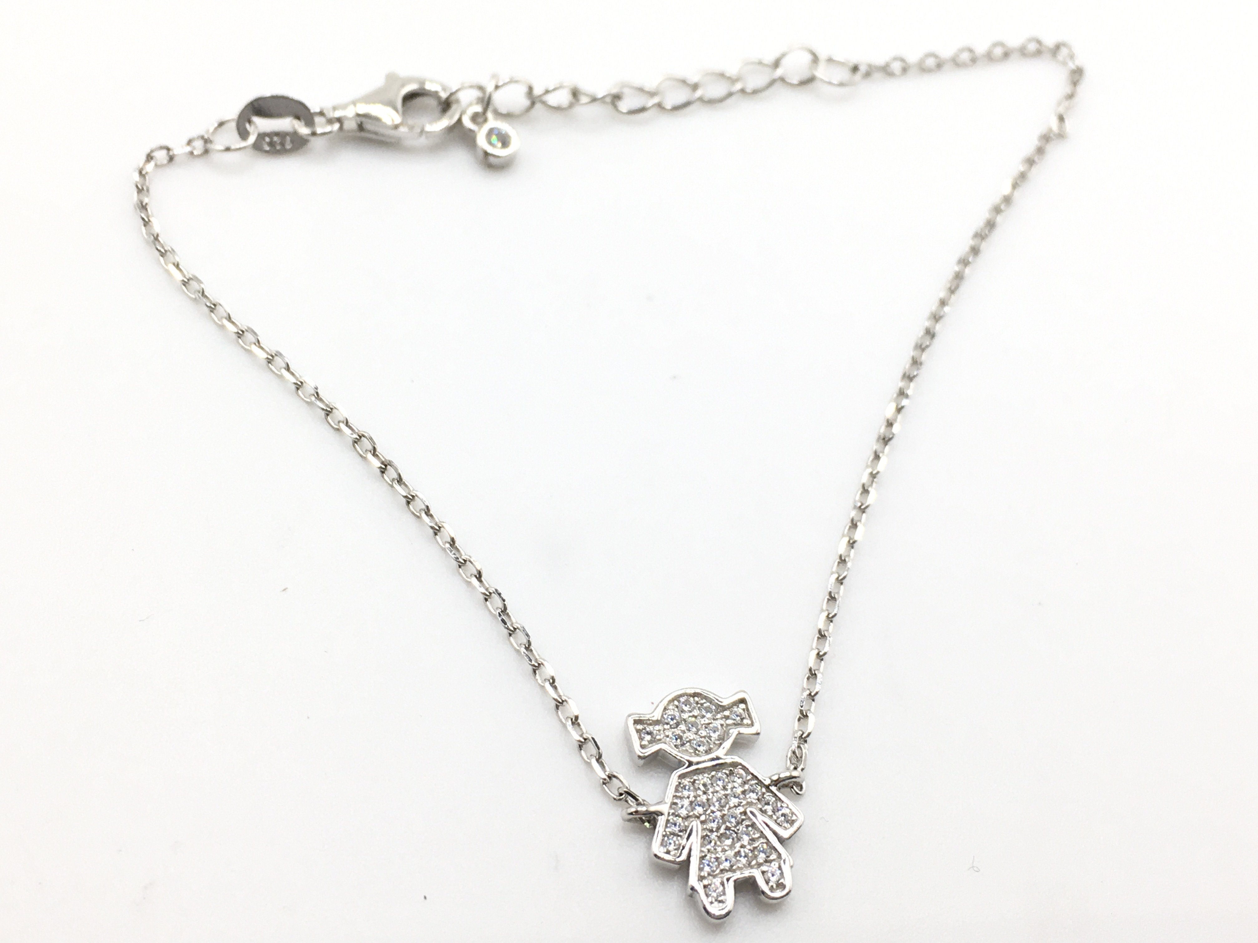 A silver bracelet with white Cubic Zirconia set dolly charm and spectacle set white CZ. Postage category a
