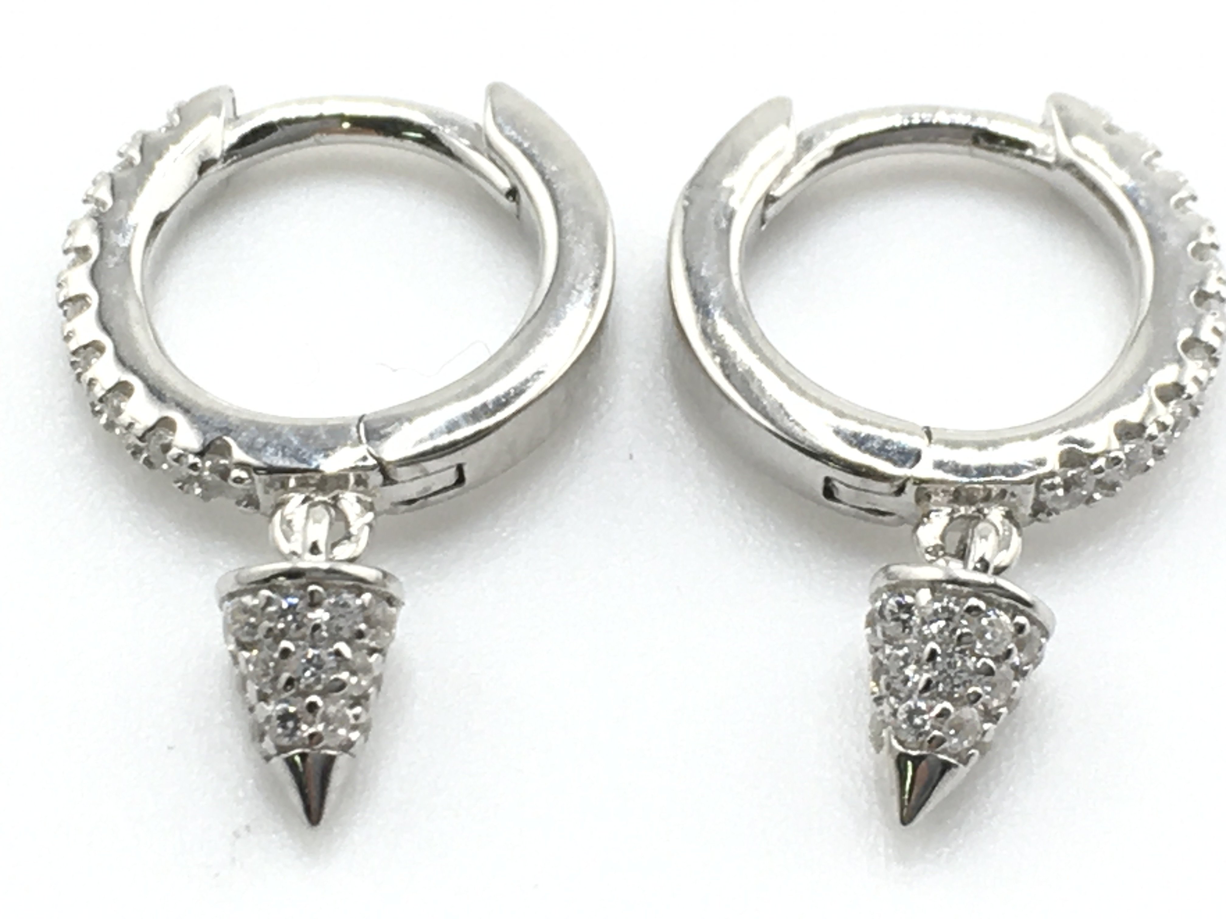 A pair of silver hoops set with cubic zirconia. 2.4g Postage category a