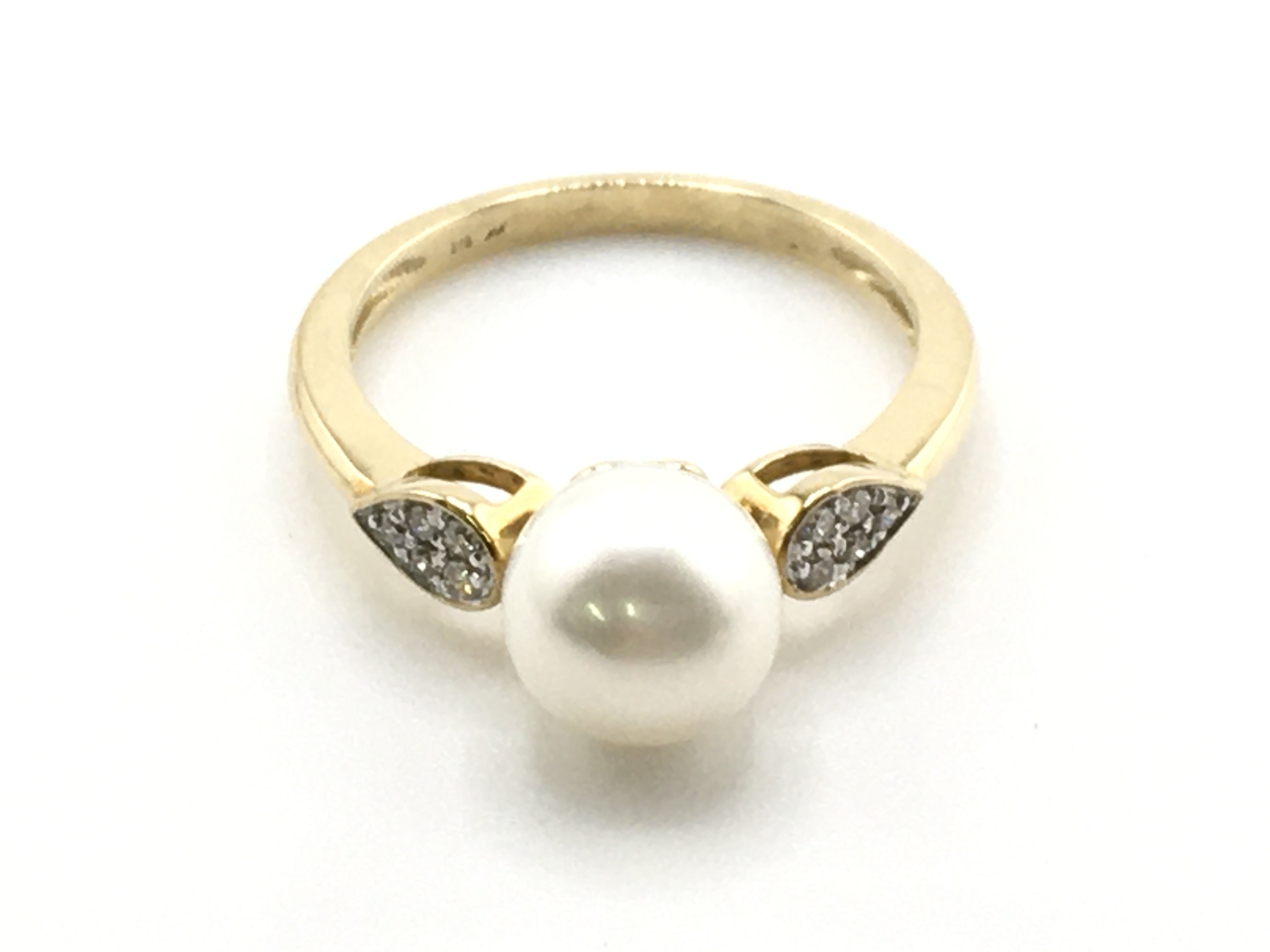 A 9 carat yellow gold cultured pearl and multi-set diamond ring, R/C diamonds 0.10ct. Size N. Ring weight 2.6ct. Postage category A