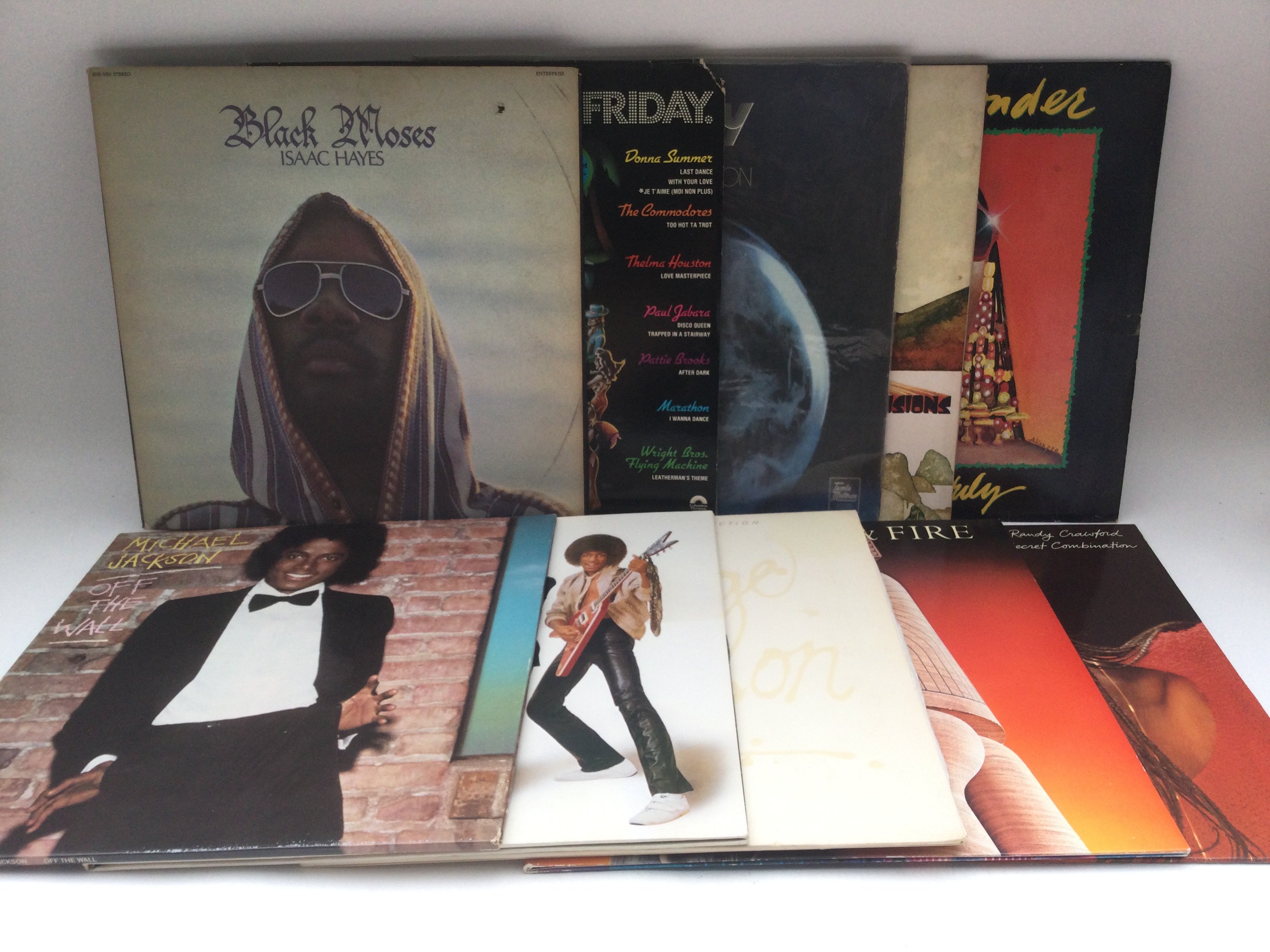 Ten funk and soul LPs by various artists including Isaac Hayes, Stevie Wonder, Smokey Robinson and others.