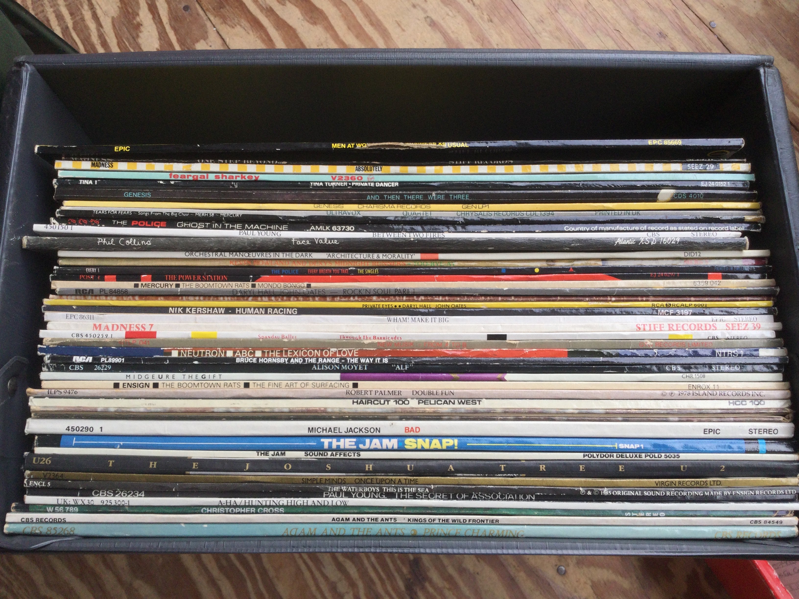 Two record cases of LPs snd 12" singles by various artists including The Jam, U2, The Police, Madness and many more.
