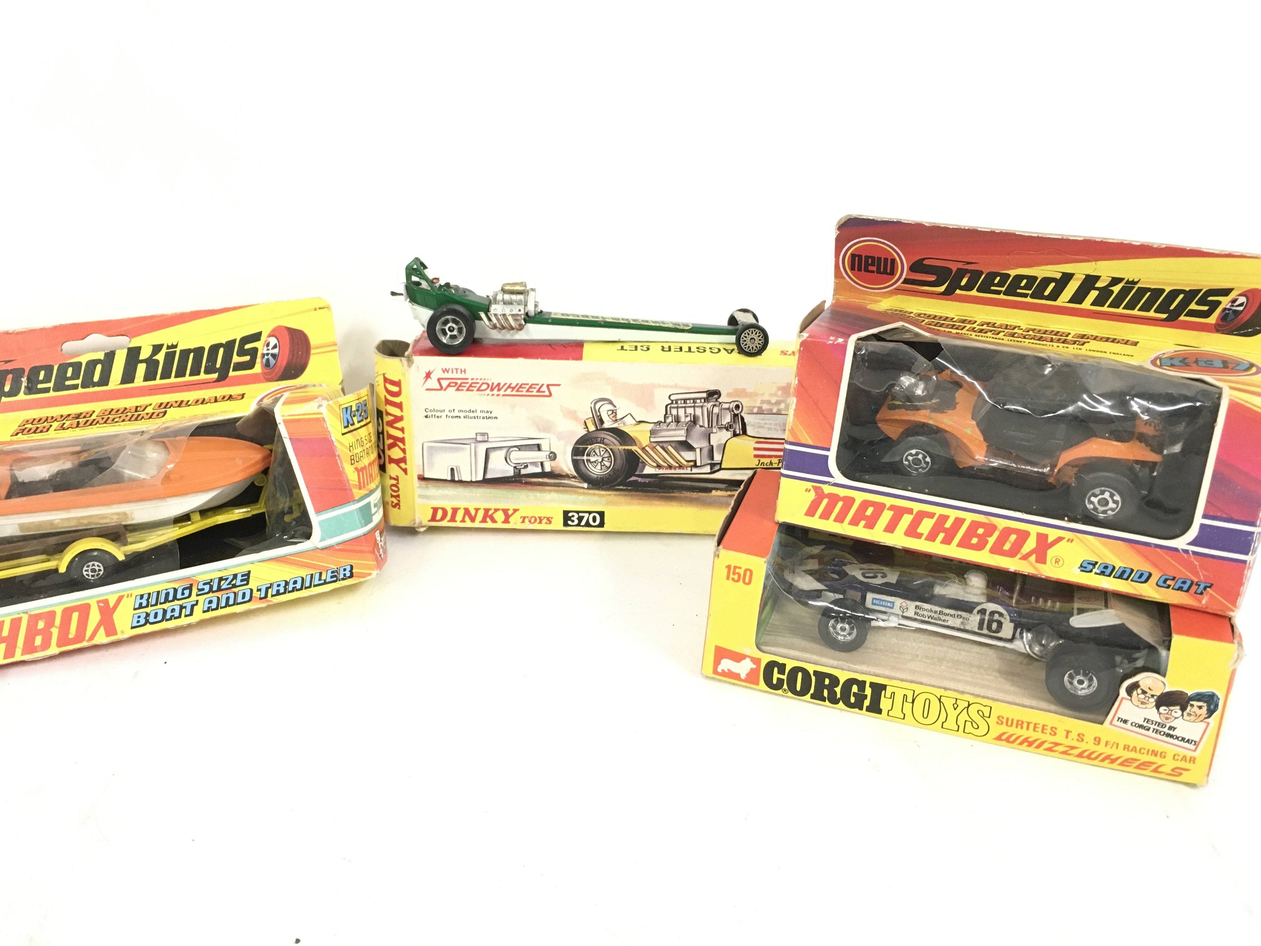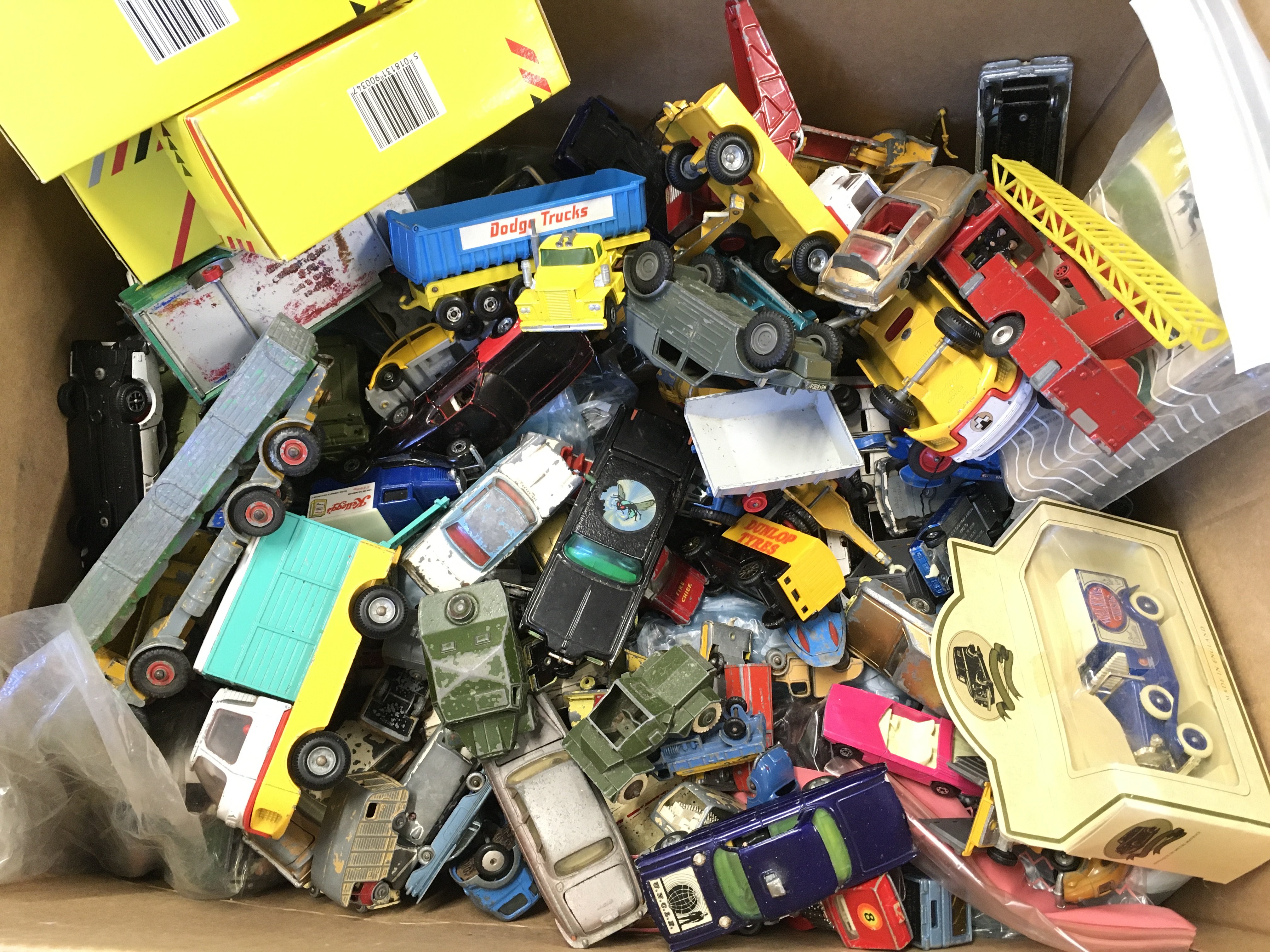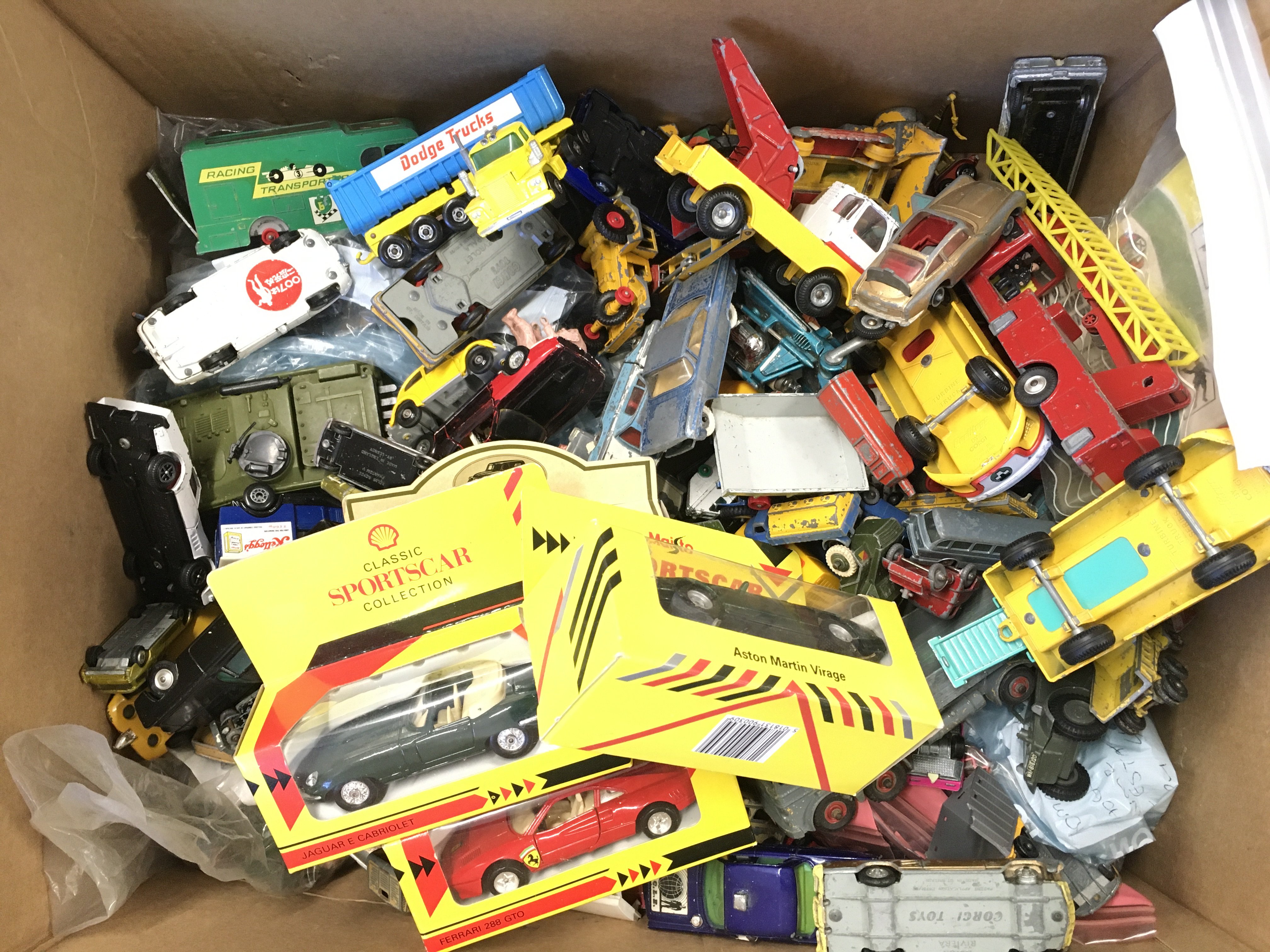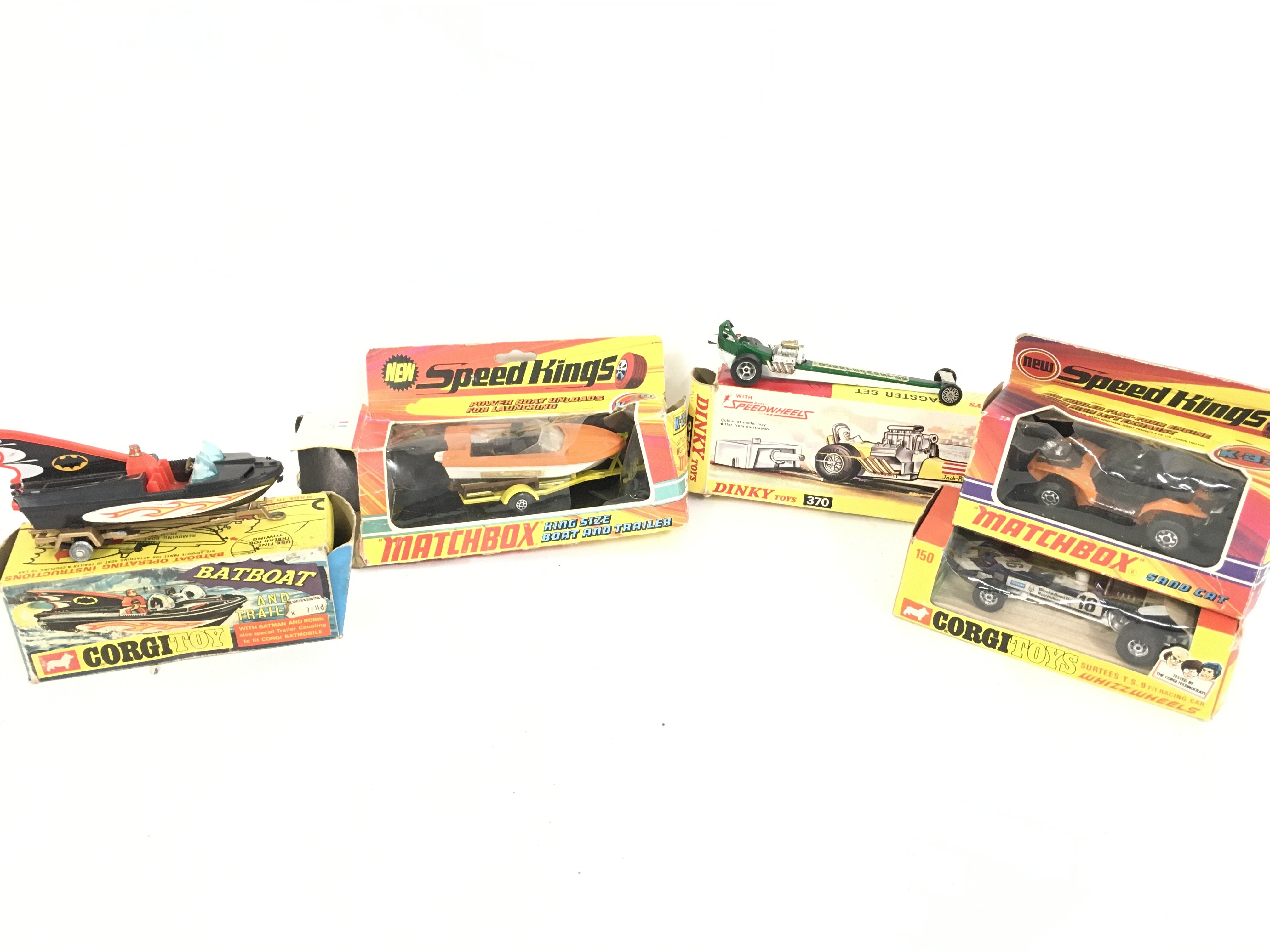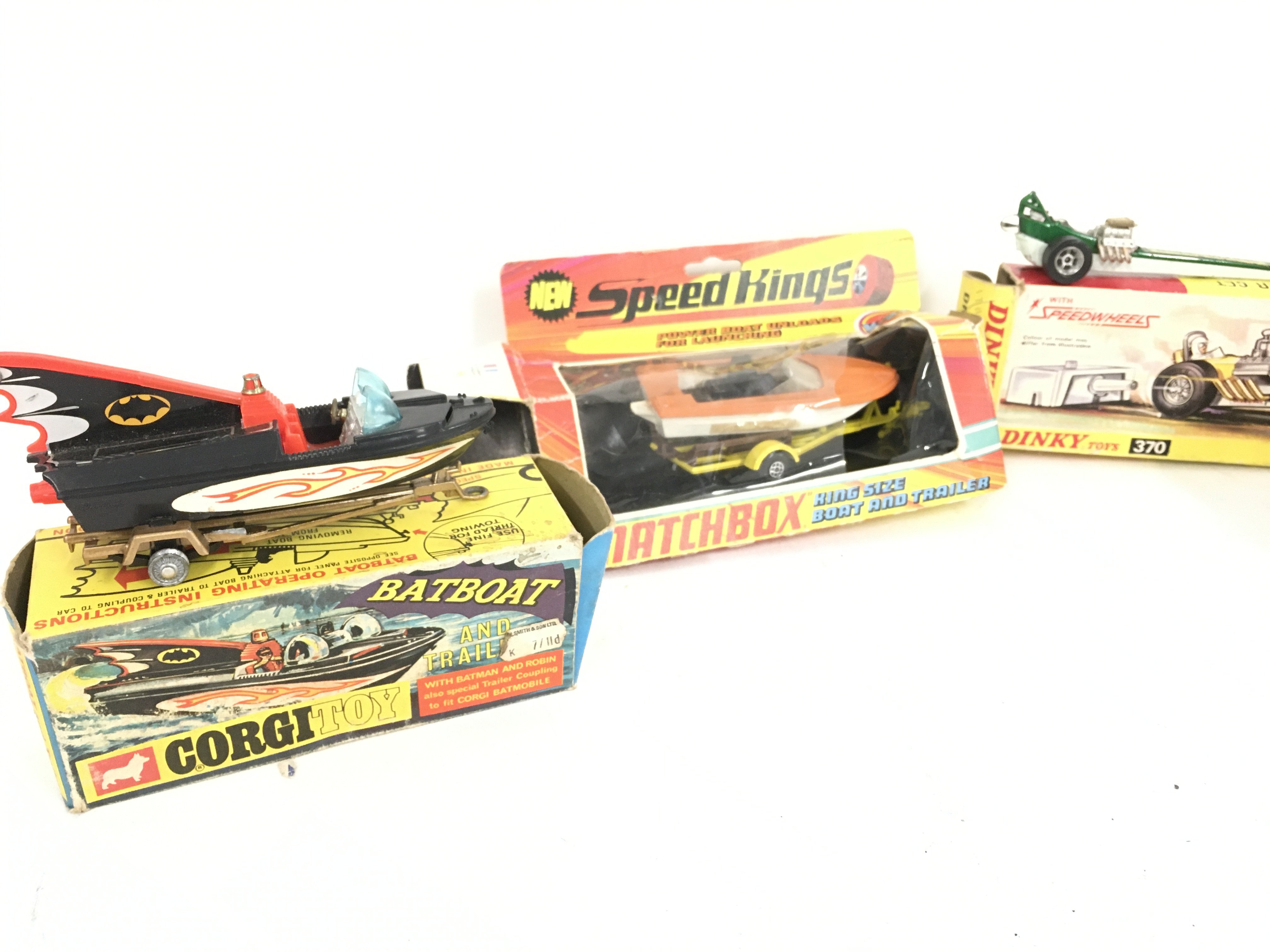 A Box Containing Playworn and Boxed Toys including a Boxed Corgi Batboat.