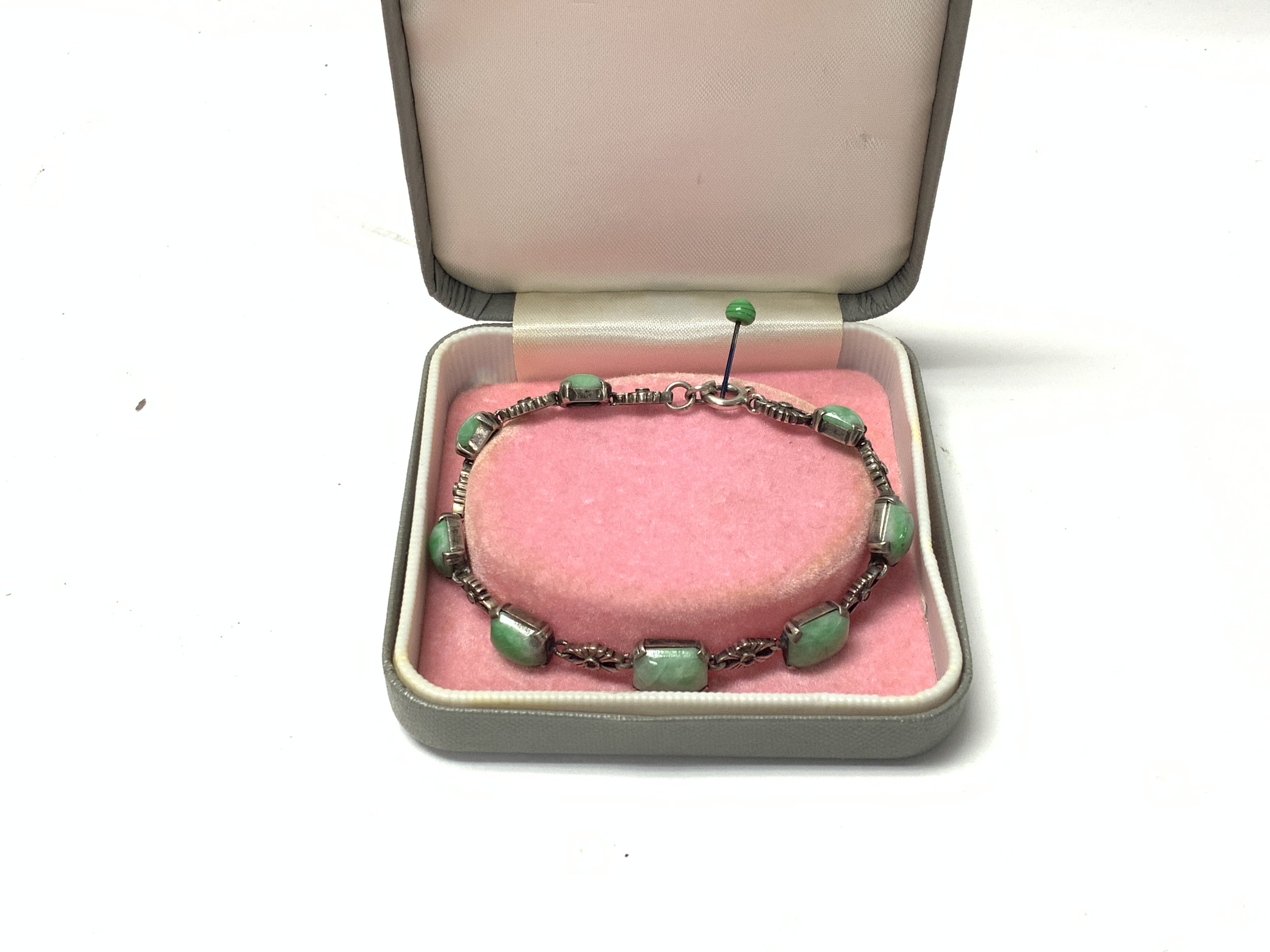 A ladies jade and silver bracelet.Condition Report