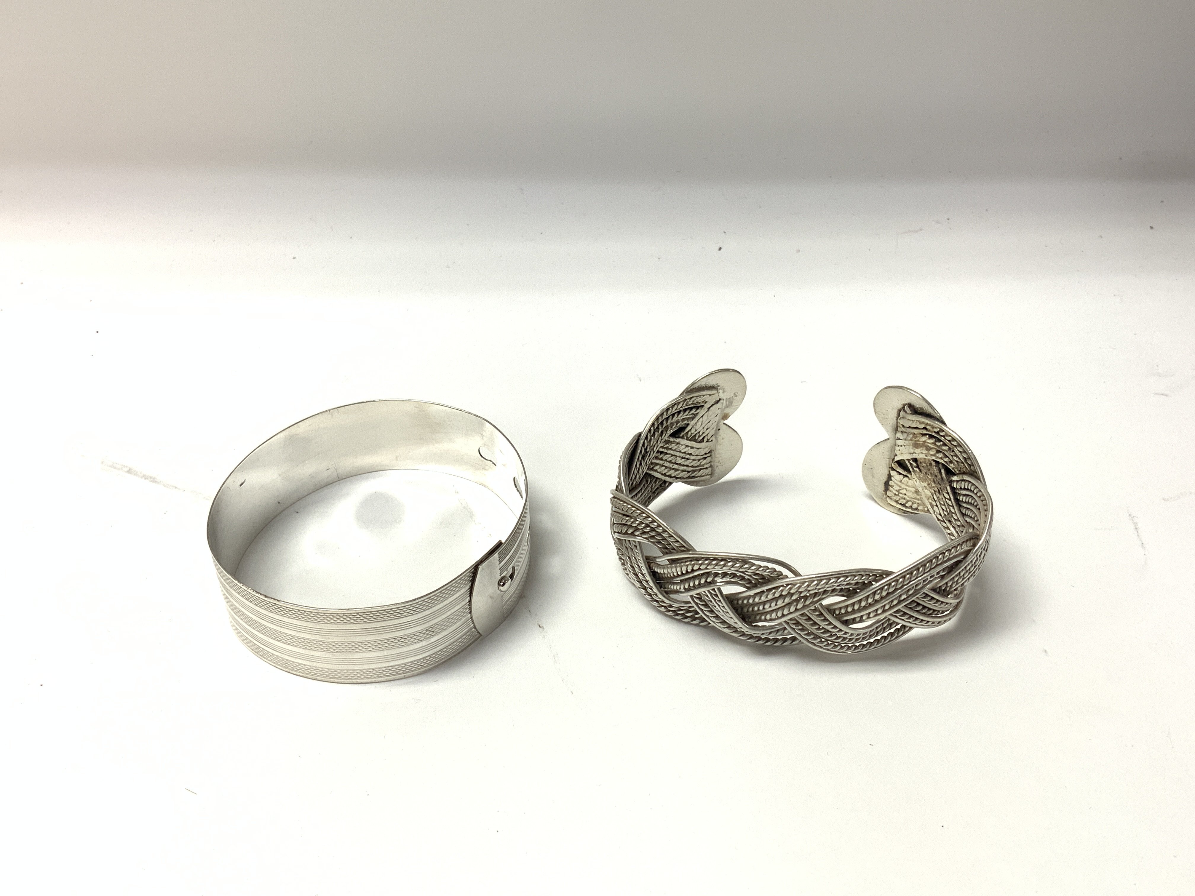 Two silver tested bangle approx 77.20 grams.Condition Report