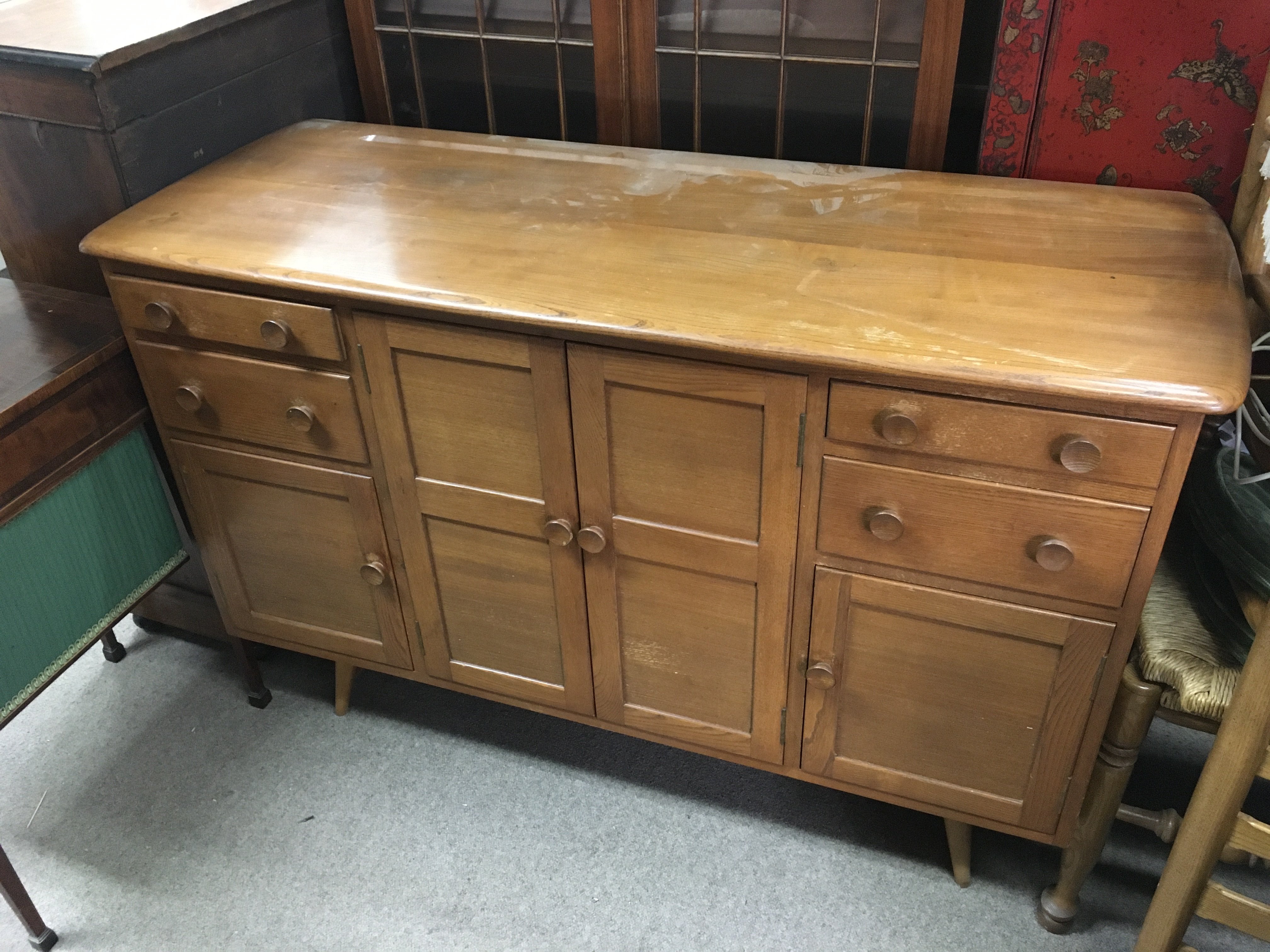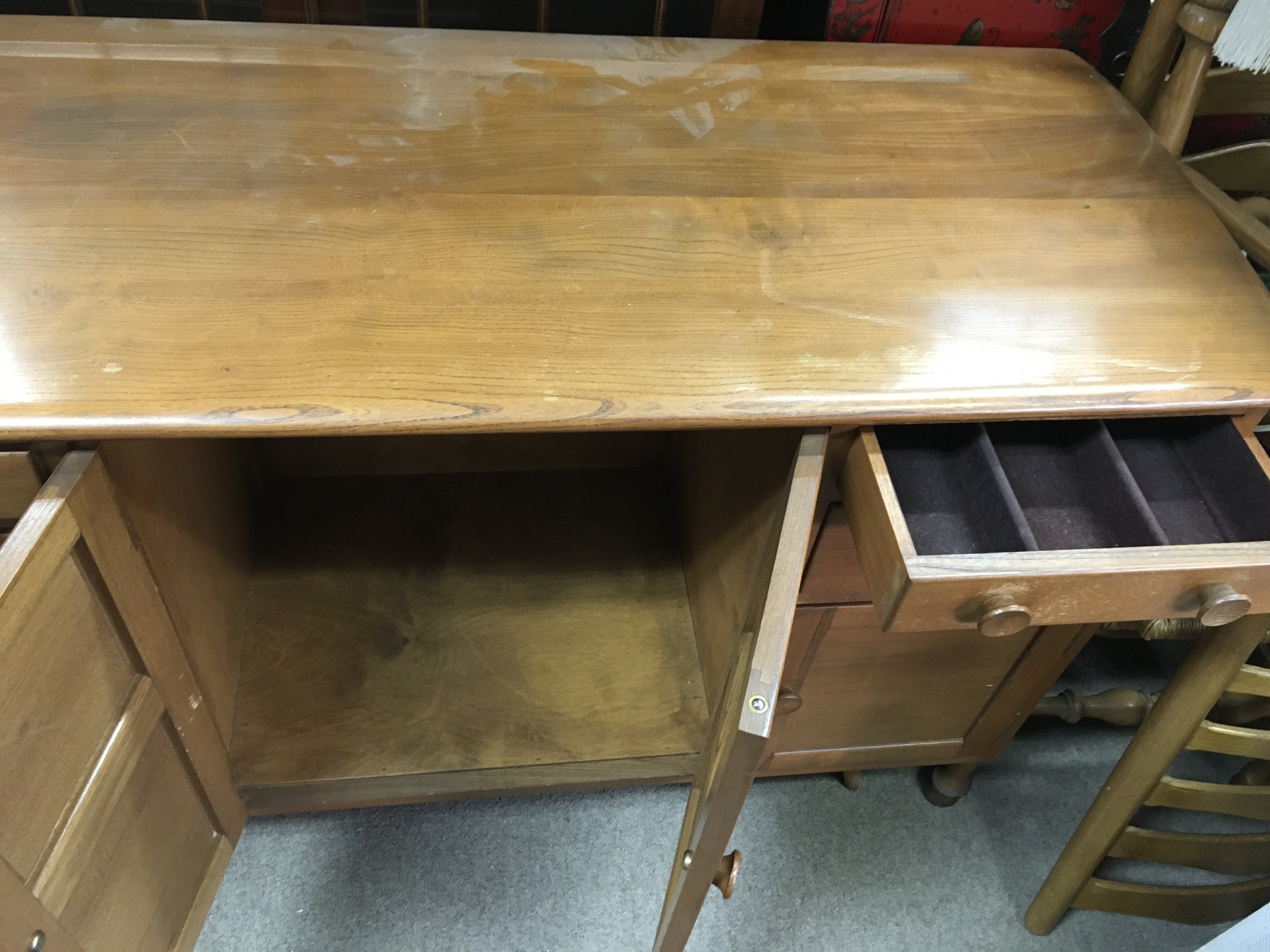 A mid 20th century design Ercol sideboard fitted with drawers and cupboards. Dimensions 50x130x86cm.