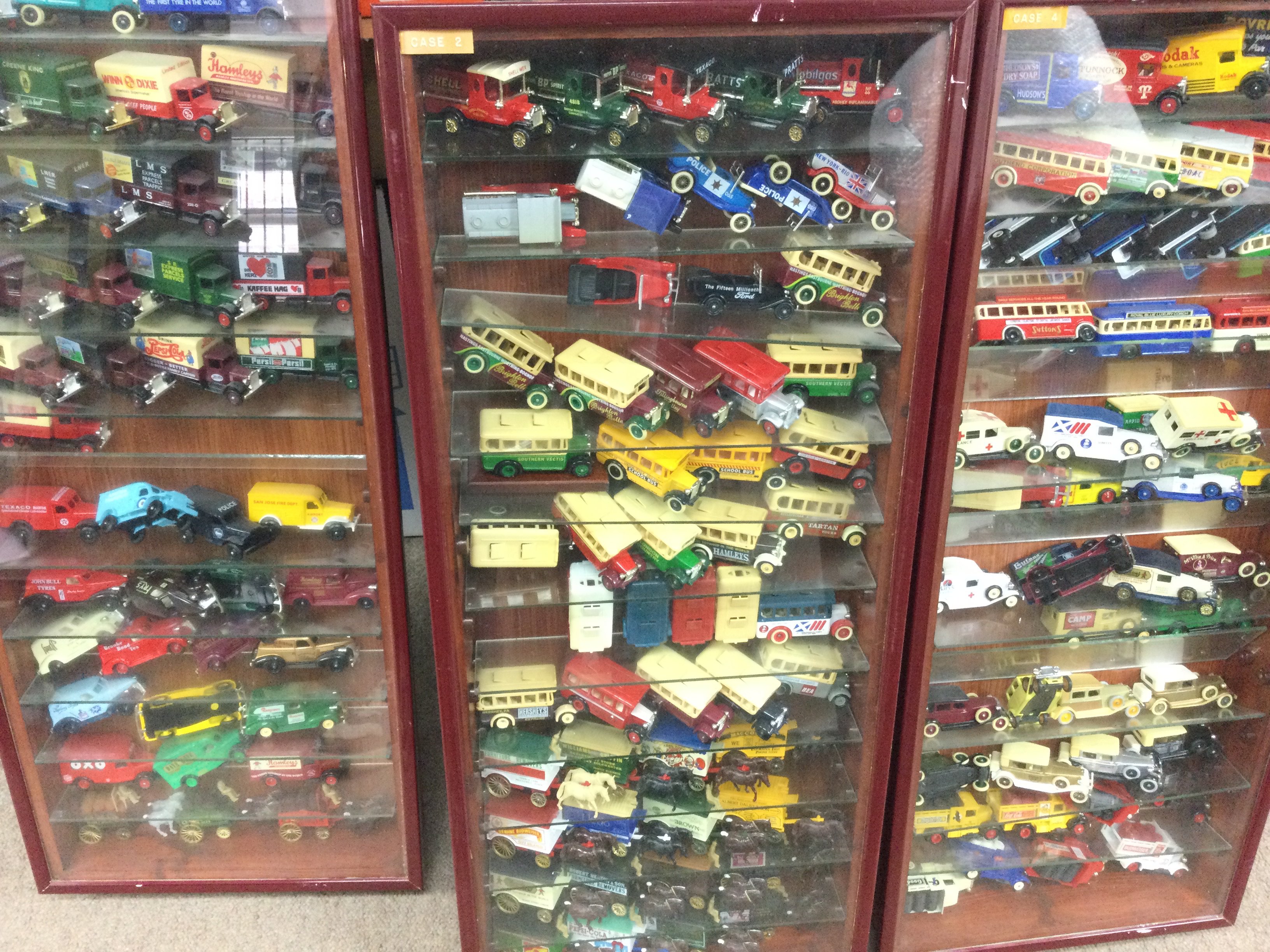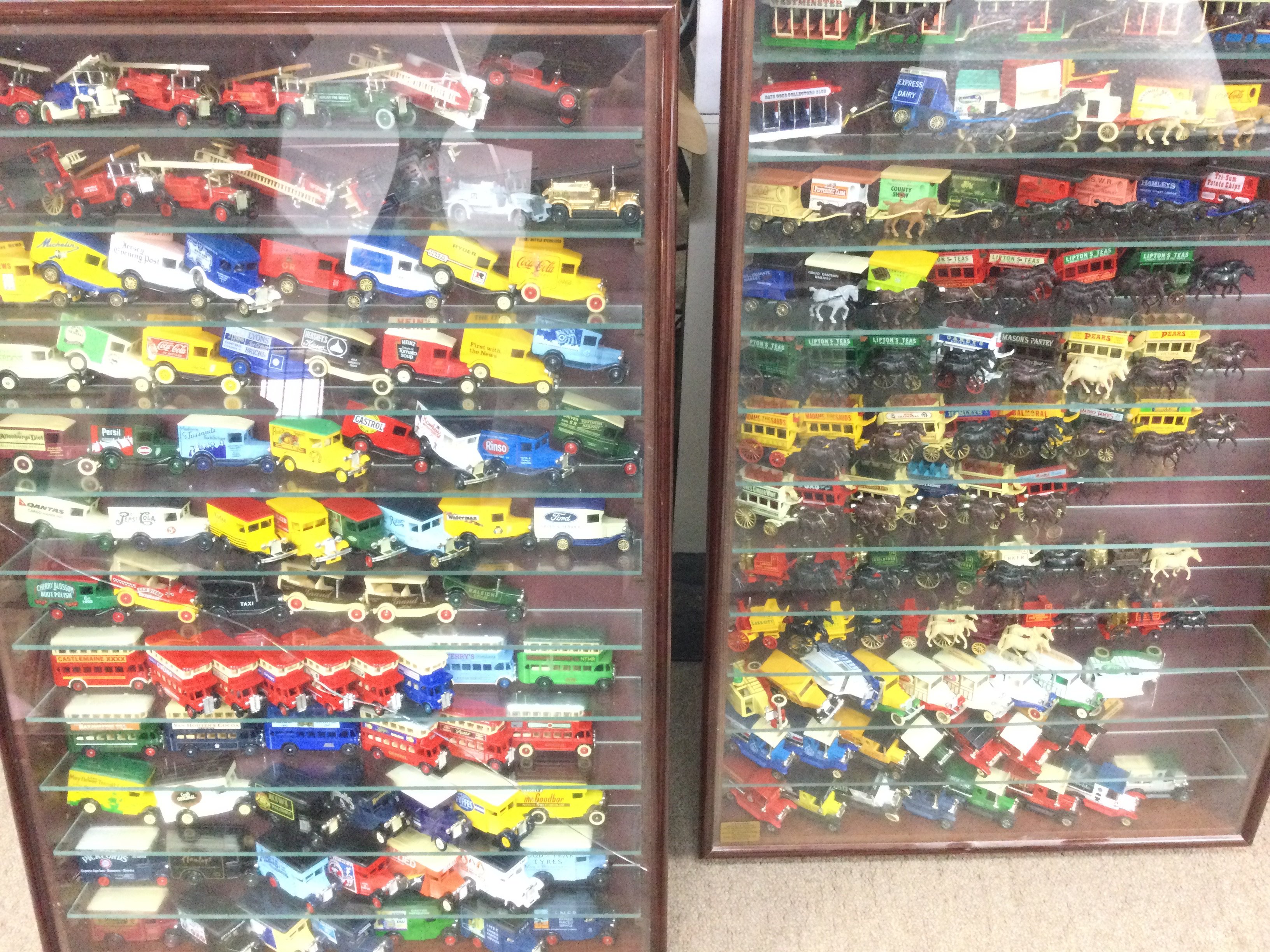 5 Display Cabinets containing Lledo Days Gone. Approx height 81cm No Reserve.