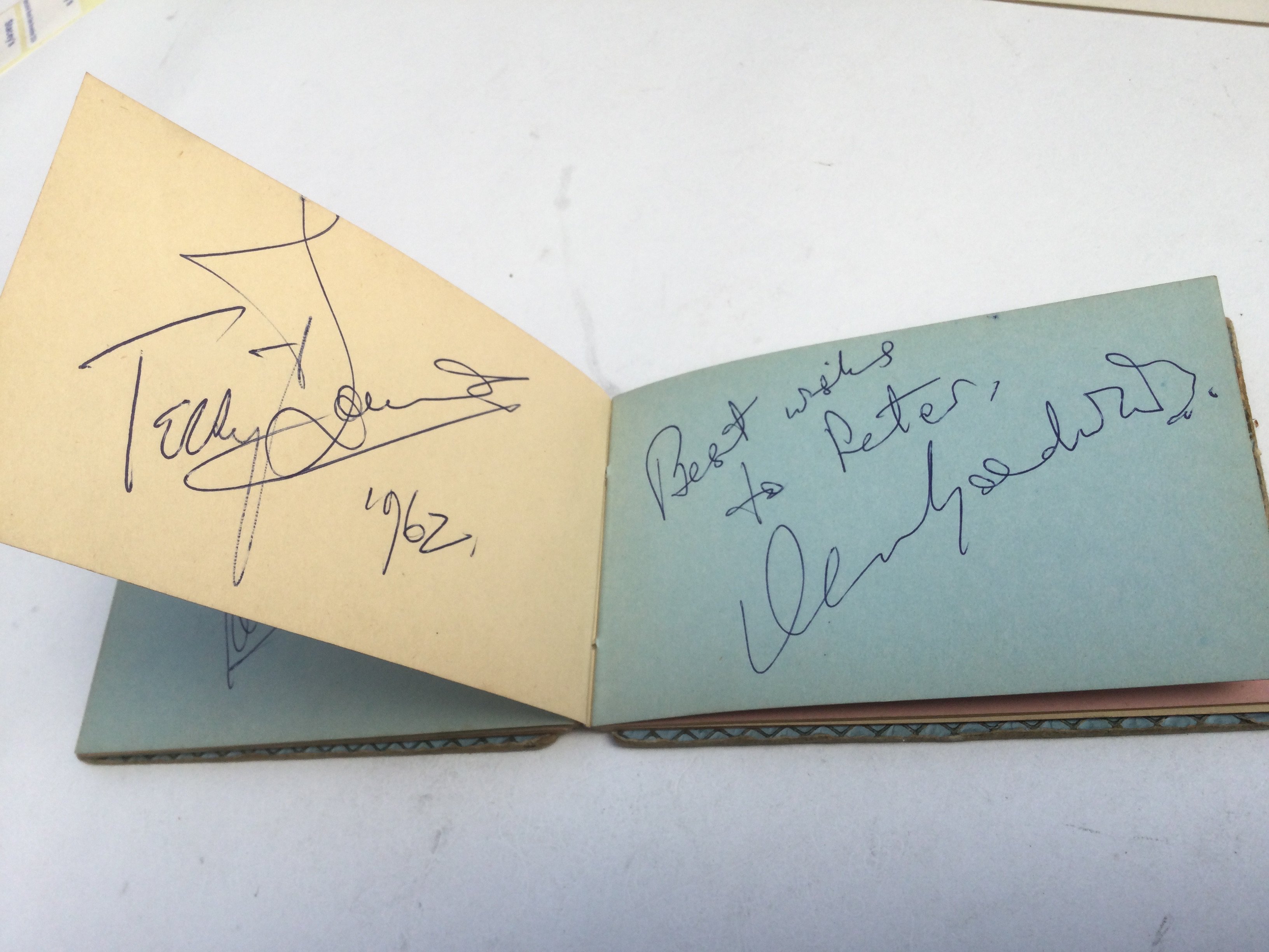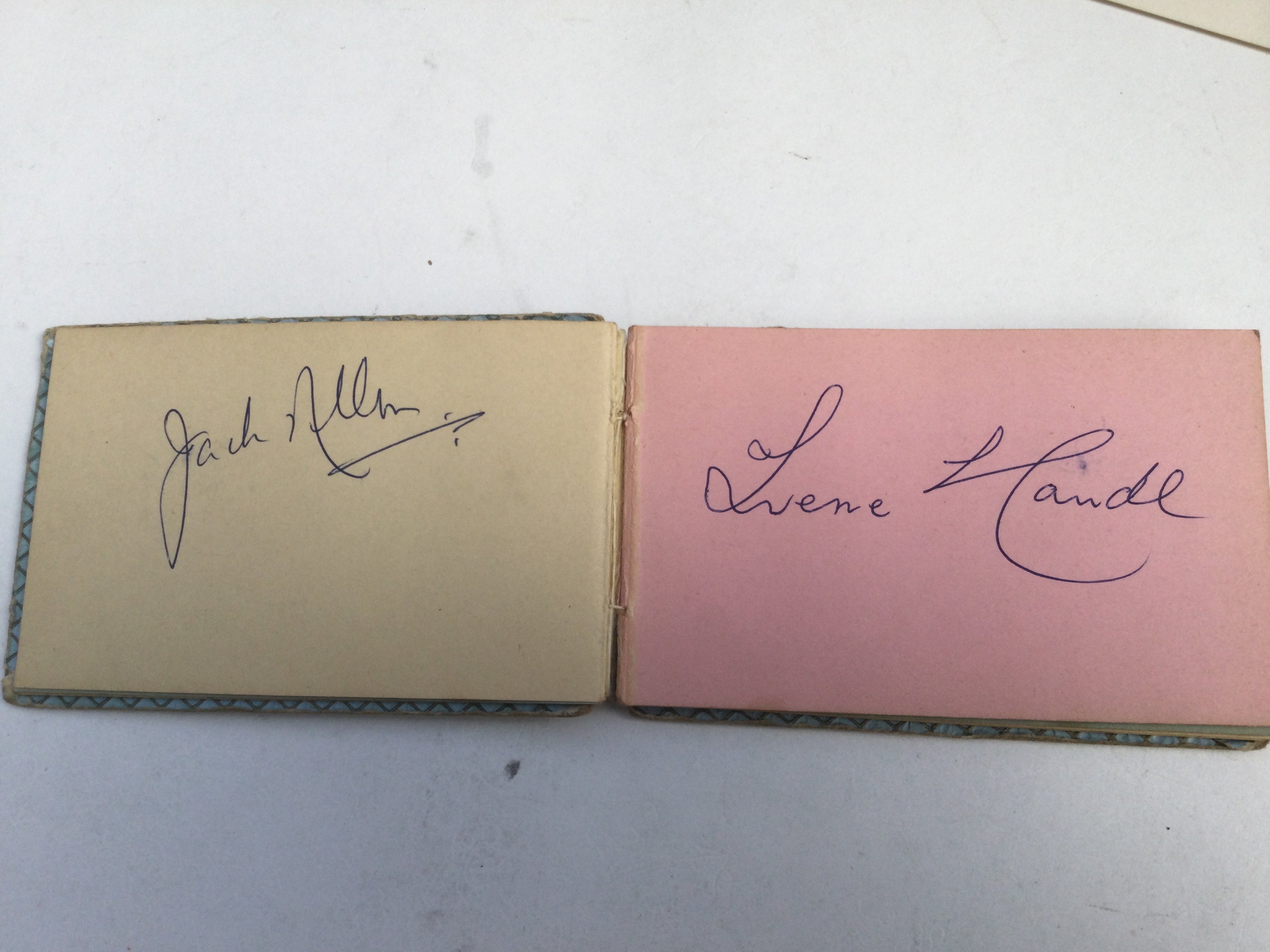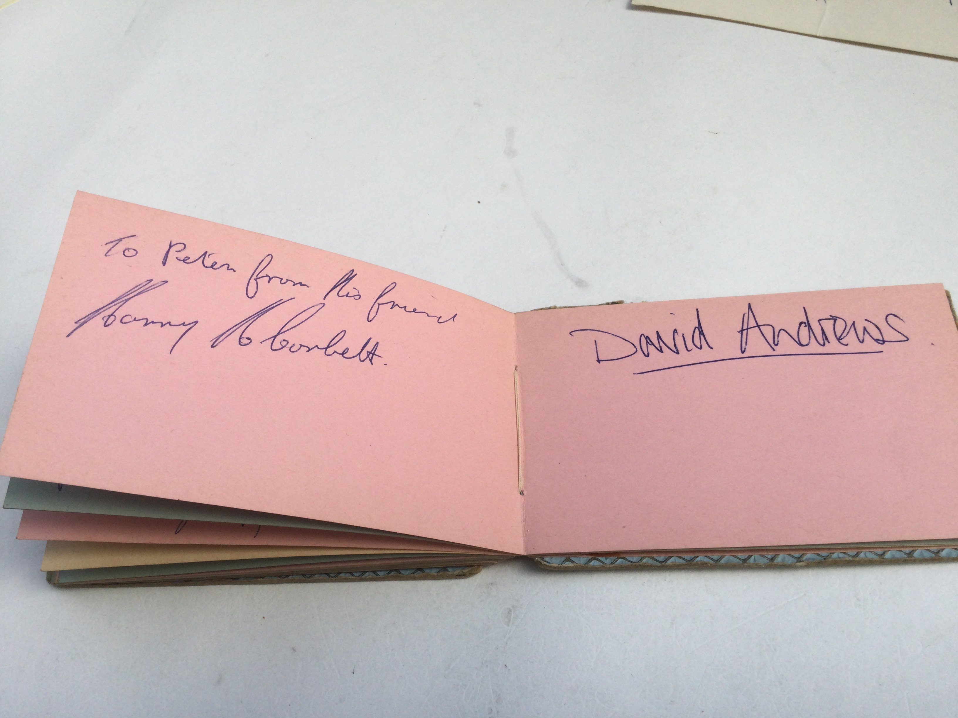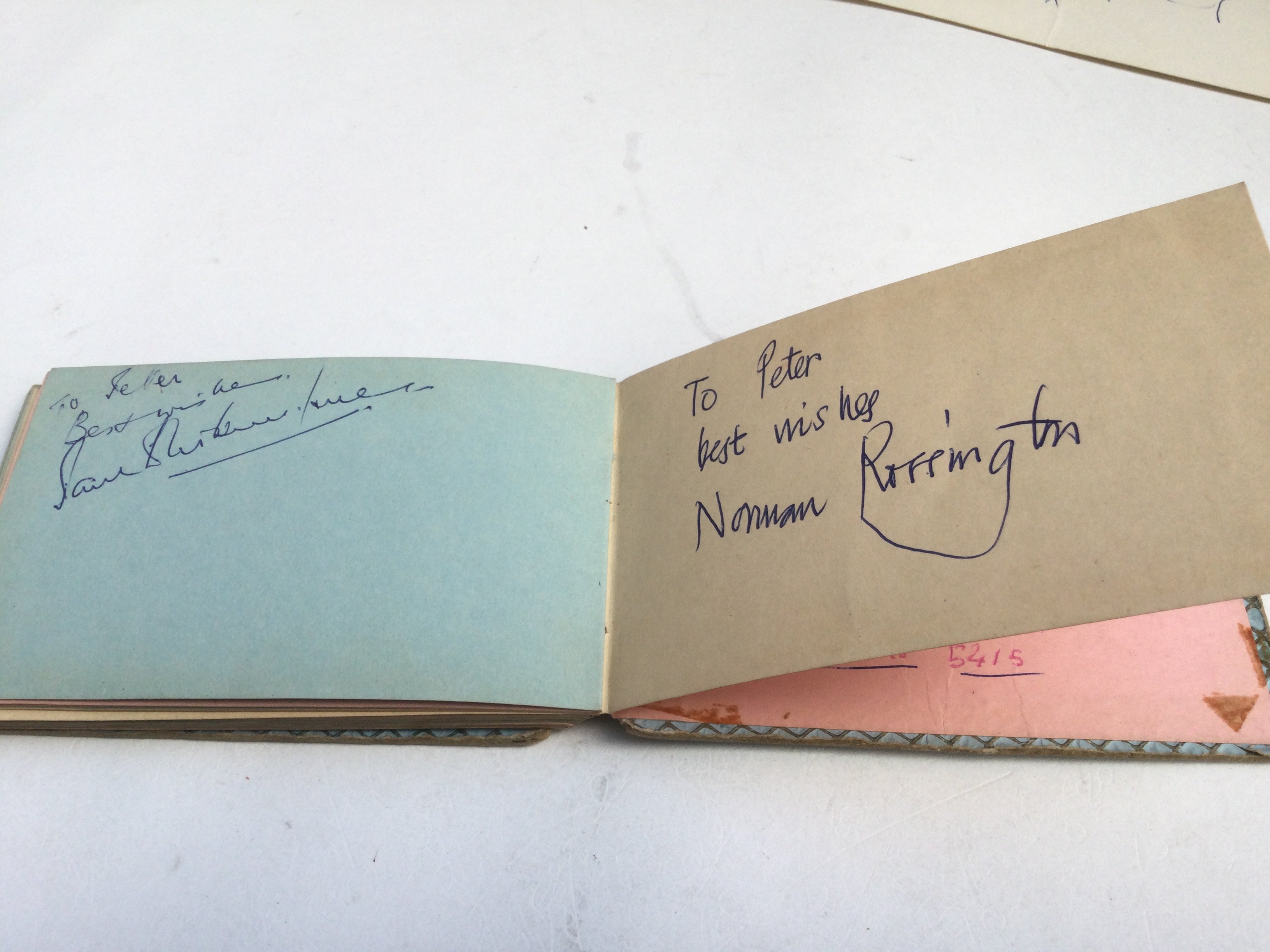A collection of autographs both loose and in a booklet comprising James Mason, Ralph Richardson, Tommy Cooper, Kenneth Horne and others plus a press photo of The Beatles with Marlene Dietrich.