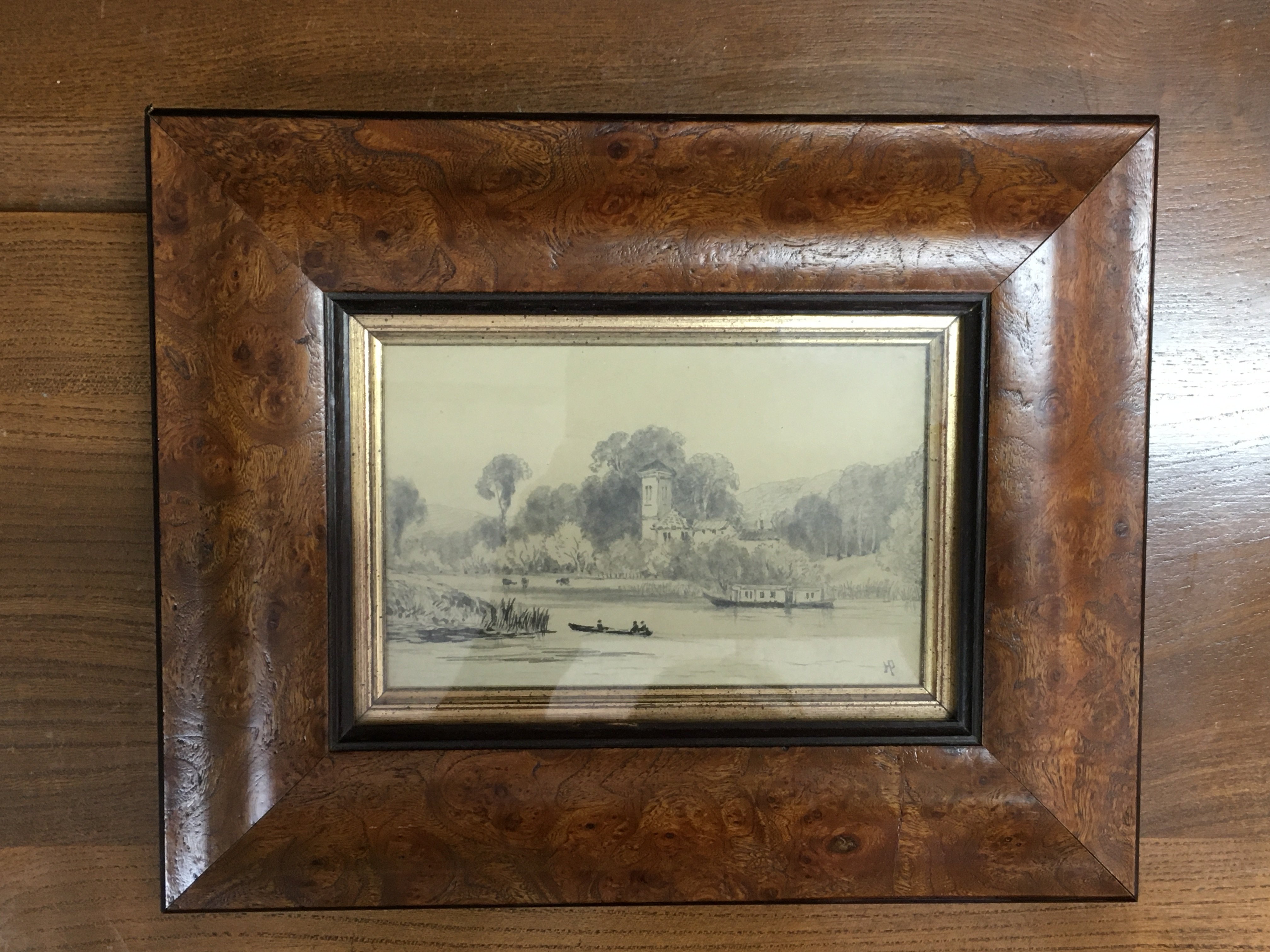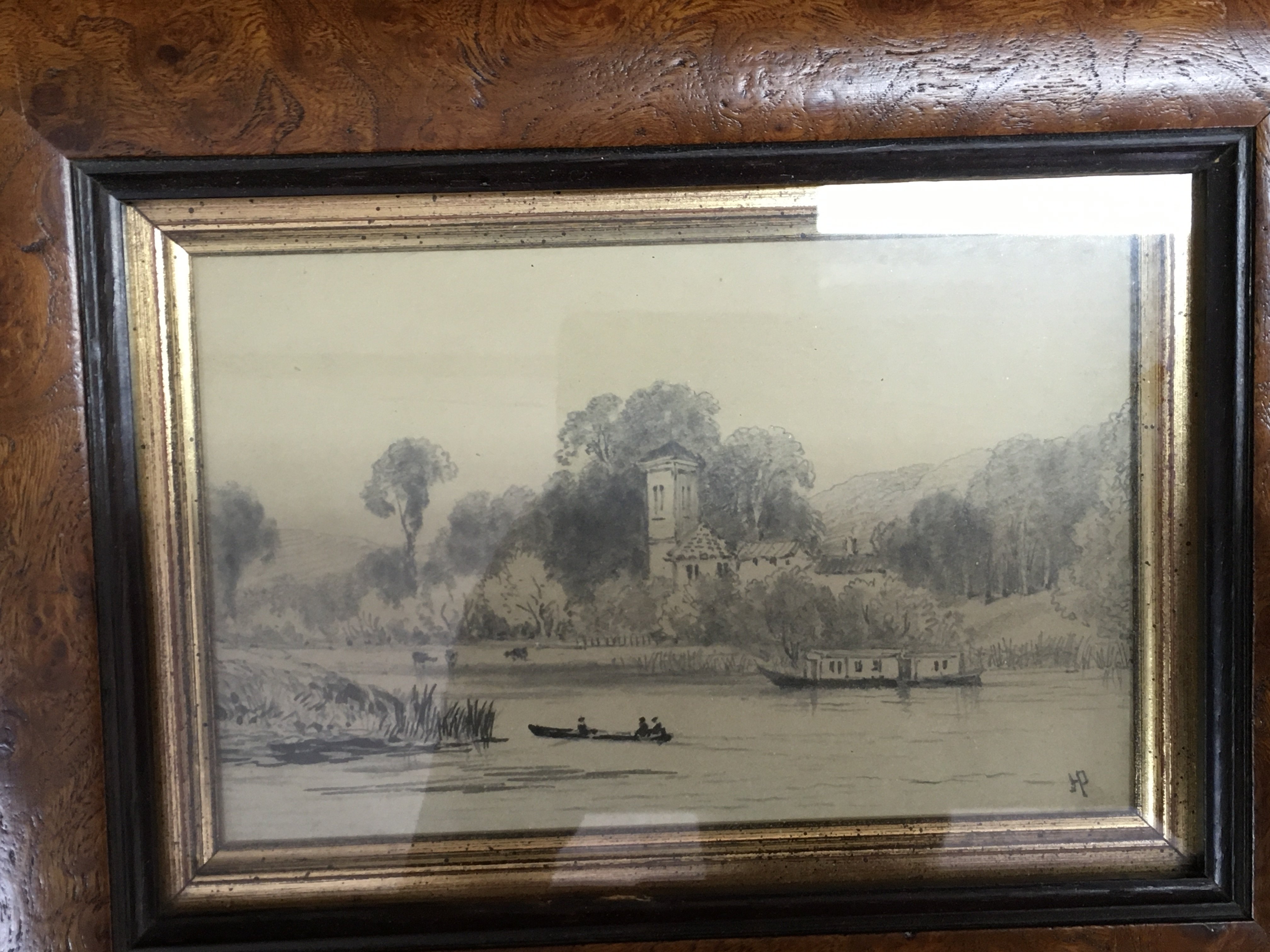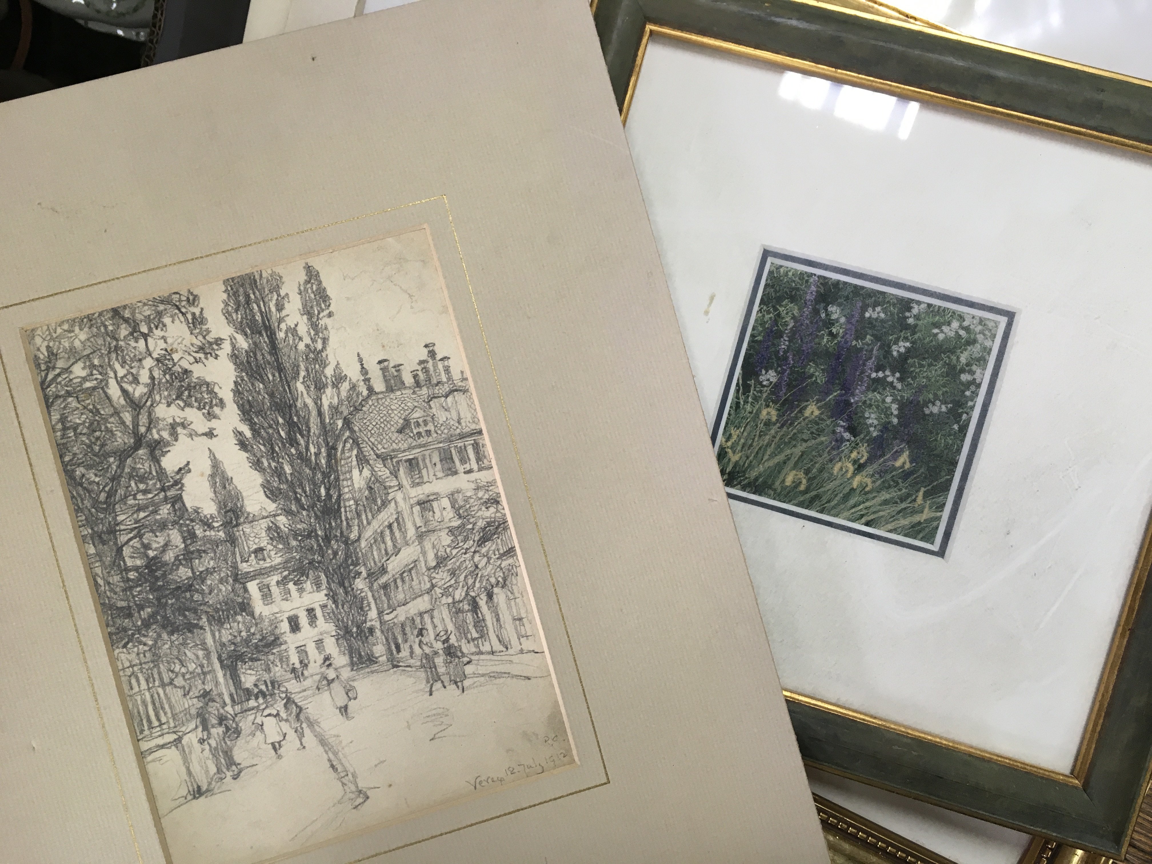A collection of pictures including prints and drawings including a 19th century maple framed drawing by Henry Pilleau (1813-1899). This lot cannot be posted