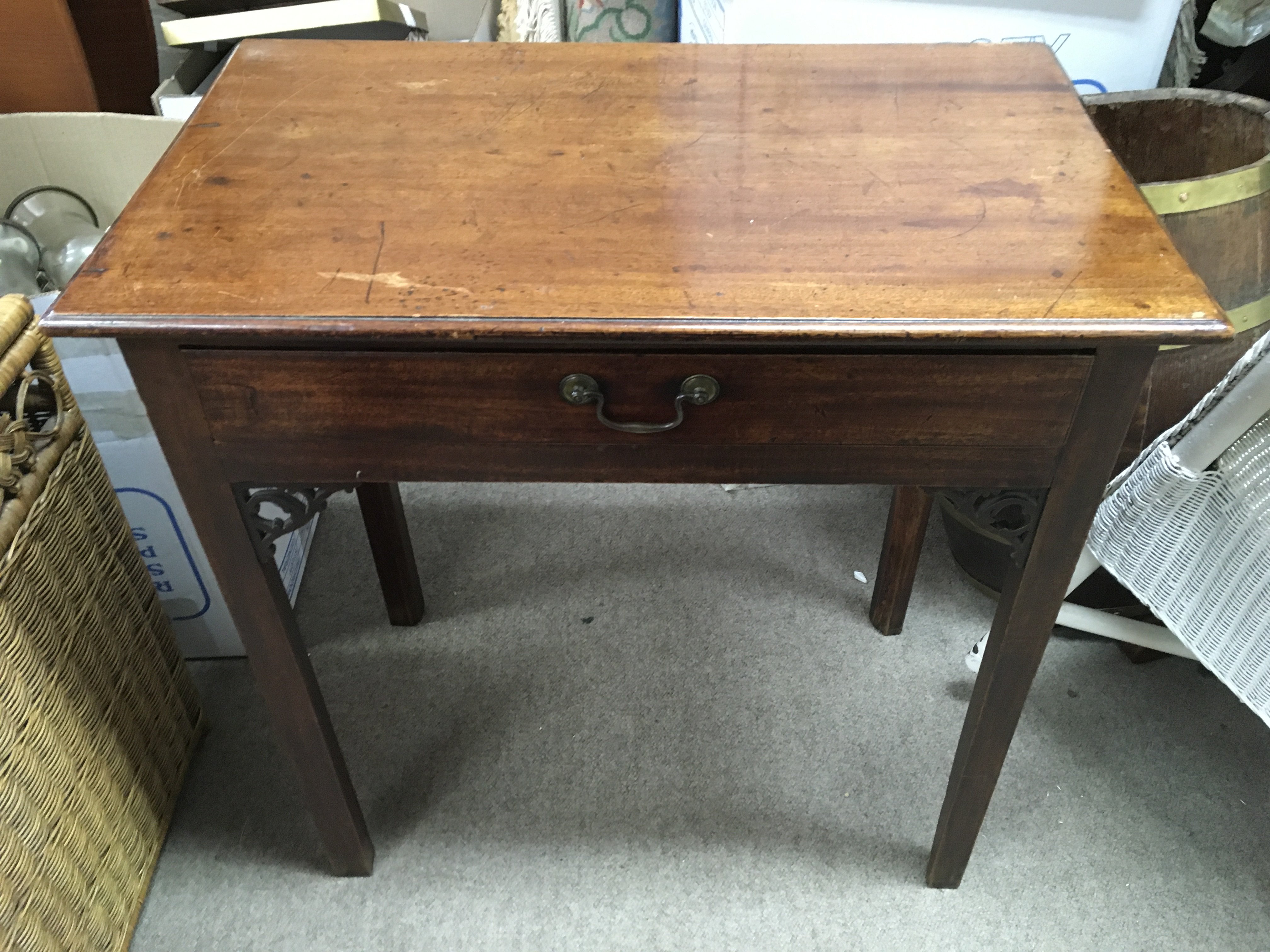 A George III mahogany side table with a single drawer, dimensions 40x68x70cm