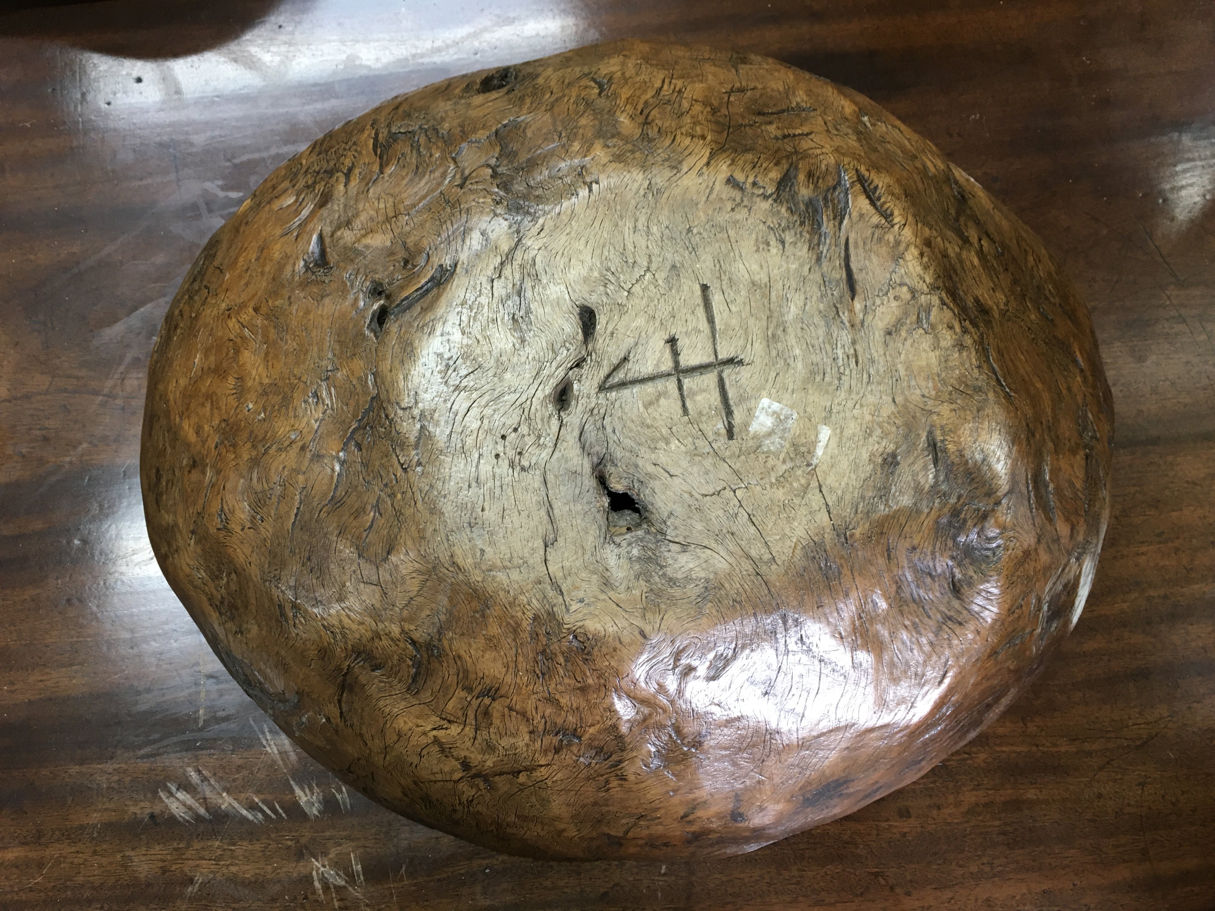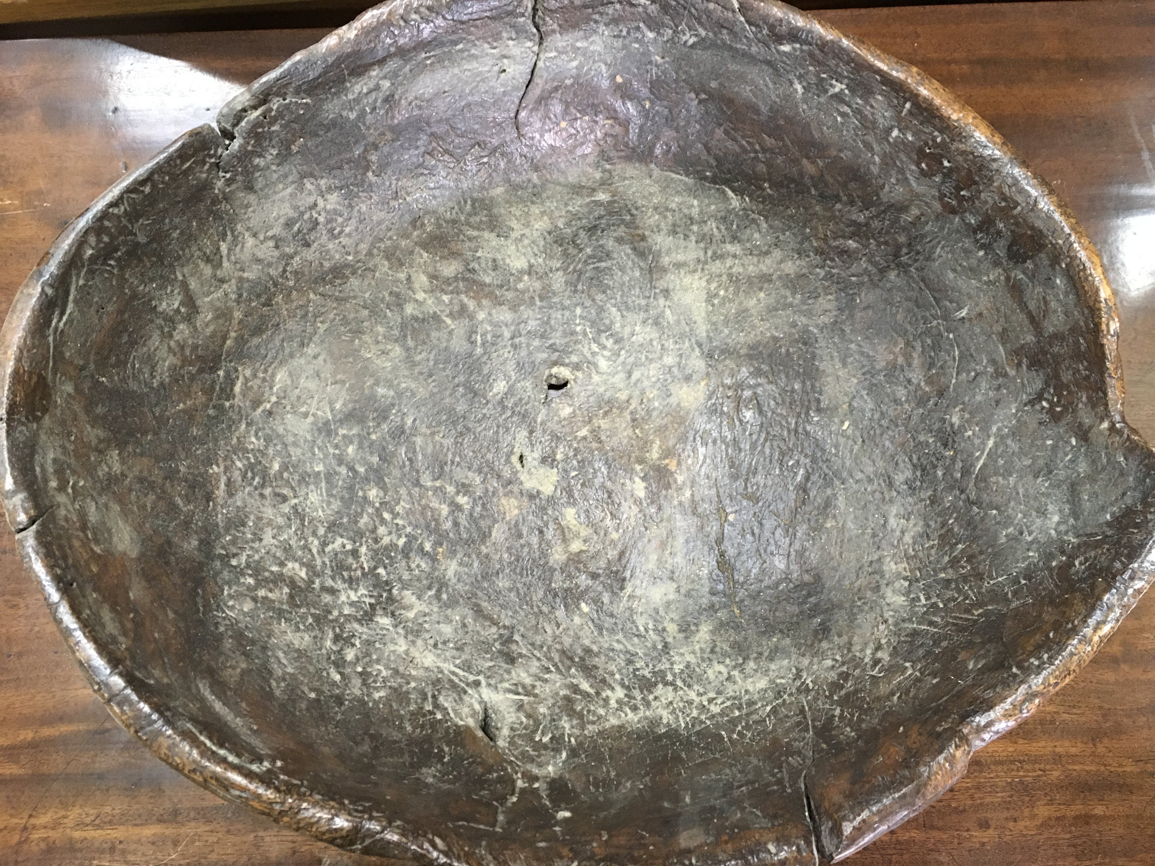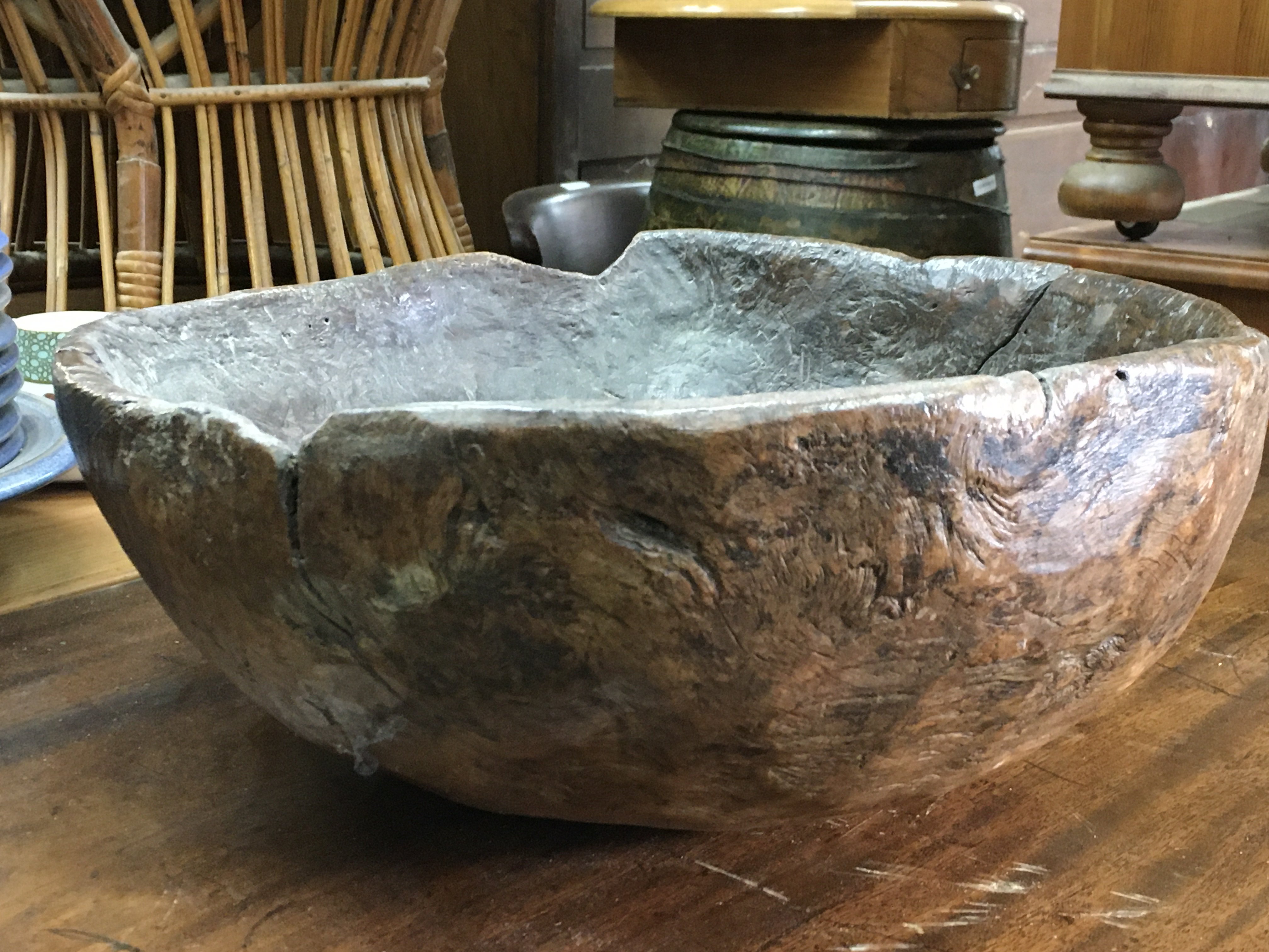 A Vernacular wooden bowl, 45cm wide. postage category C