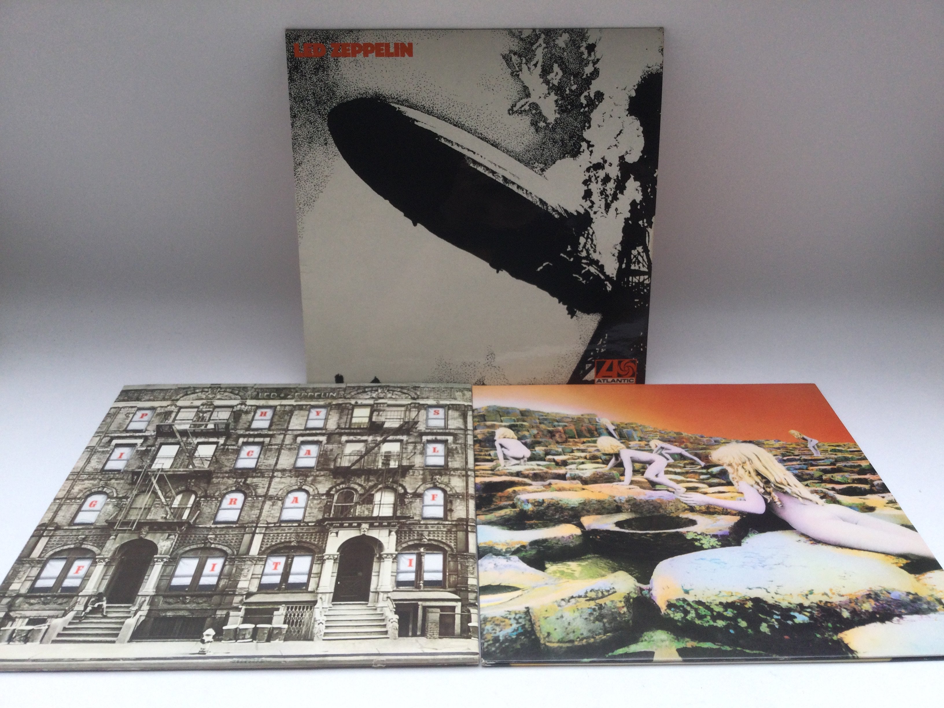 Three Led Zeppelin LPs comprising'Led Zep 1', 'Physical Graffiti' and 'House Of The Holy'. No red/plum Atlantic labels.