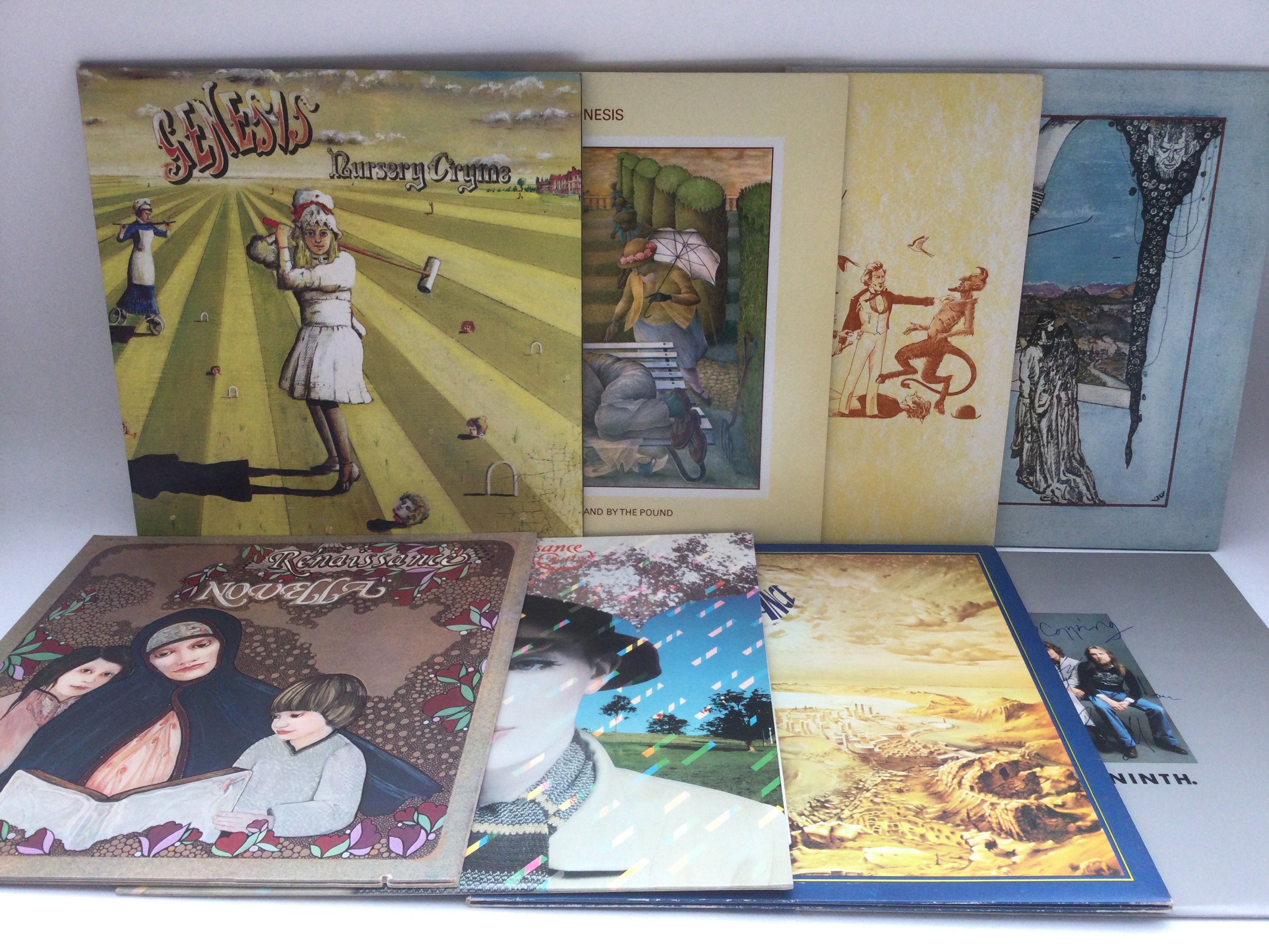 Sixteen prog rock LPs by various artists including Genesis, Renaissance, Marillion and others.