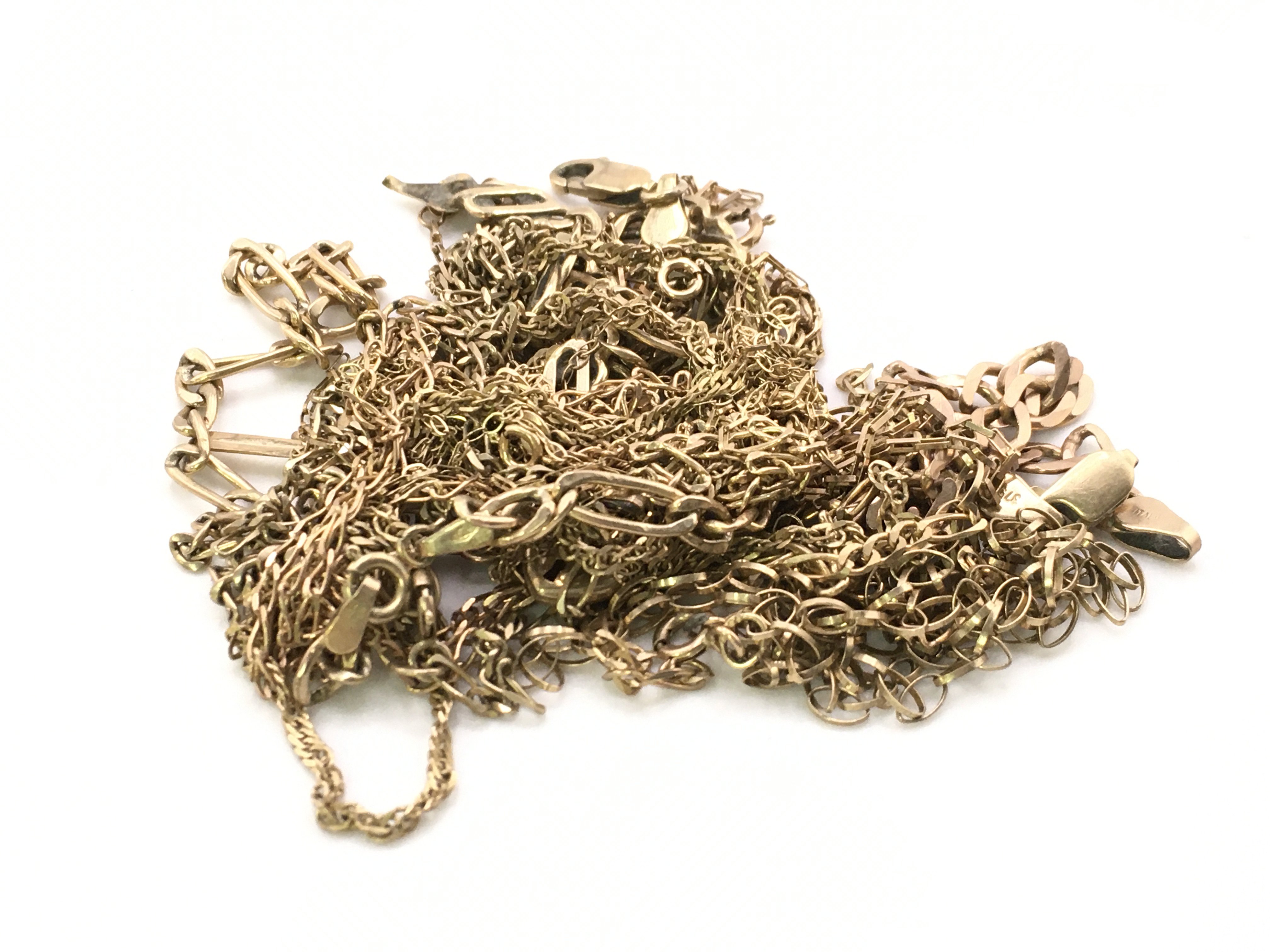 A collection of gold and other chains, overall weight approximately 32g. Postage category a